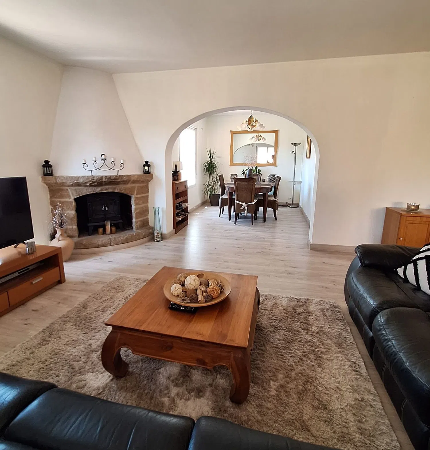 Собственность окружает красивый сад и обширные зеленые зоны, создающие расслабляющую атмосферу в единении с природой. Длинная, внушительная дорожка ведет к главному входу, добавляя нотку величия и приватности. Внутри дом предлагает светлую и теплую атмосферу благодаря большим окнам, которые заполняют просторную гостиную с камином естественным светом, создавая уютное место для отдыха в прохладные вечера.