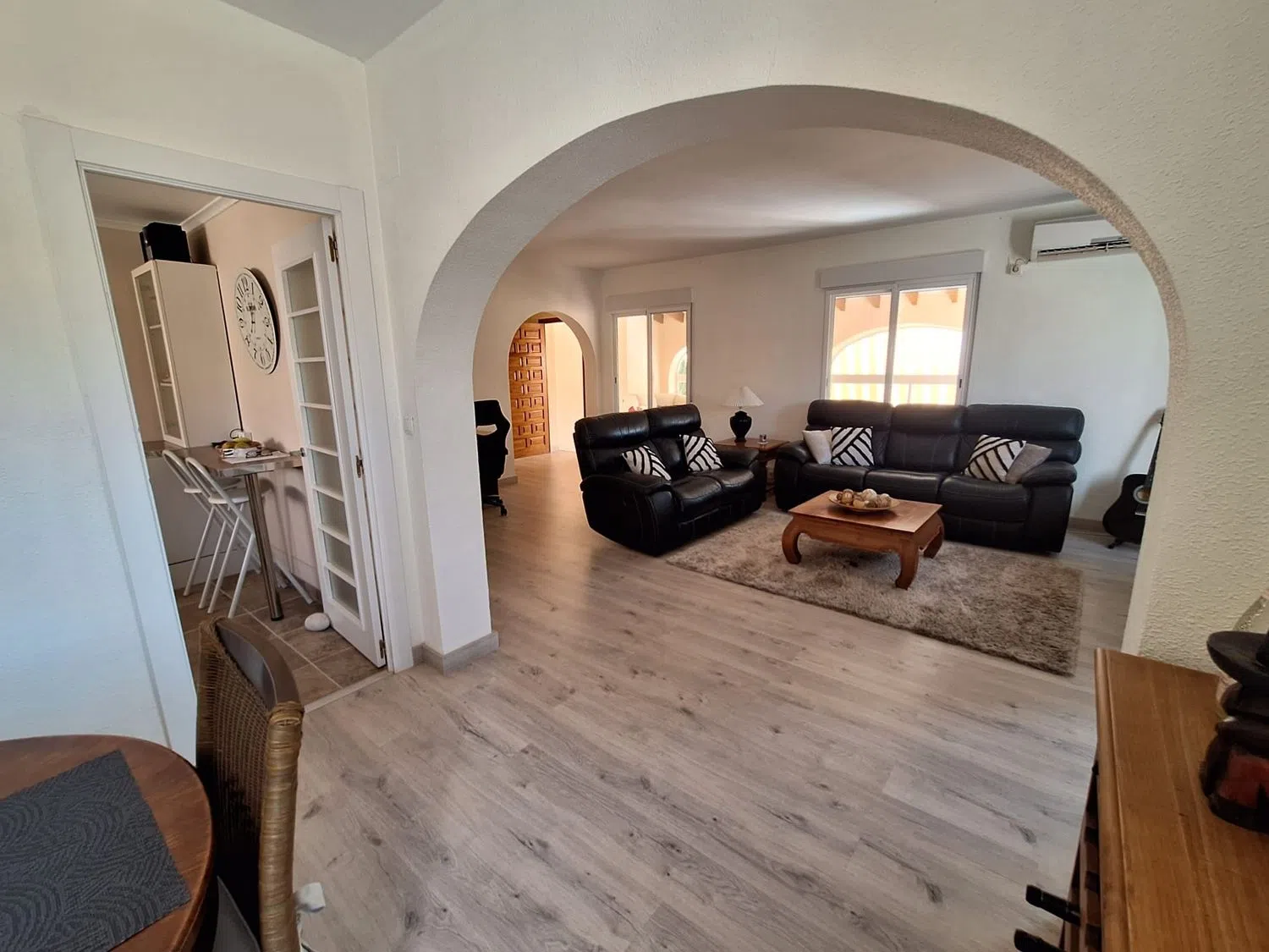 В Альфас-дель-Пи расположено очаровательное независимое домовладение, которое сочетает в себе классический испанский стиль с современными акцентами. Традиционный фасад воссоздает атмосферу средиземноморской архитектуры, придавая дому особый шарм.