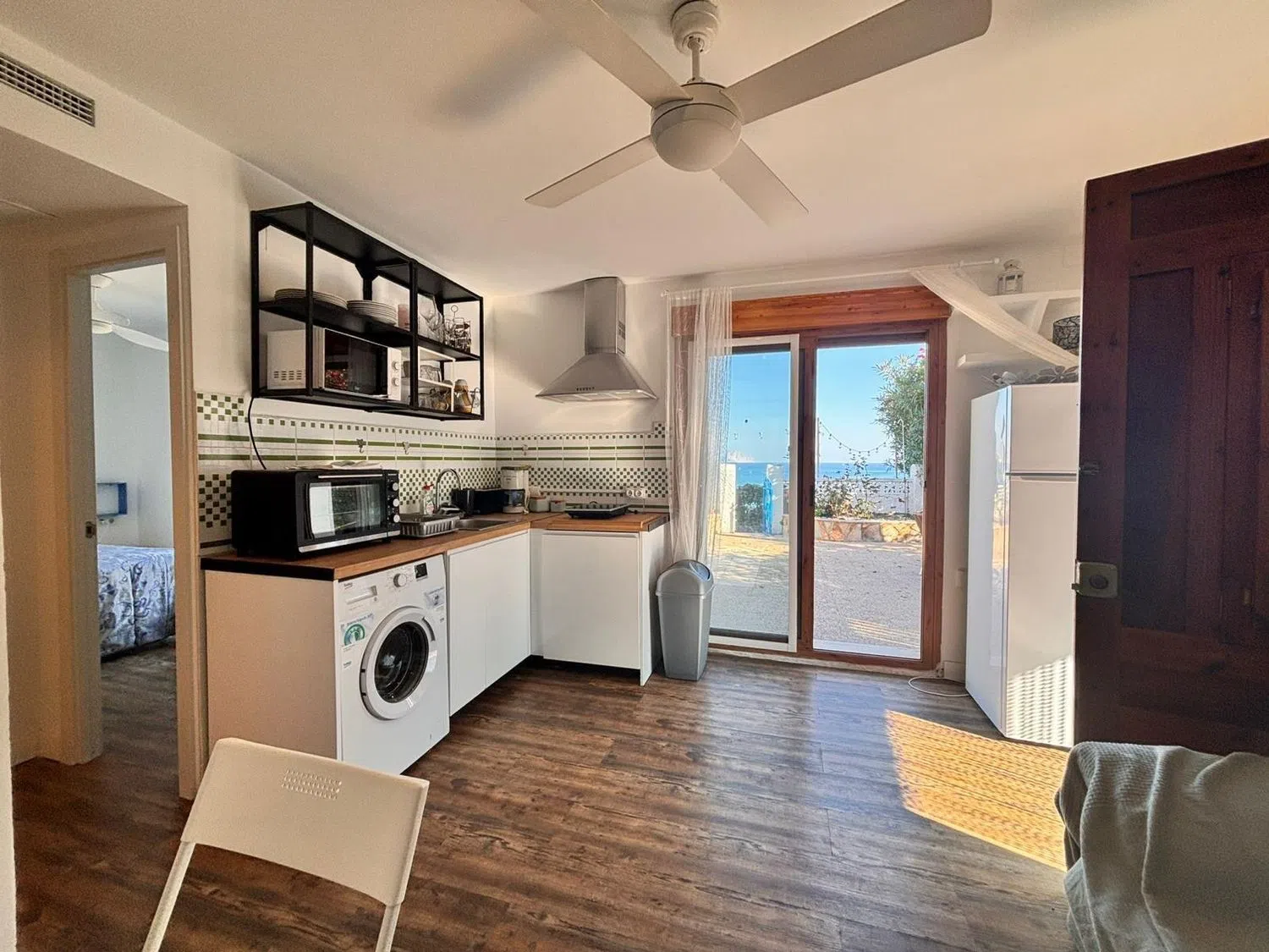 Жилое пространство разделено на две квартиры. Главная квартира включает три спальни, ванную комнату, уютный зал с камином, отдельную кухню, внешнюю кухню, а также парковку и небольшой сад. Вторая квартира в настоящее время используется для краткосрочной аренды и предлагает две спальни, полную ванную комнату, зал с кухней и выход на террасу с морским видом.