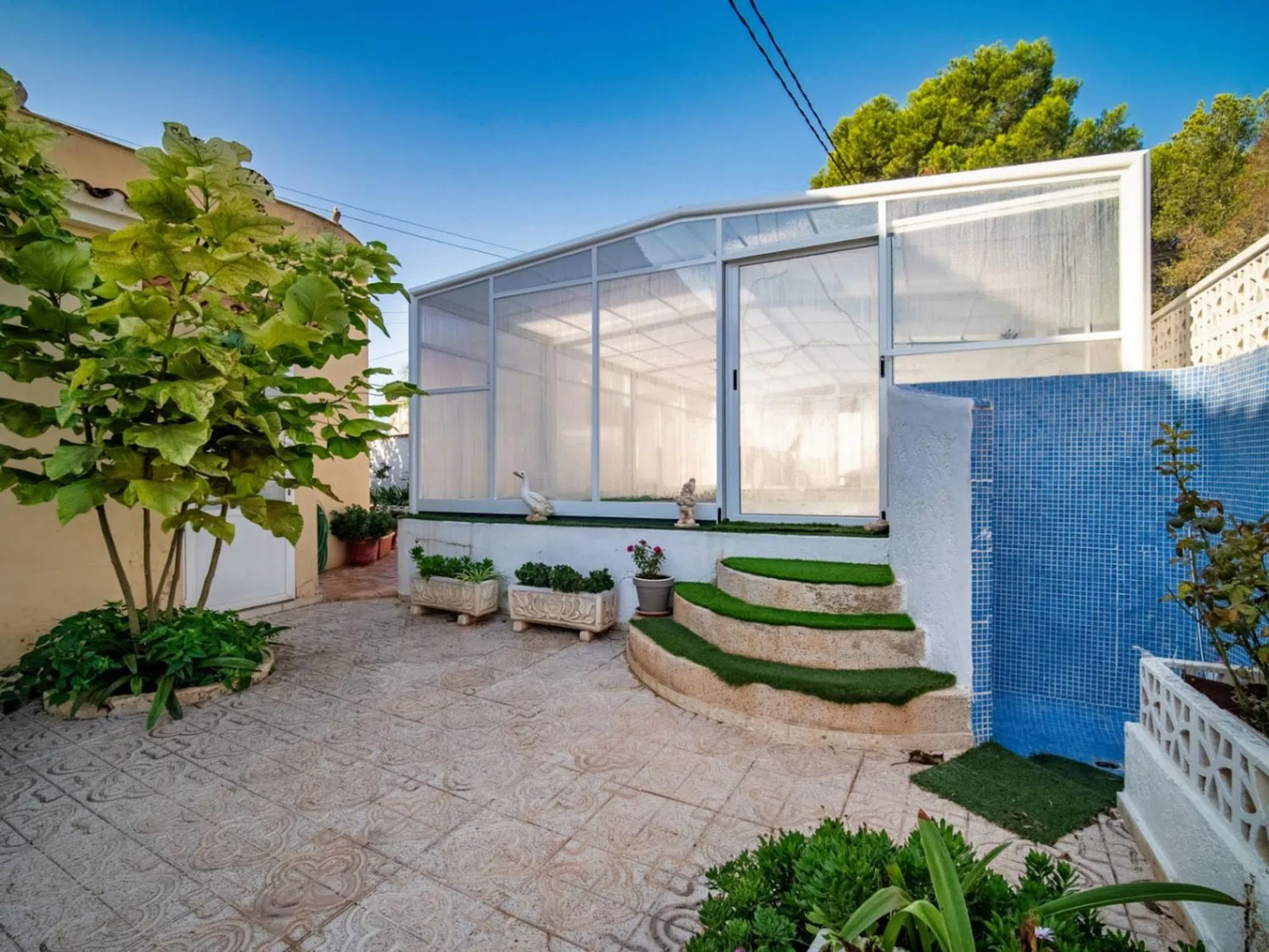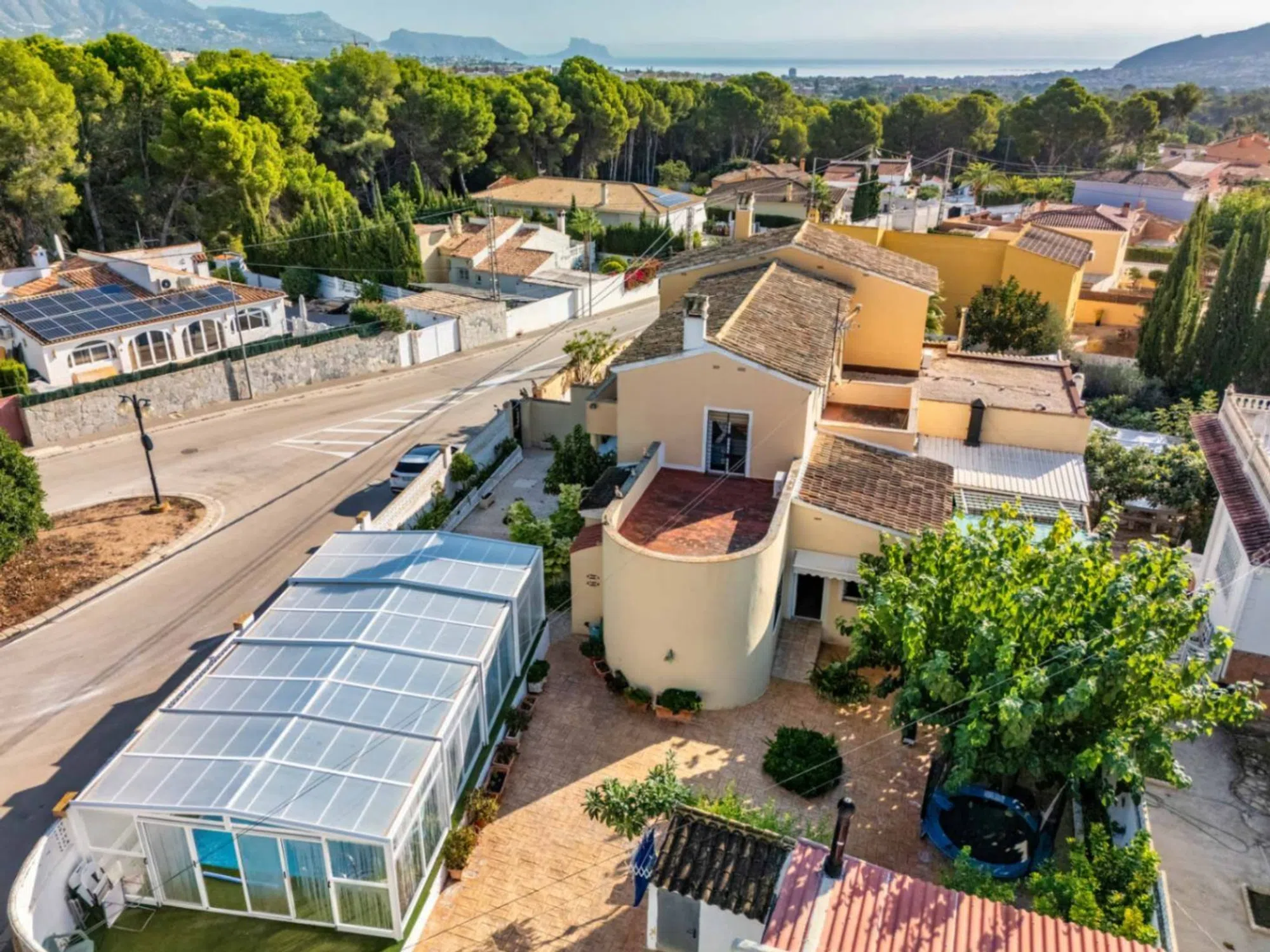 Un Refugio de Serenidad en Alfaz del Pi Bienvenido a esta hermosa villa, un verdadero oasis de paz y confort en la exclusiva área de El Romeral, Alfaz del Pi. Este chalet ofrece un espacio ideal para disfrutar de un estilo de vida tranquilo, con la costa mediterránea a solo unos minutos. Distribución Espaciosa Con una generosa superficie construida de 150 m², la villa cuenta con cuatro amplias habitaciones que brindan un refugio acogedor para toda la familia. Dos baños bien diseñados garantizan la comodidad y privacidad que cada uno necesita. Un Entorno Natural La propiedad se sitúa en un terreno de 590 m², rodeado de un cuidado jardín que invita a disfrutar del aire libre. Los espacios exteriores son perfectos para relajarse, realizar barbacoas o simplemente disfrutar del clima soleado de Alicante. La piscina es una joya que promete refrescantes días de verano, convirtiendo su hogar en el lugar ideal para entretener a familiares y amigos. Comodidades Modernas La villa está equipada con todas las comodidades necesarias para una vida confortable. La cocina independiente es un sueño para los amantes de la gastronomía, ofreciendo un espacio funcional y bien diseñado. El salón, iluminado con luz natural, se complementa con una acogedora chimenea que crea un ambiente cálido durante las noches. Además, la propiedad cuenta con aire acondicionado, asegurando una temperatura agradable durante todo el año. Seguridad y Accesibilidad La villa, en excelente estado de conservación, incluye un sistema de seguridad además de una puerta de seguridad que otorga tranquilidad y privacidad. El espacio exterior está completamente cerrado, proporcionando un entorno seguro para niños y mascotas. Los acabados de doble acristalamiento mejoran la eficiencia energética y el confort acústico en el interior. Espacios Adicionales Además de la vivienda principal, la propiedad ofrece un práctico garaje, varias áreas de almacenamiento, y un espacio de lavandería. Si disfrutas de las actividades al aire libre, la cocina de verano será tu lugar favorito para disfrutar de deliciosas comidas al exterior, mientras que las terrazas, tanto cubiertas como descubiertas, son perfectas para disfrutar de las vistas y la brisa mediterránea. Ubicada en una de las áreas más deseadas de Alfaz del Pi, esta villa combina la serenidad del entorno natural con el acceso fácil a todas las comodidades de la ciudad. No pierdas la oportunidad de convertir este espacio en tu nuevo hogar.