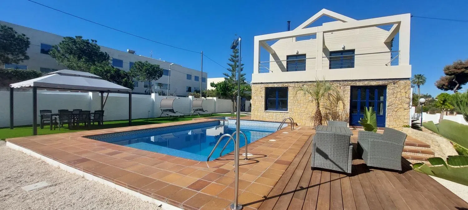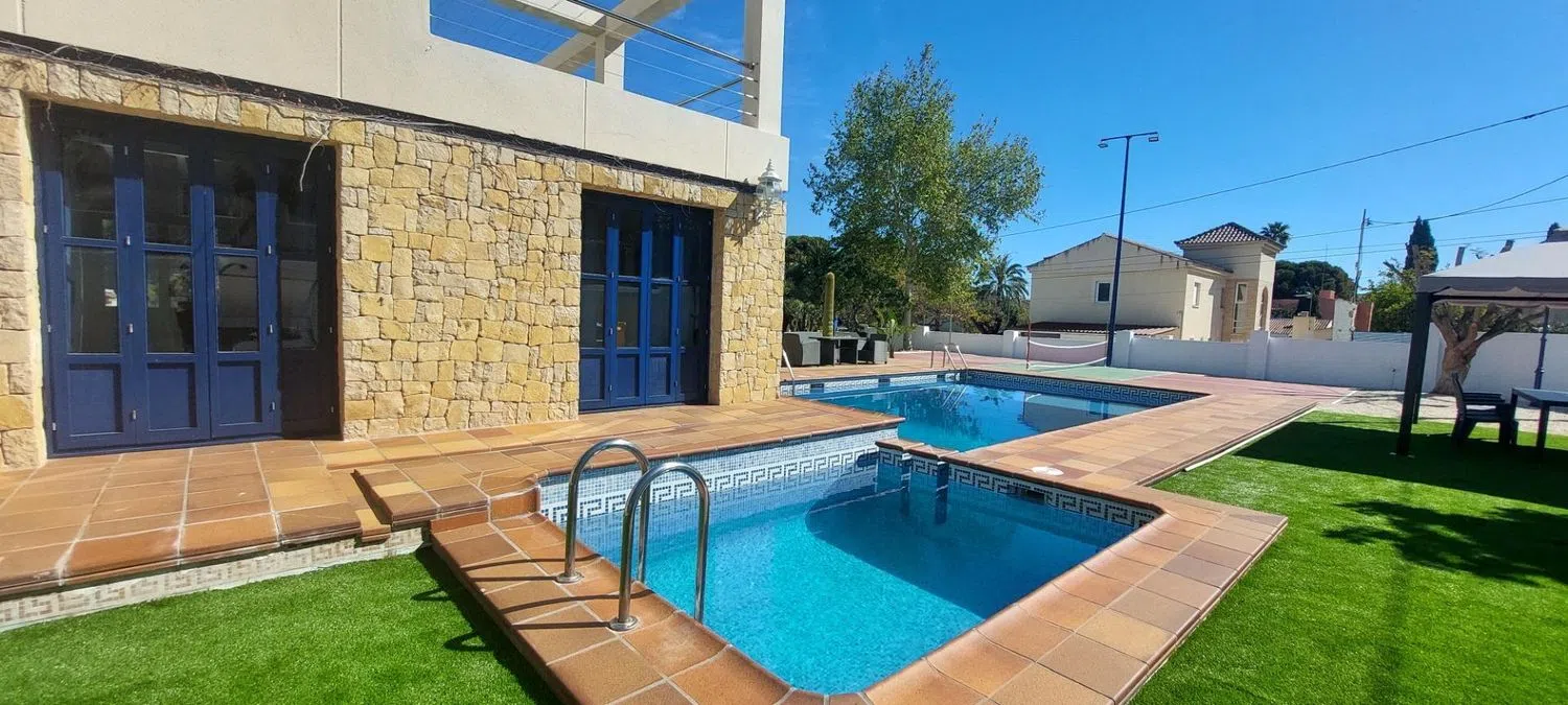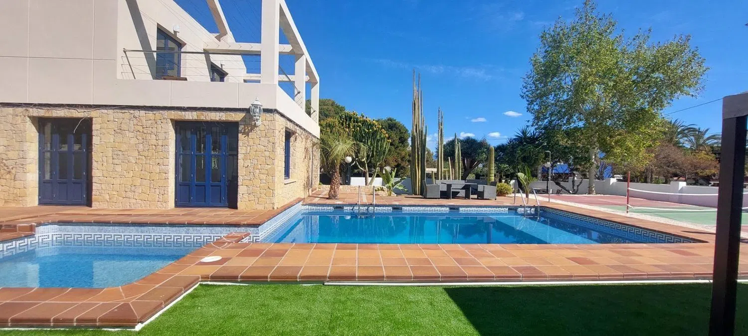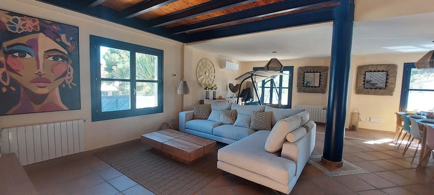 Дом включает в себя просторный холл, откуда вы попадаете в широкий зал с выходом к бассейну, а также четыре двойные спальни, каждая из которых оснащена собственным ванной комнатой. Кухня полностью оборудована, имеется кладовая и отдельный туалет. На первом этаже располагаются еще две спальни, одна из которых - это большая люкс с гардеробной и ванной комнатой, включая джакузи и душевую. На втором этаже находится кабинет с выходом на просторную террасу, откуда открывается живописный вид.