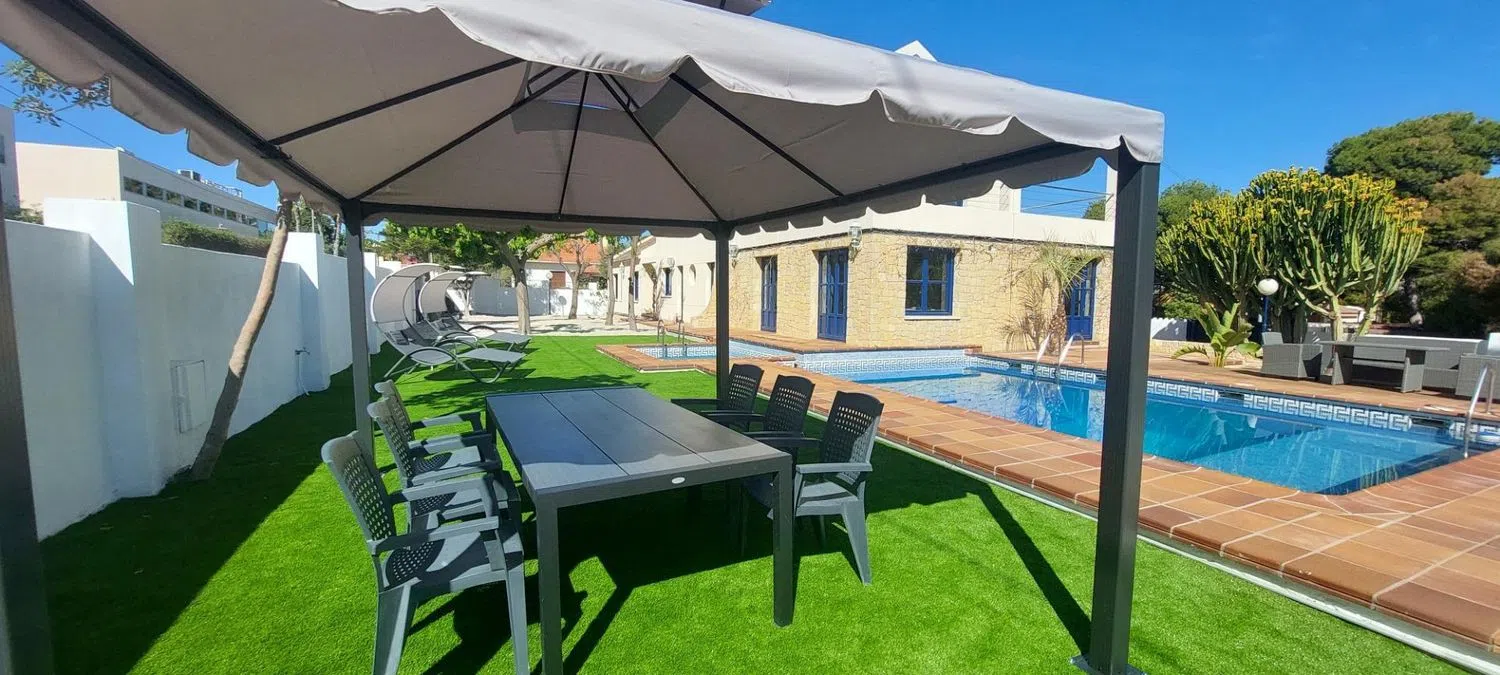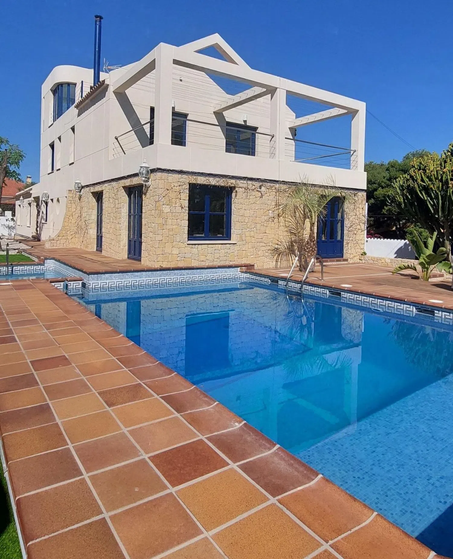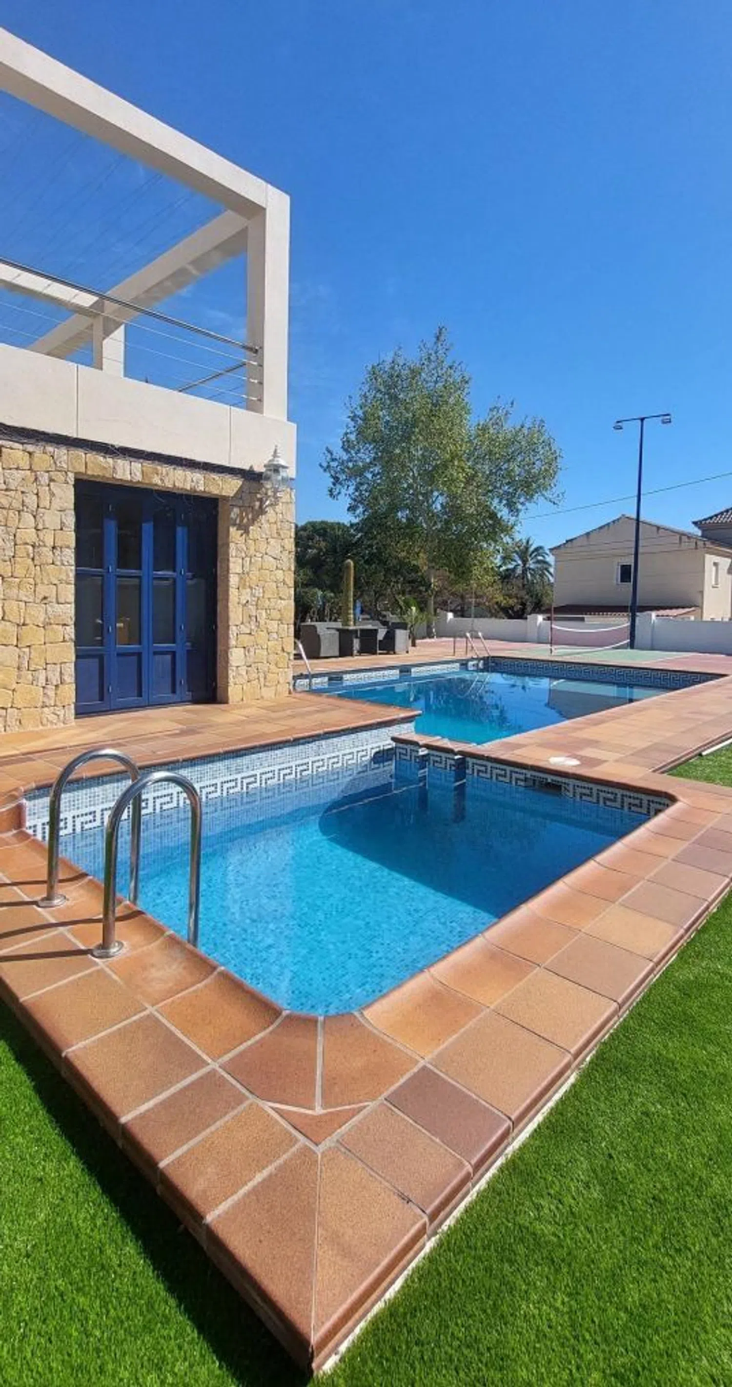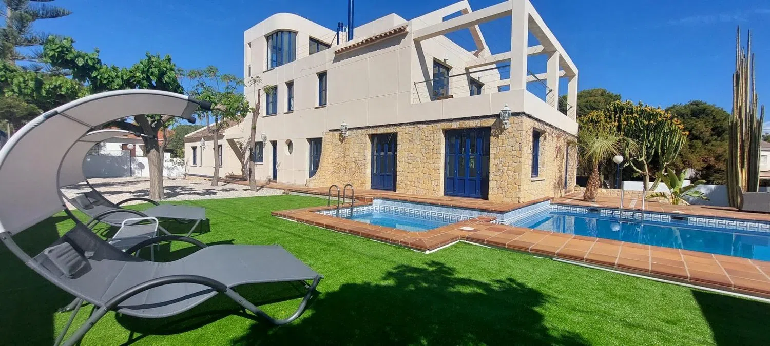 Дом включает в себя просторный холл, откуда вы попадаете в широкий зал с выходом к бассейну, а также четыре двойные спальни, каждая из которых оснащена собственным ванной комнатой. Кухня полностью оборудована, имеется кладовая и отдельный туалет. На первом этаже располагаются еще две спальни, одна из которых - это большая люкс с гардеробной и ванной комнатой, включая джакузи и душевую. На втором этаже находится кабинет с выходом на просторную террасу, откуда открывается живописный вид.