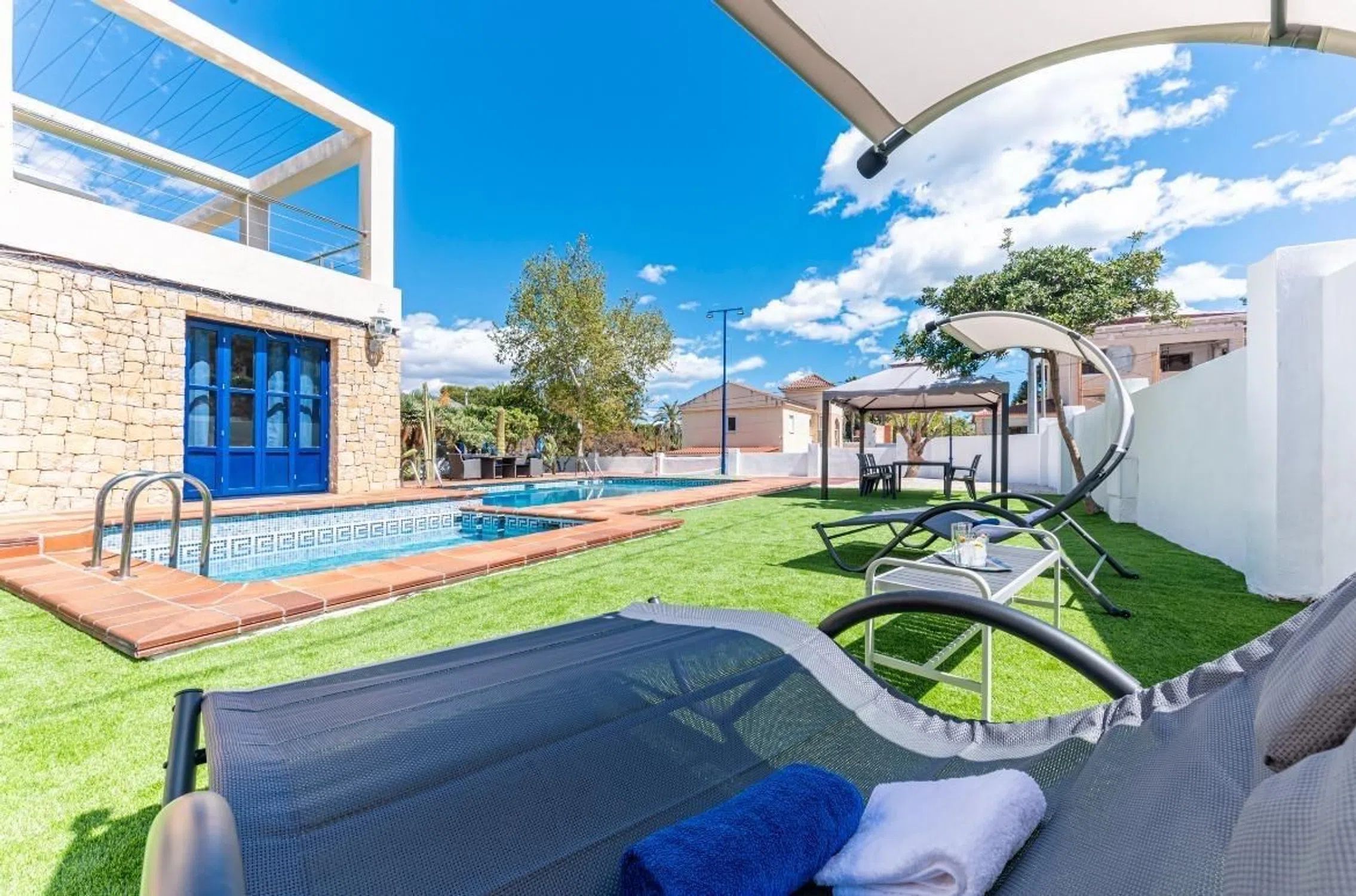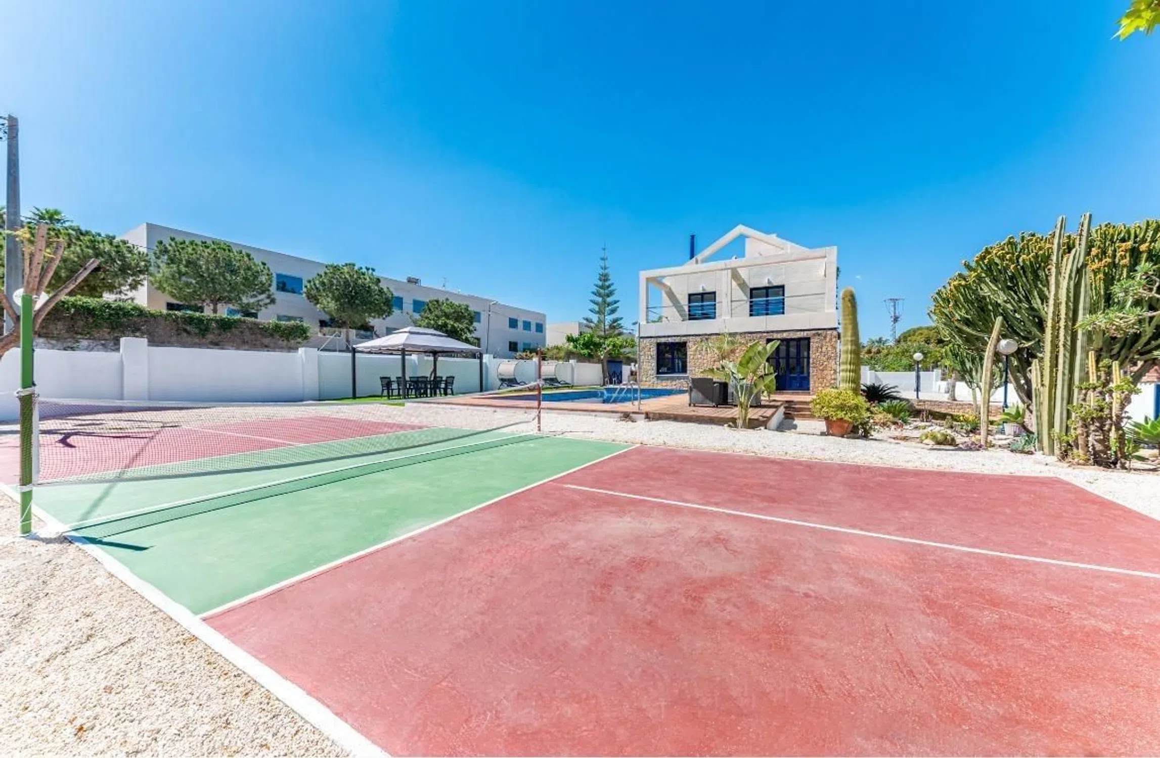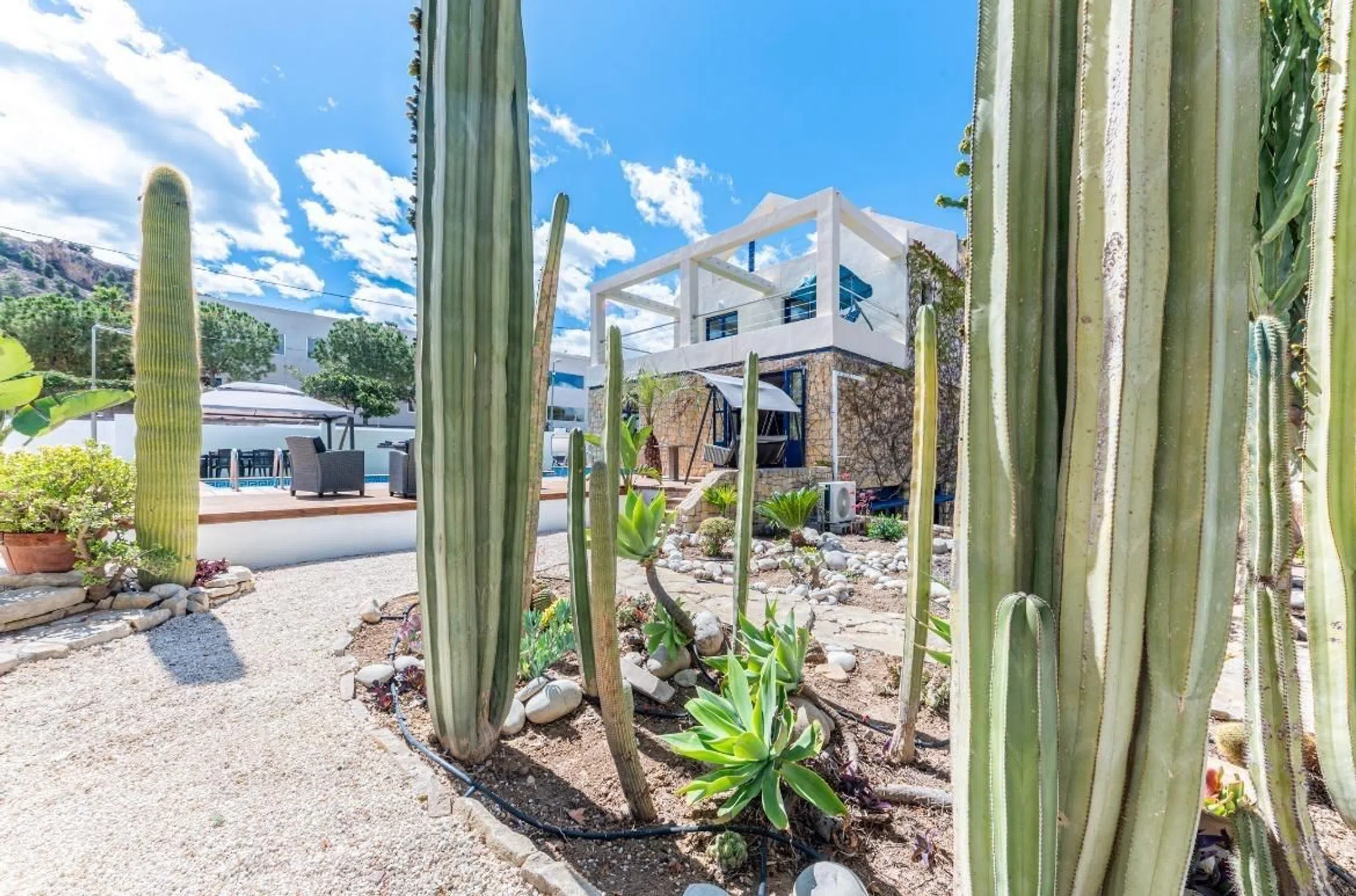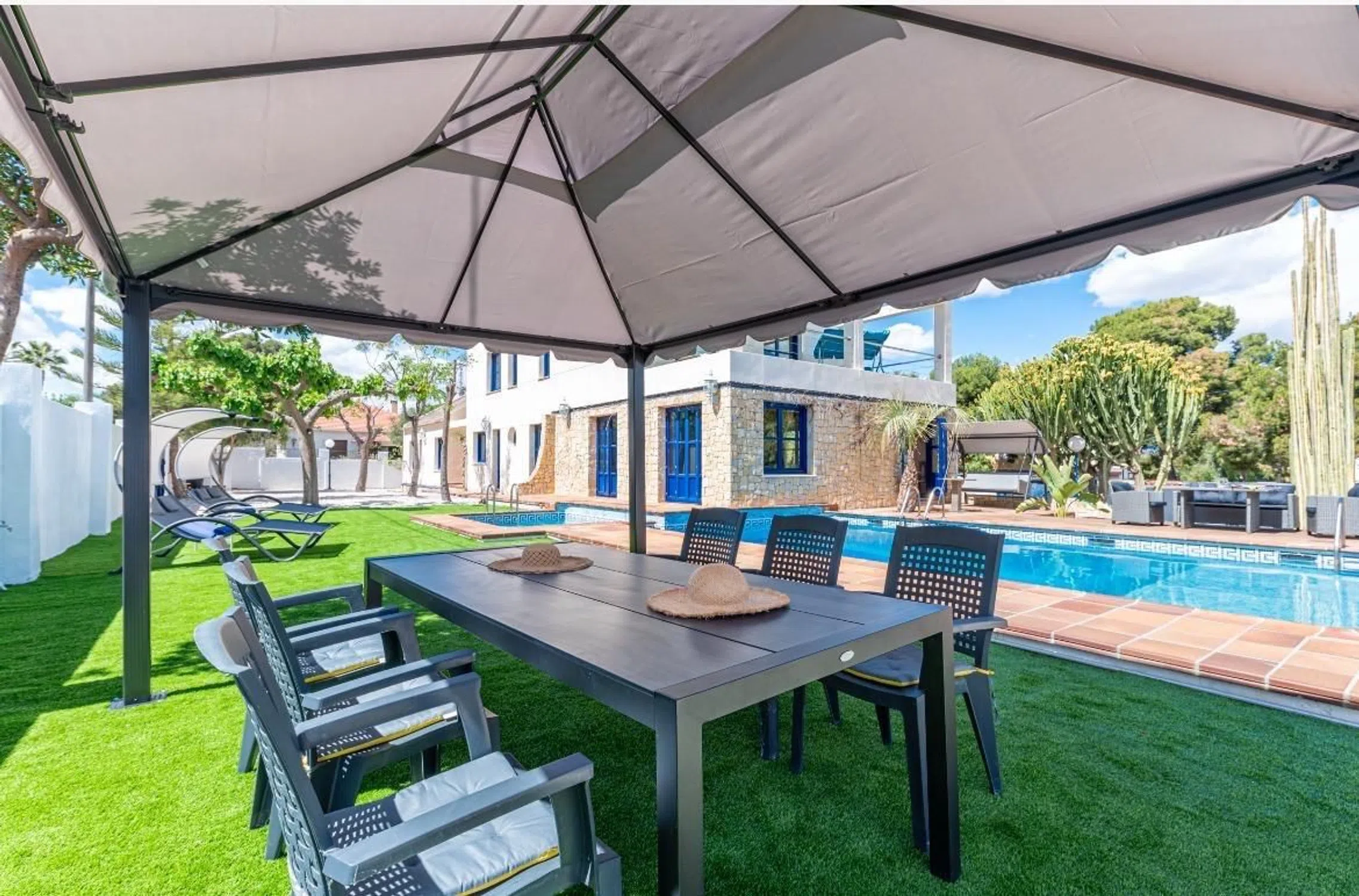 Un oasis mediterráneo de lujo en Vistahermosa, Alicante Descubre esta joya arquitectónica enclavada en el corazón de Vistahermosa, una de las zonas más exclusivas de Alicante. Esta majestuosa villa independiente se alza sobre una generosa parcela de 1.407 m², fusionando la esencia del diseño mediterráneo con acabados contemporáneos y el confort más exquisito. Totalmente renovada, esta residencia de 446 m² redefine el concepto de lujo residencial. Desde el primer momento, la propiedad impresiona con su imponente fachada revestida de piedra natural, abrazada por la vegetación y el sol del Mediterráneo. Al atravesar sus puertas, el interior te envuelve en una atmósfera de elegancia y amplitud, con un salón principal bañado en luz natural gracias a sus ventanas panorámicas que ofrecen vistas despejadas al jardín y a la impresionante piscina de 4 metros de profundidad. El comedor, integrado con fluidez al espacio de estar, se convierte en el lugar perfecto para celebraciones memorables, mientras que la cocina —moderna, luminosa y con acceso directo a la zona de barbacoa— está diseñada para vivir experiencias gastronómicas al aire libre con familia y amigos. La planta principal alberga cuatro dormitorios en suite, cada uno con armarios empotrados y baño privado, que garantizan comodidad y privacidad para todos los miembros del hogar. La primera planta se presenta como un refugio sereno: una acogedora sala de descanso conecta con una terraza con vistas abiertas a las montañas, mientras que el dormitorio principal destaca por su baño con jacuzzi, amplio vestidor y terraza privada con paisajes que enamoran. Pero la experiencia no acaba ahí. En la segunda planta, un espacio bañado por la luz natural se presta a ser un estudio, despacho o taller creativo, acompañado de una terraza-solárium con vistas panorámicas que invitan a soñar. El sótano no se queda atrás en protagonismo: una sala de juegos, un baño adicional y un garaje con capacidad para tres vehículos ofrecen funcionalidad sin renunciar al estilo. Además, el exterior de la villa es simplemente espectacular: jardines bien cuidados, una pista privada de pickleball y rincones de relax que convierten cada día en unas vacaciones. Construida en 1992 y cuidadosamente mantenida, esta propiedad se encuentra en excelente estado y lista para entrar a vivir. Con aire acondicionado, trastero, múltiples terrazas, balcones y una plaza de garaje incluida en el precio, esta villa lo tiene todo. Una residencia que no solo ofrece un hogar, sino un estilo de vida. Bienvenido a tu paraíso en la Costa Blanca. NOTA: Para viviendas en venta, el precio de venta anunciado no incluye IMPUESTO DE TRASMISIONES PATRIMONIALES, NI GASTOS DE NOTARÍA Y REGISTRO.