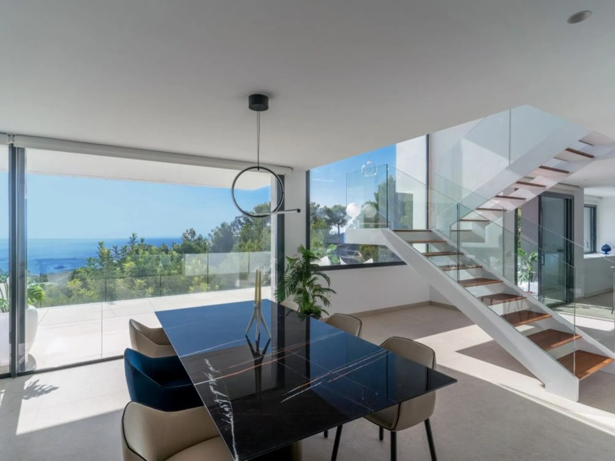 En Azure Altea Homes 2, Villa Tempo se presenta como un hogar diseñado para disfrutar del tiempo y compartirlo con quienes más importan. Desde el primer paso, una gran cristalera en la planta superior da la bienvenida con unas vistas espectaculares al Mediterráneo, marcando el ritmo de una casa que respira amplitud, luz y elegancia. La distribución de la vivienda se organiza en tres plantas conectadas por escalera y ascensor, y con acceso directo desde un parking cubierto con espacio para dos vehículos. La planta intermedia alberga tres dormitorios excepcionales. Dos de ellos cuentan con baño en suite, armarios empotrados y salida a una terraza compartida con vistas al mar. El dormitorio principal es un auténtico refugio, con vestidor, un baño completo con bañera y una terraza privada ideal para desconectar. En la planta principal, la zona de día se despliega como un espacio abierto, cómodo y elegante. Cocina, comedor y salón conviven en armonía con el exterior gracias a los grandes ventanales que se abren hacia una terraza panorámica con piscina infinita y la cocina de verano. Todo está pensado para disfrutar del paisaje desde cada rincón de la vivienda. Villa Tempo integra soluciones de eficiencia energética y tecnología: climatización por aerotermia, suelo radiante, ventilación mecánica y domótica. Cada detalle ha sido seleccionado para ofrecer funcionalidad, confort y una estética contemporánea. Vivir en Villa Tempo es dejar que el tiempo fluya con calma, rodeado de mar, luz y diseño. Un escenario perfecto para crear recuerdos inolvidables desde hoy mismo. ref: 20252.