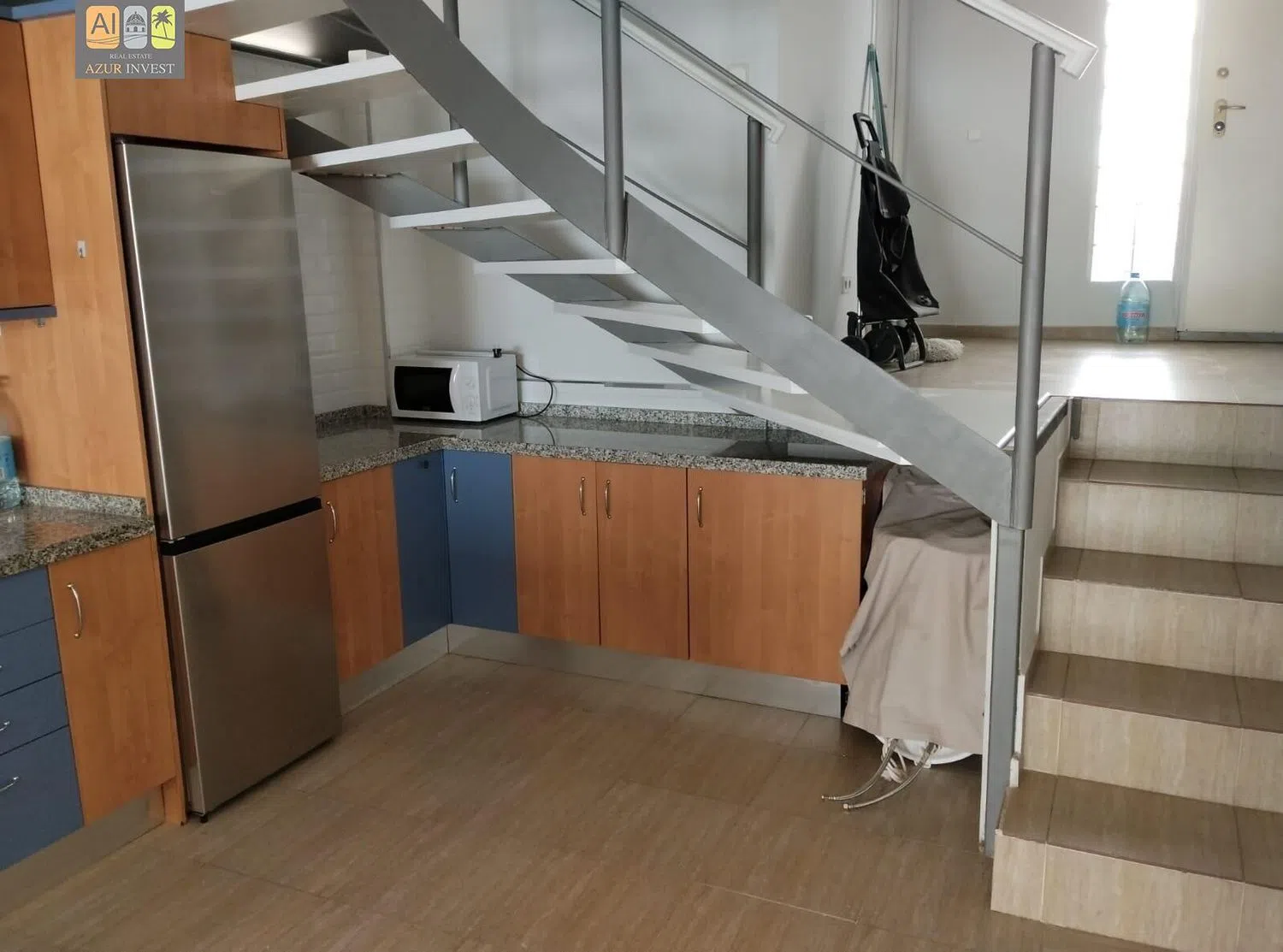 Недавно были установлены новые решетки и маркизы. Помещение A: на первом этаже — входная зона с двойной высотой, полностью оформленная дизайнерская ванная, просторная гостиная с интегрированной кухней и оригинальная лестница, ведущая на второй этаж. На втором этаже расположены три очень светлые комнаты с встроенными шкафами и еще одна дизайнерская ванная. Помещение радует ярким освещением и тишиной, а также хорошей естественной вентиляцией.