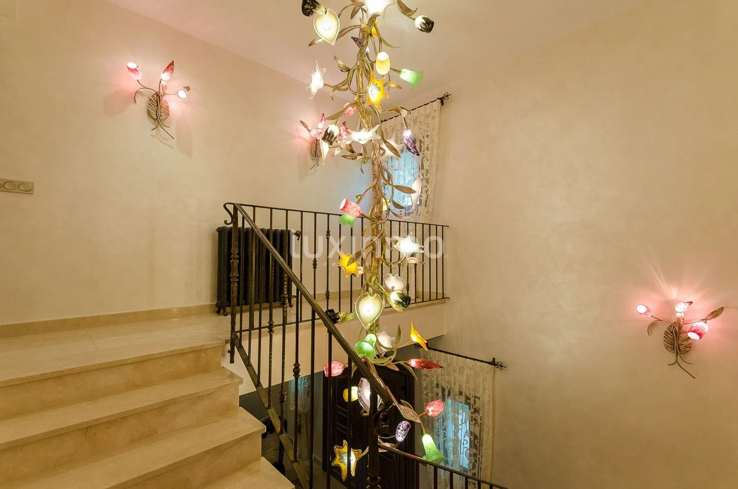 Вилла располагает 7 спальнями и 5 ванными комнатами, распределенными по нескольким этажам, а также полностью оборудованным гостевым домом. Имеется лифт, который соединяет три этажа — от гаража до основного уровня.