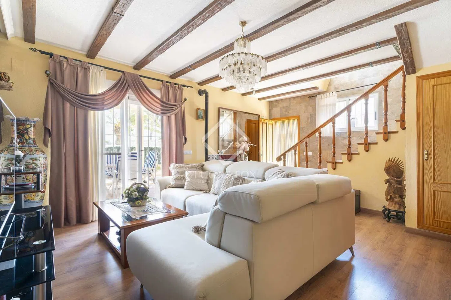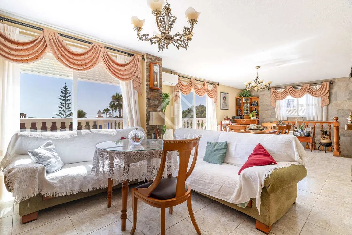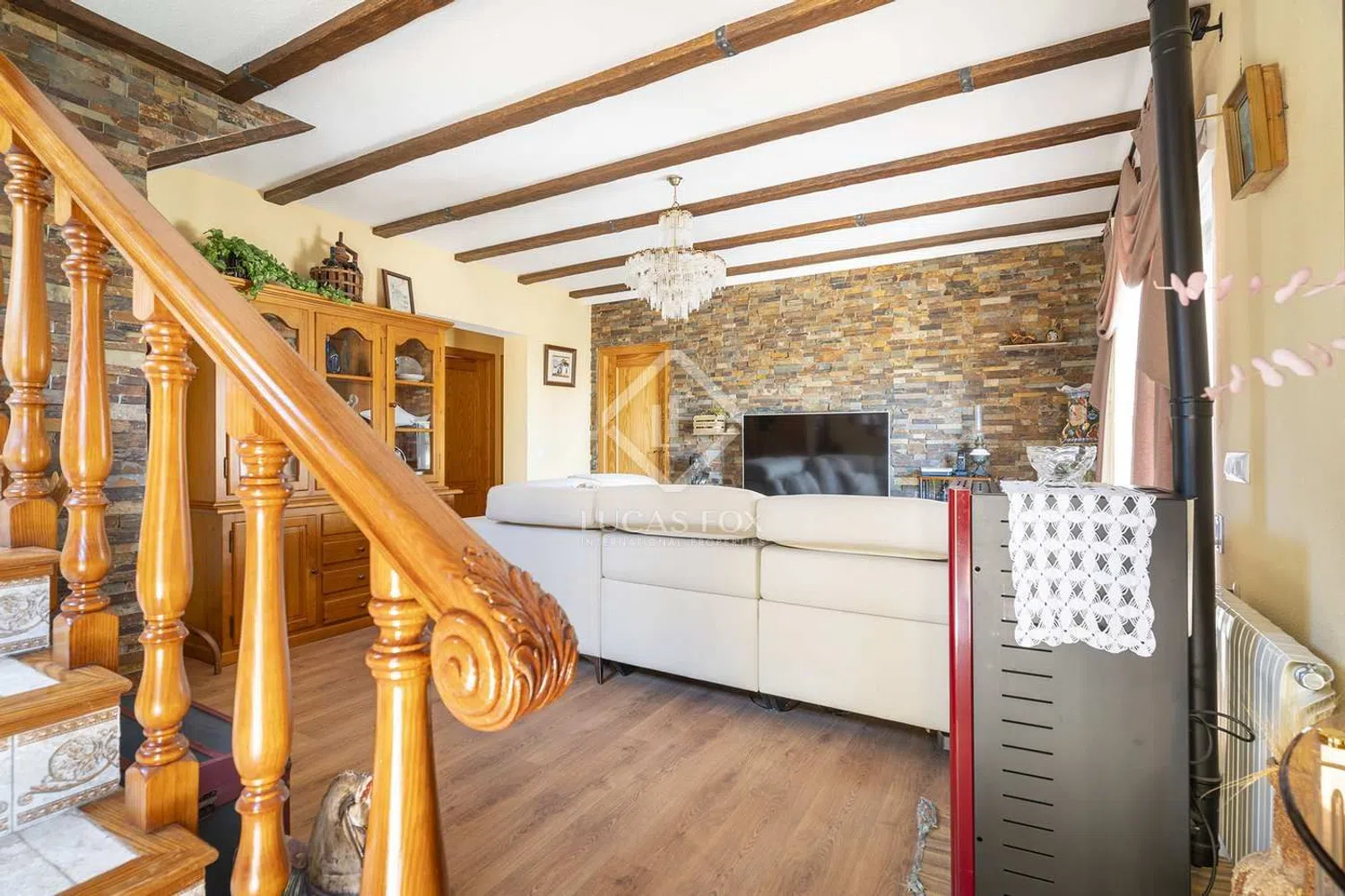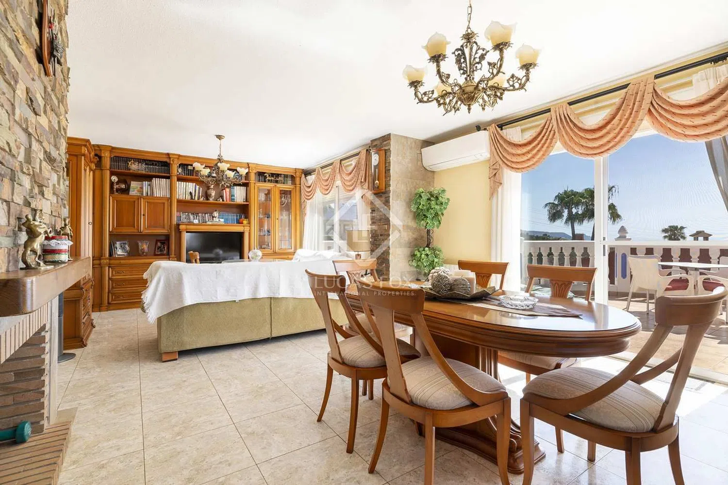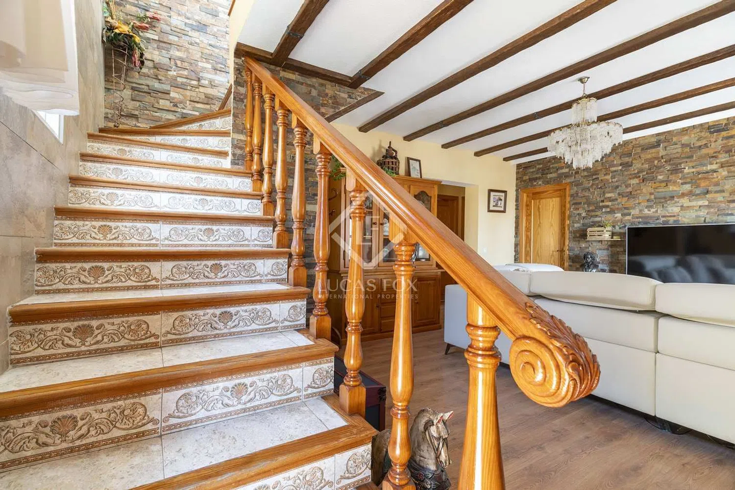 Очаровательная деревянная лестница ведёт на второй этаж, где вас ожидает вторая гостиная. Здесь вы сможете расслабиться у уютного камина, создавая тёплую и приветливую атмосферу. Эта гостиная открывается на балкон, откуда открываются живописные виды на сверкающее море и самобытный город, что делает это место идеальным для утреннего кофе или вечерних наблюдений за закатом.