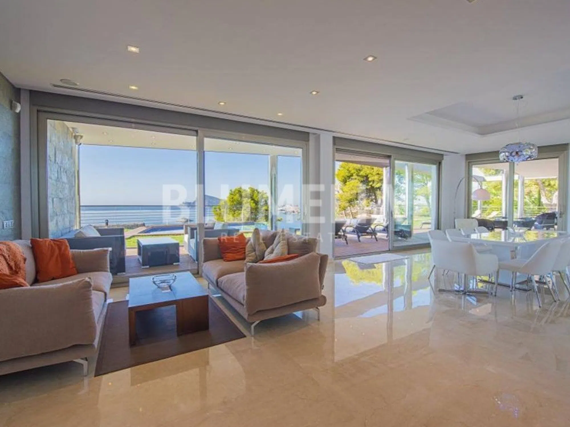 Esta villa de lujo de 772m2 construidos en una parcela plana frente al mar con una superficie de 2020m2 se encuentra en uno de los mejores enclaves de la Costa Blanca con absoluta privacidad y muy cerca de todos los servicios como bares, restaurantes y supermercados y muy bien conectada con la autopista a Alicante 40minutos y Valencia a 90 minutos. Este enclave fue la inspiración para que los arquitectos diseñaran una de las villas más singulares de la zona. La propiedad se divide en dos plantas más el sótano donde se encuentra la sala de cine y tiene 6 dormitorios dobles y 6 baños completos desde los cuales se tienen unas vistas privilegiadas al mar Mediterráneo. De esta villa podemos escribir un libro, pero resaltamos su excelente situación, amplitud de los espacios para lograr la mayor cantidad de luz natural, su diseño exclusivo y aprovechamiento de los espacios exteriores, sin lugar a dudas una villa exclusiva al alcance de gente exclusiva. Si necesita mas información u organizar una visita a esta villa de lujo ubicada en Altea, no dude en contactar con Blumelia, su agencia inmobiliaria de confianza en la Costa Blanca. ref: 3044.