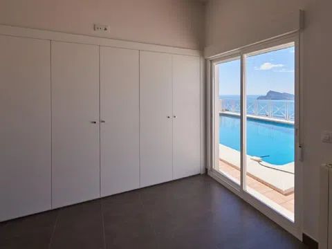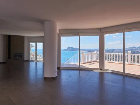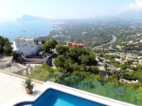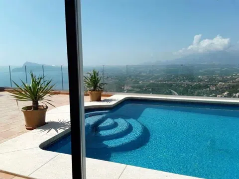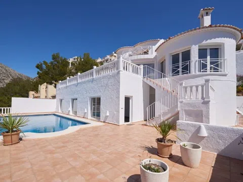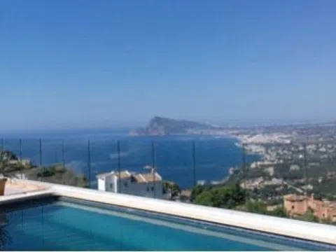 Altea Hills-Magnífica villa mediterránea totalmente reformada con vistas espectaculares al mar y a la bahía en urbanización de lujo con vigilancia. Construida en 3 plantas con un apartamento de invitados de 3 dormitorios y dos baños. Primeras calidades, dormitorio principal con elegante baño ensuite con Jacuzzi, suelo radiante, calefacción central de gas y aire acondicionado, chimenea con gas. Muy amplias terrazas con piscina de 10x5m. Planta diáfana de 80m2. [IW].