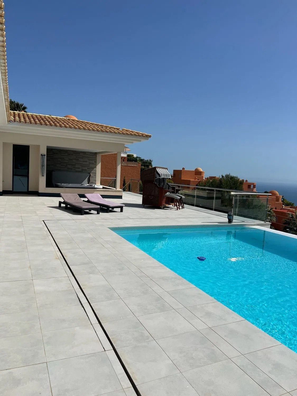 Esta lujosa villa está situada en una de las zonas más demandadas de Altea, ofreciendo impresionantes vistas al mar Mediterráneo y a las montañas circundantes. Está construida sobre una gran parcela de 1690m2 e incluye un amplio jardín y una gran terraza. Ofrece una impresionante piscina infinita que se fusiona con el mar y el horizonte. Junto a la piscina, un jacuzzi invita a relajarse mientras admira las impresionantes vistas sobre Altea, Albir y Benidorm. Una amplia zona de estar al aire libre y una barbacoa permiten relajarse y almorzar cerca de la piscina. La planta principal está diseñada para el entretenimiento y la relajación, proporcionando una cocina totalmente equipada y una gran sala de estar y comedor. Amplios ventanales llenan el espacio interior de luz y vista directa a la piscina. La villa ofrece una suite principal con su propio baño de lujo en suite, cuatro dormitorios adicionales que ofrecen vistas panorámicas al mar y dos baños de lujo. Un garaje muy grande permite acomodar hasta ocho vehículos. Toda la propiedad tiene calefacción por suelo radiante y aire acondicionado. Persianas eléctricas de alta seguridad y un sistema de alarma de última generación garantizan tranquilidad y privacidad. Por último, la planta baja ofrece un gran espacio para gimnasio en casa, una sala de cine lista para instalar y una sala de vinos dedicada.