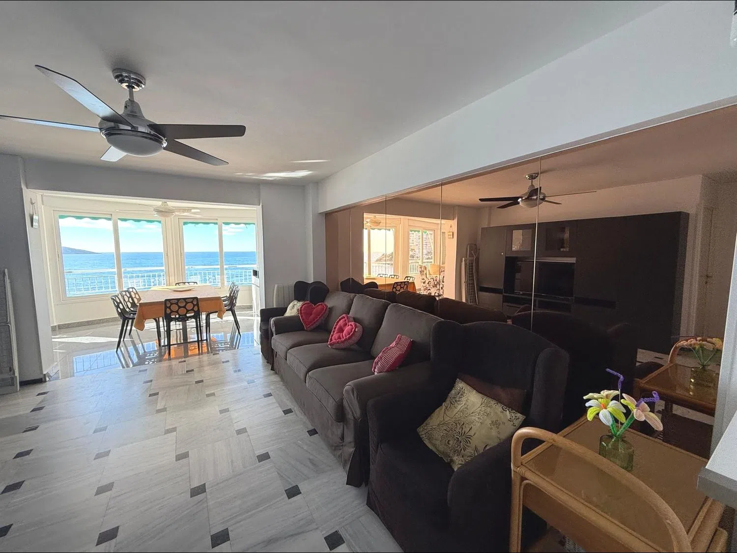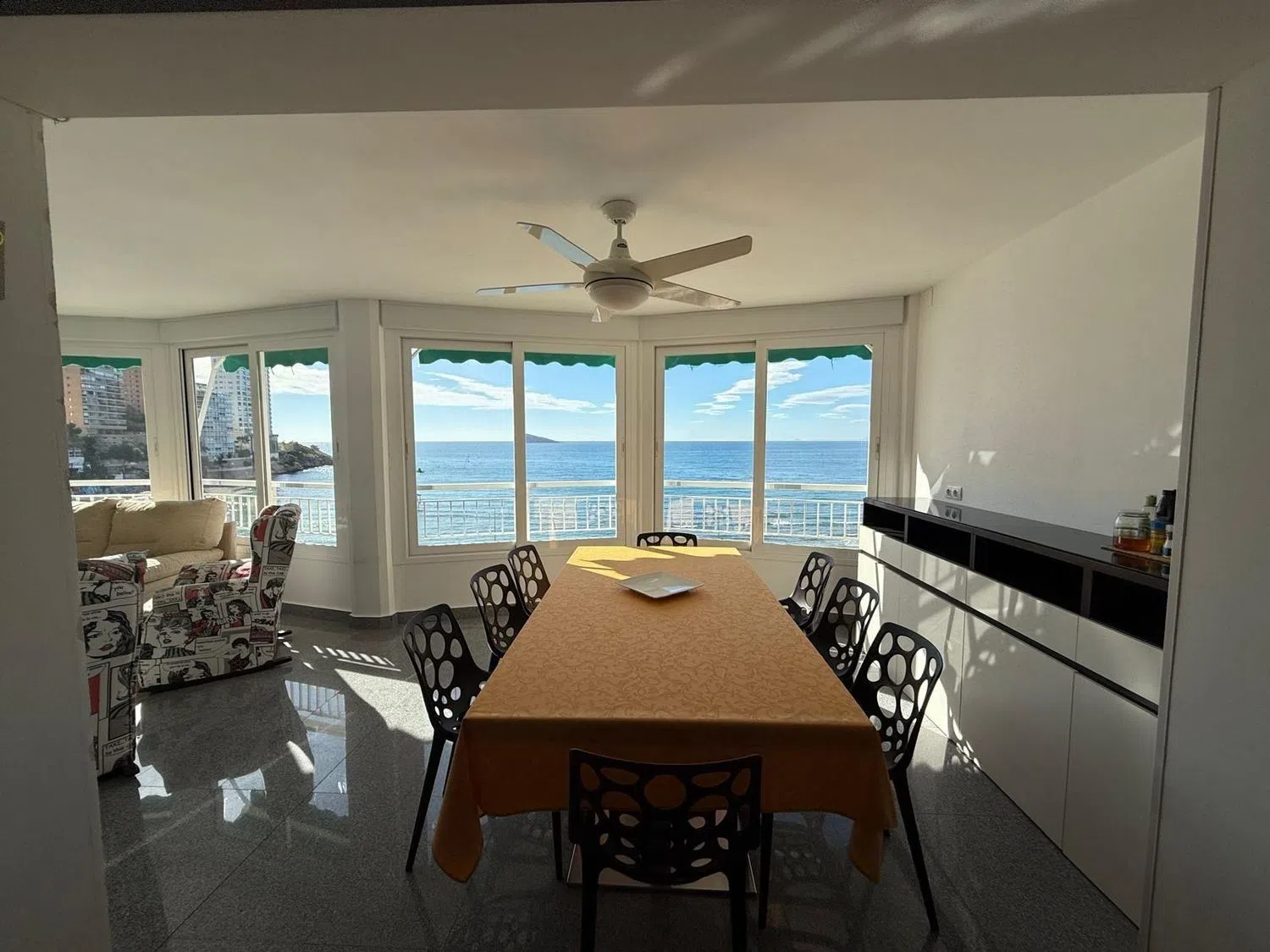 Продается великолепная квартира на первой линии у моря. Жилое пространство предлагает потрясающий вид на море и было полностью отремонтировано. Этот просторный апартамент включает два двуспальных номера с встроенными шкафами, большой гостиной с обеденной зоной, остекленной террасой с великолепными пейзажами, двумя обновленными ванными комнатами и полностью оборудованной отдельной кухней.