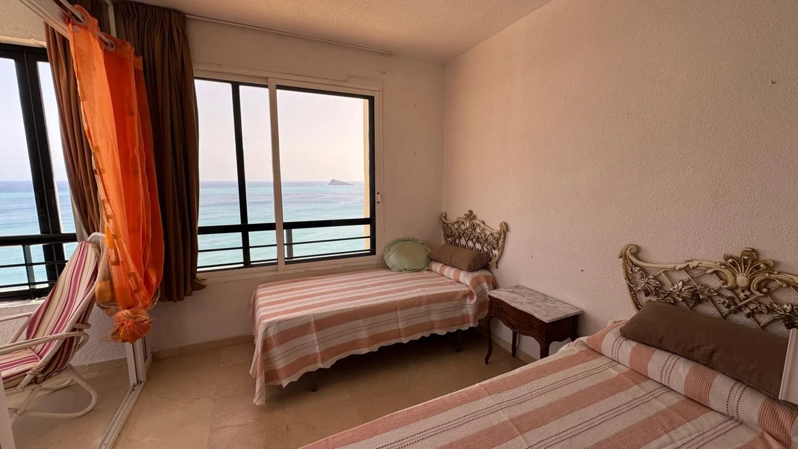 1. Piso → Apartamento en Benidorm zona 1ª Linea, 60 m. de superficie, 8 m2 de terraza, 5 m. de la playa, 2 habitaciones dobles, un baño, propiedad para Entrar a vivir, cocina equipada, orientación sur, suelo de mármol. Extras: acceso pmr, aire acond. central, ascensor, bomba frío y calor, luminoso, luz, piscina comunitaria, terraza acristalada, autobuses, céntrico, centros comerciales, centros médicos, colegios, costa, hospitales, parques, primera línea, supermercados, urbanización, vigilancia 24h, vistas al mar, vistas despejadas, parking incluido Gastos de comunidad: 100 Eur. Venta: 335.000 €.