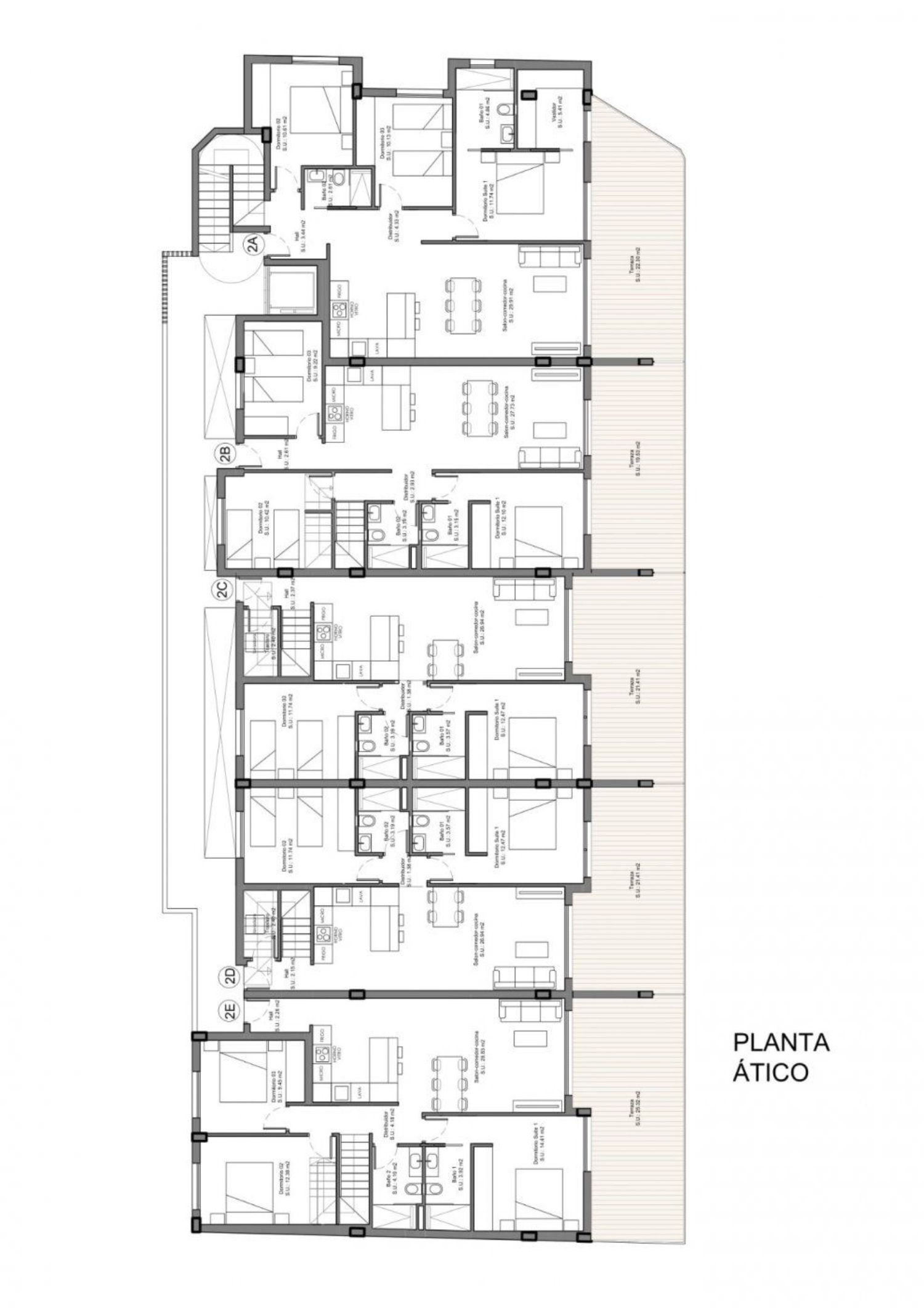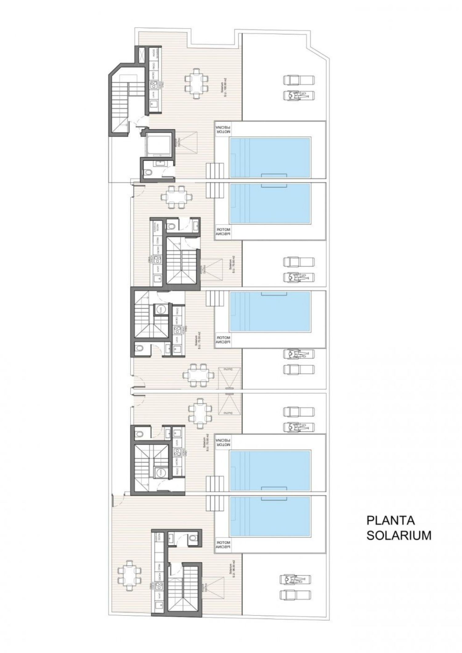 Современные пентхаусы в уютном районе. Этот жилой комплекс состоит из 15 квартир, 5 на каждом этаже, предлагая варианты с 2 или 3 спальнями и 2 ванными комнатами. Пентхаусы дополнительно оборудованы просторным частным солярием площадью от 75 квадратных метров, на котором находится туалет и предусмотрена возможность установки кухни — идеальное место для наслаждения живописными закатами летними вечерами.