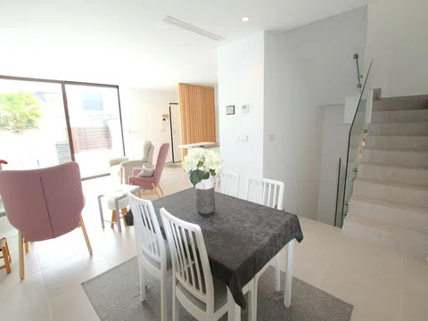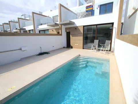 Aquí tenemos una villa adosada de tres dormitorios, elegante y moderna, a la venta en la codiciada localidad de Benijofar, situada en la Costa Blanca Sur. Esta impresionante propiedad orientada al este es de excelente calidad, mostrando una vida de lujo en un ambiente clásico español. Terminada en 2022, la villa se asienta en una parcela espaciosa pero manejable. Cuenta con aparcamiento fuera de la carretera, piscina privada, ducha exterior y una cómoda zona de estar y comedor exterior, que ofrece mucho espacio para relajarse y tomar el sol. El alojamiento se distribuye en dos plantas, ofreciendo espacios luminosos y amplios, junto con una importante construcción subterránea. En la planta baja, hay una generosa sala de estar y comedor, una cocina de diseño bien equipada con amplio espacio de trabajo, almacenamiento y electrodomésticos de alta gama. Además, hay un dormitorio doble con armarios empotrados y un baño familiar. Grandes puertas correderas de patio en el salón se abren directamente a la zona de la piscina. Una atractiva escalera conduce a la primera planta, donde encontrará dos dormitorios dobles con un amplio baño familiar con acceso Jack-and-Jill. Desde la planta superior, se puede acceder a una terraza soleada más grande de lo normal que domina la piscina y el jardín delantero, ¡un lugar ideal para disfrutar del comienzo o el final del día! Una escalera exterior conduce a un impresionante solárium en la azotea, que disfruta del sol y ofrece impresionantes vistas del pueblo y de las cercanas montañas de la Sierra de Callosa. Una escalera interior le lleva al sótano totalmente embaldosado que incluye un aseo de invitados y acceso a un patio trasero. ¡Esta área presenta infinitas oportunidades de creación, ya sea que desee espacios de vida adicionales, o un cine en casa, un gimnasio o incluso una sala de juegos! El propietario actual ha equipado la propiedad con un estándar muy alto, asegurando que se incorporaron muchas características mejoradas cuando se compró sobre plano. Los aspectos más destacados incluyen persianas motorizadas, paneles solares, aire acondicionado con conductos en toda la casa, aparcamiento fuera de la carretera, vistas directas a la piscina, armarios empotrados, sistema de alarma, iluminación exterior nocturna, calificación energética B y mucho más. Se ofrece a la venta parcialmente amueblada (sujeto a oferta), incluyendo aire acondicionado frío/calor totalmente canalizado, esta fabulosa propiedad de 3 dormitorios en venta en Benijofar sería el hogar familiar perfecto bajo el sol. Benijofar es un pueblo español pintoresco y encantador que se ha convertido en un lugar atractivo para quienes buscan invertir en propiedades en el extranjero. Situada en el corazón de la Vega Baja de Alicante, esta comunidad tradicional ofrece un estilo de vida tranquilo con una mezcla de comodidades modernas y encanto rústico español. Los propietarios de viviendas en Benijofar pueden sumergirse en un estilo de vida rico en cultura española. El pueblo cuenta con una gran cantidad de tiendas locales, bares y restaurantes que sirven especialidades regionales. Para aquellos interesados en actividades de ocio, la zona ofrece amplias oportunidades para disfrutar del aire libre. Largos paseos por los huertos de cítricos o visitas al cercano Parque Cañada Marsá son solo algunas de las maneras en que los residentes se conectan con la naturaleza. Benijofar también alberga un mercado callejero semanal los martes, donde lugareños y expatriados se reúnen para comprar productos frescos, delicias regionales y diversos artículos. Además, el pueblo celebra fiestas y eventos culturales anuales, ofreciendo una muestra de auténticas festividades españolas. La información proporcionada en los datos de venta, aunque se considera correcta, sirve como referencia general y no crea ninguna oferta u obligación contractual. Los posibles compradores no deben confiar en los dat