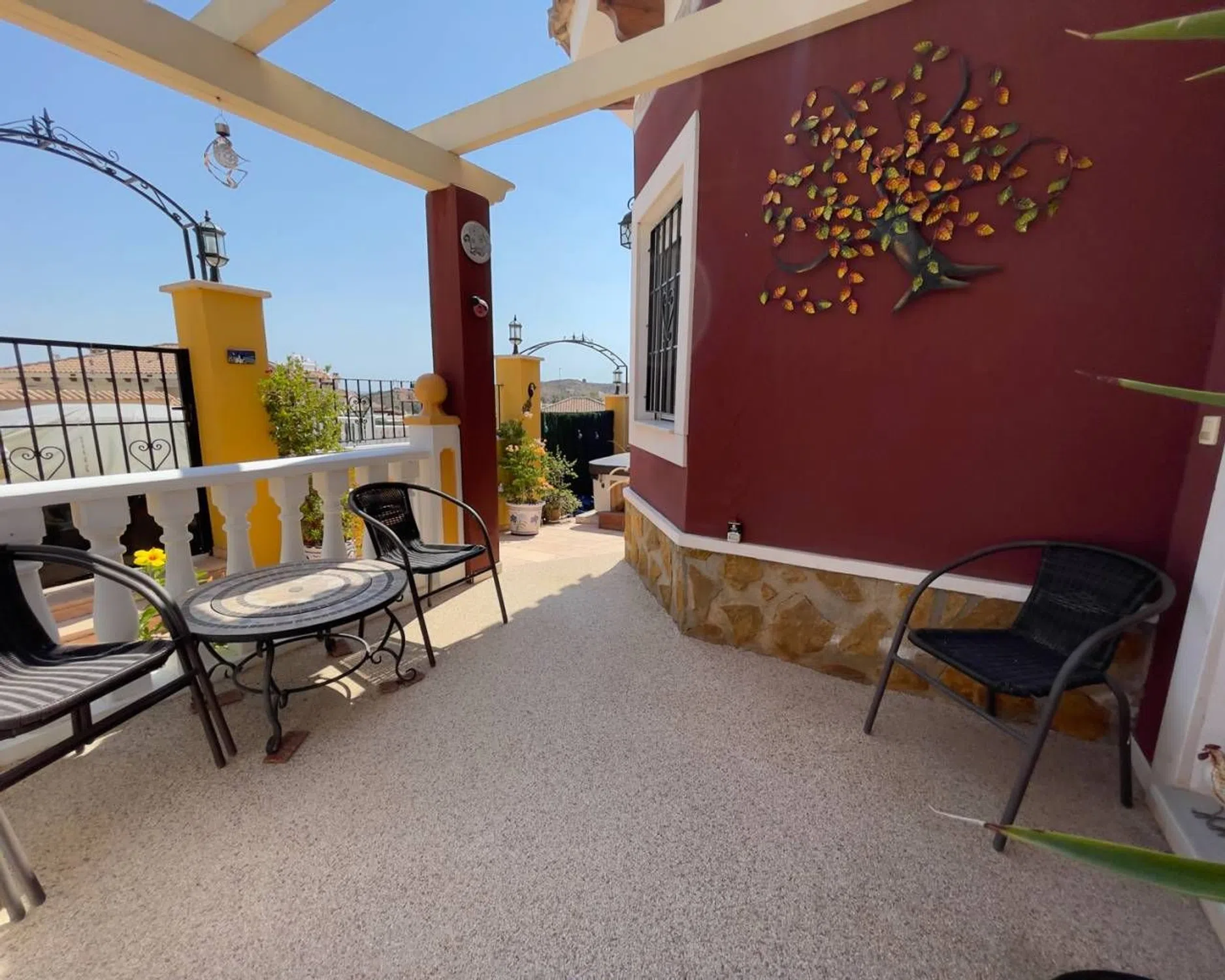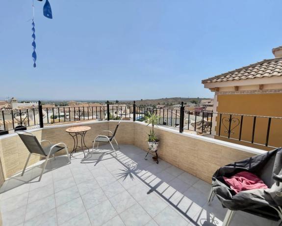 Villa de 3 dormitoris y 2 banos, Bigastro. Magnífica villa independiente de 3 dormitorios y 2 baños en venta en la exclusiva zona residencial de Villas Andrea. SE VENDE SIN AMUEBLAR. La villa de 101 m² (construida en 2002) ocupa una parcela ajardinada de 200 m² que cuenta con aparcamiento privado, zonas de estar privadas y espacio exterior para comer al aire libre. Se accede a la villa a través de una puerta de acceso o de una puerta doble que da acceso al aparcamiento privado. La terraza descubierta está revestida con alfombra de piedra de resina y cuenta con una mesa y sillas estilo bistró para disfrutar del café de la mañana. El salón-comedor es amplio y luminoso. El pasillo interior conduce al primero de los tres dormitorios dobles, situado en la planta baja, junto a un baño familiar. Las escaleras de mármol conducen a la primera planta, donde se encuentran otros dos dormitorios dobles, todos con armarios empotrados. Junto a los dormitorios se encuentra el amplio baño familiar con bañera. Desde el rellano se accede a la terraza solárium de la primera planta. La zona exterior cuenta con aparcamiento privado, pero los actuales propietarios la utilizan para albergar el jacuzzi, que se incluirá en la venta. También hay una zona cubierta para protegerse del sol y muchas otras zonas para cenar al aire libre y entretener a amigos y familiares. La propiedad cuenta con aire acondicionado frío/calor en toda la vivienda, además de calefacción eléctrica, mosquiteras y sistema de alarma. Dada su gran tamaño y su proximidad a la ciudad de Orihuela, y a tan solo 25 minutos en coche de la costa, esta maravillosa villa sería el hogar familiar perfecto bajo el sol. La propiedad se encuentra a pocos minutos en coche del pueblo de Bigastro, donde encontrará una amplia gama de servicios y comodidades, como tiendas, bares y restaurantes. Las maravillosas playas de arena de Guardamar del Segura están a solo 25 minutos.