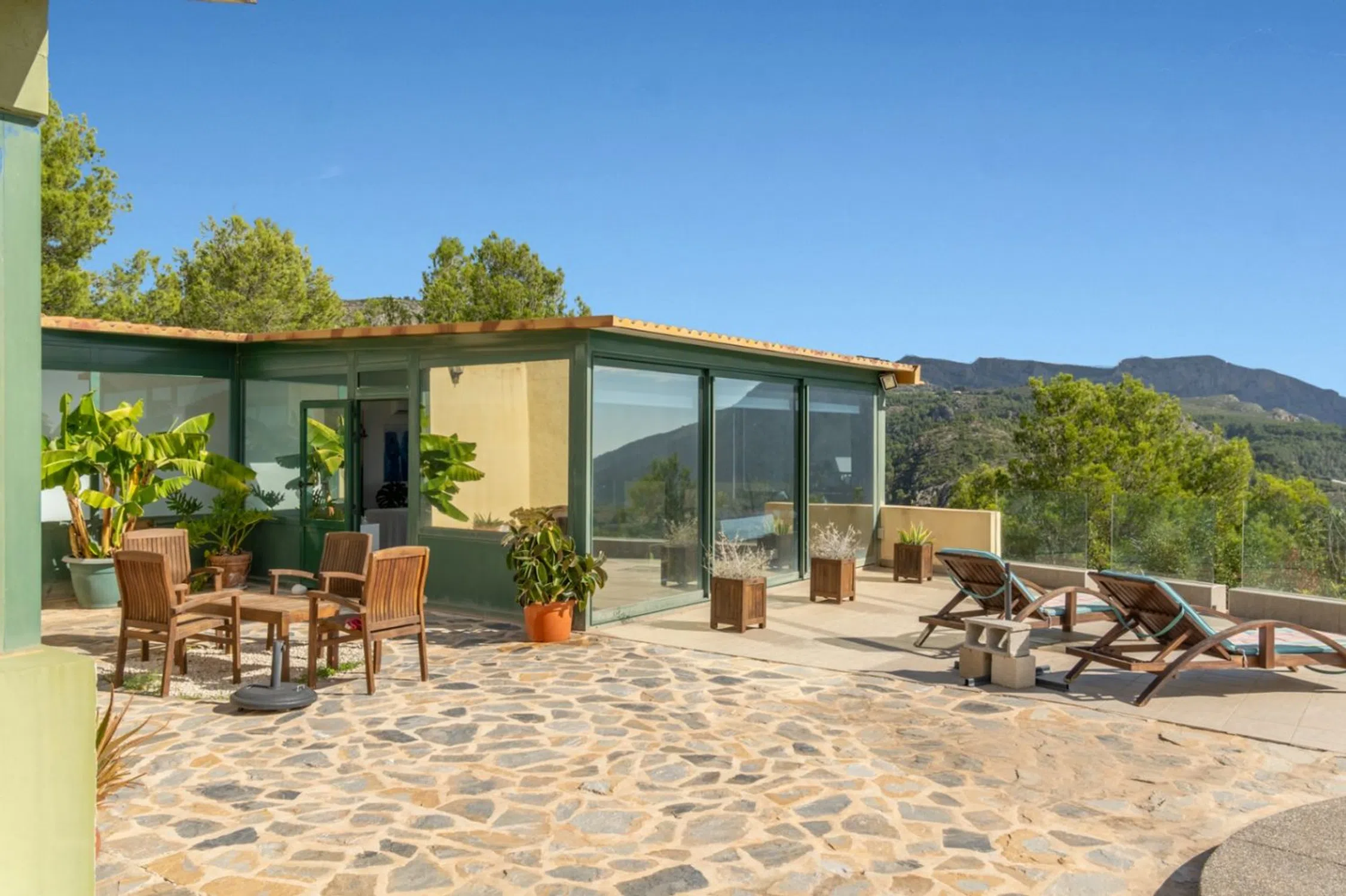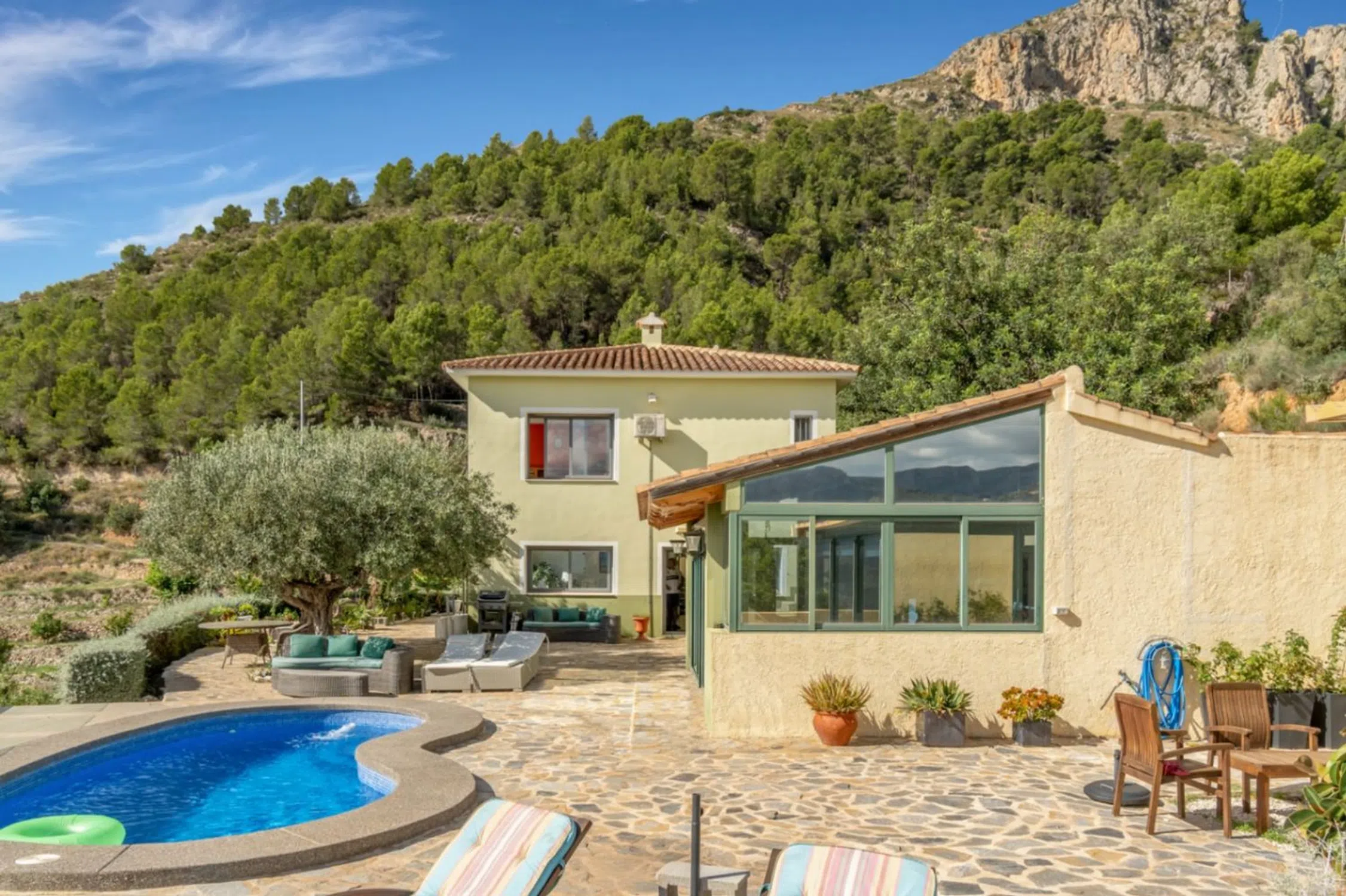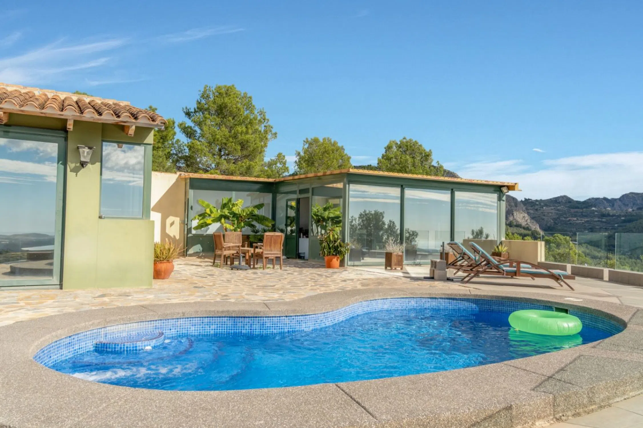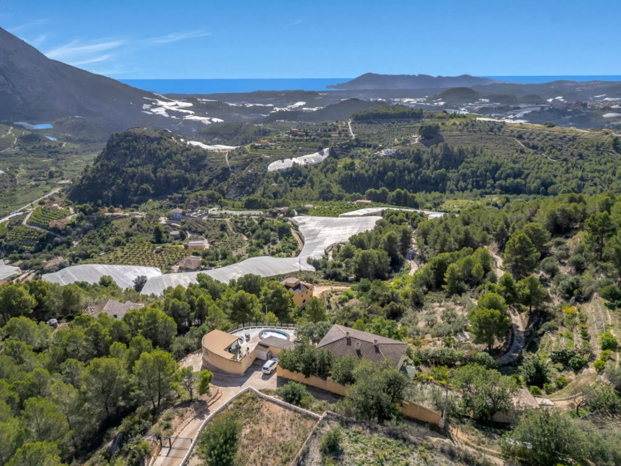 En lo alto de Bolulla, donde las montañas abrazan el mar y el silencio se vuelve lujo, se alza Villa Horizonte, una propiedad que redefine el estilo de vida mediterráneo. Con más de 5.000 m² de parcela, esta villa ofrece privacidad absoluta, vistas panorámicas hacia el valle y el mar, y una conexión genuina con la naturaleza. Su arquitectura combina amplitud, luz y calidez. En la planta principal, una sala de ocio con baño propio y orientación al exterior invita a relajarse o trabajar con inspiración; también puede transformarse en apartamento de invitados. Desde su terraza se accede a la piscina con vistas abiertas y a una sala de deporte privada, ideales para disfrutar del entorno sin salir de casa. La vivienda principal acoge una cocina abierta con comedor y un salón de doble altura, donde la luz natural es protagonista gracias a sus amplios ventanales y orientación sur. En esta misma planta se encuentra una oficina (o dormitorio adicional), un baño completo, un lavadero y acceso a una terraza trasera íntima, perfecta para disfrutar de un rincón de paz rodeado de vegetación. La planta superior ofrece un dormitorio principal con baño en suite y vestidor, además de dos dormitorios de invitados que comparten baño. Desde cada estancia, las vistas al valle y al mar recuerdan que el Mediterráneo está siempre presente. La propiedad cuenta con suelo radiante, dos garajes cerrados con capacidad para varios vehículos, zona de cultivo, corral, depósitos de agua y mucho más. Ubicada en un entorno natural privilegiado, Villa Horizonte es el refugio perfecto para los amantes de la tranquilidad, las caminatas entre montañas y la autenticidad de la vida de pueblo. Diversas rutas serpentean por la Sierra del Oro hasta llegar a pequeños bares locales, donde la tradición y la calma se dan la mano. Una propiedad que no solo se vive, se siente.