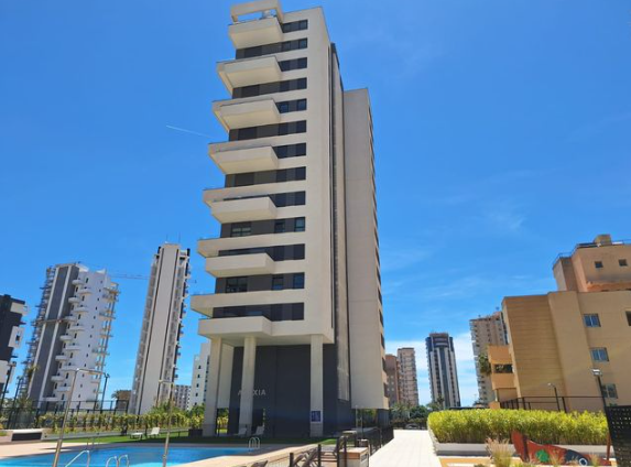 Жилье находится на третьем этаже современного здания и включает в себя 113 м² общей площади, распределенных в гостиной с современной открытой кухней, 3 спальнями, 2 высококачественными ванными комнатами с белыми смоляными душевыми и стеклянными панелями, а также 2 террасами около 30 м², которые дарят панорамные виды на Средиземное море и природный парк Salinas. Также включены подземное парковочное место и кладовка, обеспечивающие удобство и безопасность.