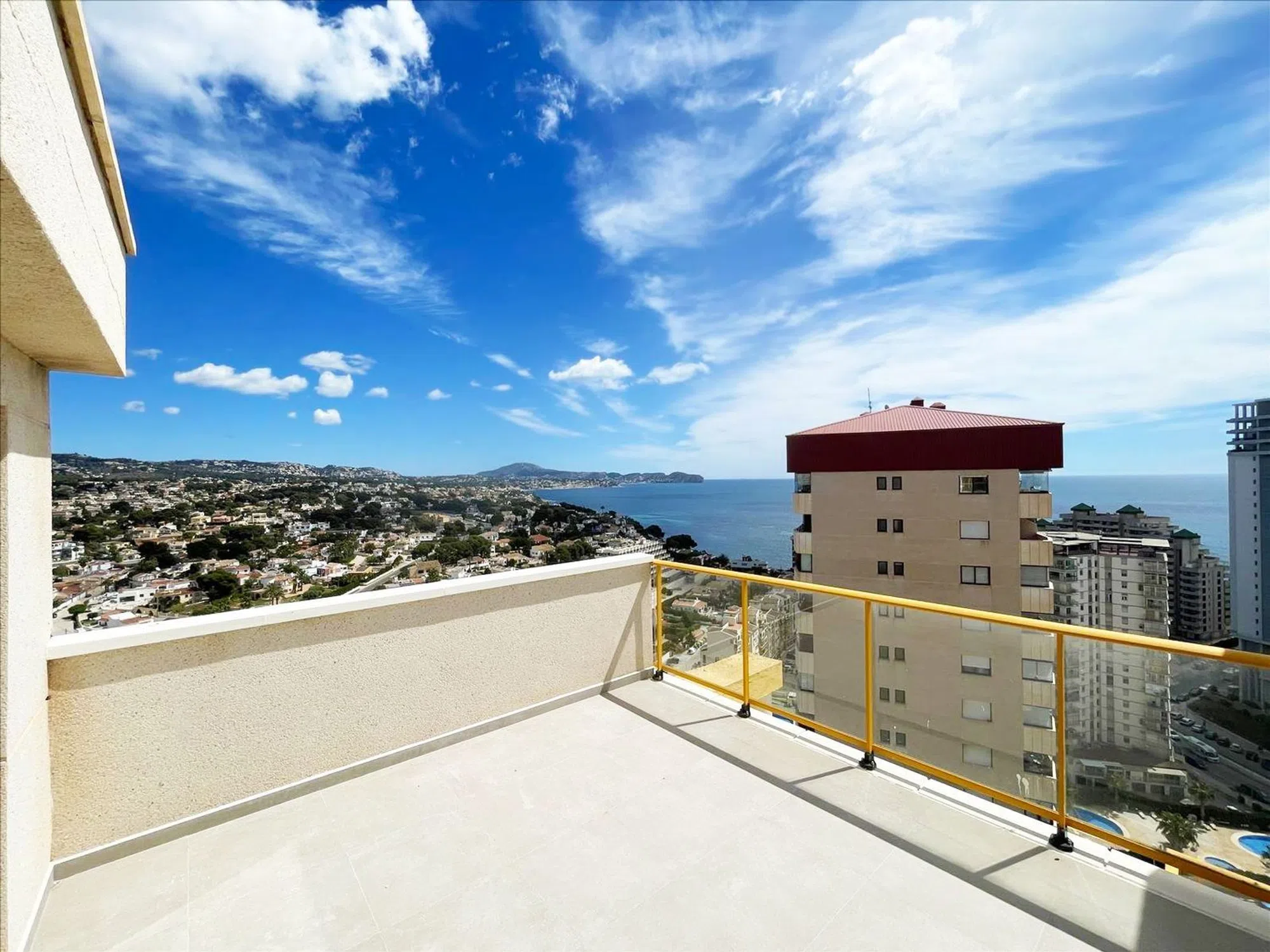 Atico Duplex renovado, 21ª planta, en venta en Calpe, Costa Blanca, con vistas espectaculares al mar, piscina comunitaria y garaje, a solo 150 m de la playa. Este Atico de 270 m2, esta situado el la planta 21 del edificio, con 2 ascensores y orientado al Sur, a solo 25 m del Supermercado Mercadona, a 40 m del Supermercado Consum, a 100 m de restaurantes y a 150 m de la playa. Distancia al aeropuerto de Alicante: 72 km. El complejo residencial, totalmente cerrado, posee una piscina comunitaria y zonas ajardinadas comunitarias. Este fantastico duplex se distribuye en un amplio salon- comedor, con vistas epectaculares al mar, una cocina abierta con isla, 3 dormitorios, 5 terrazas, todas ellas con vistas al mar, Peñon de Ifach, Portet, Las Salinas y a toda la bahia de Calpe, 1 cuarto de baño en suite y 2 cuartos de baño familiares. Garaje cerrado incluido en el precio. Extras incluidos en el precio: - Renovado. - Doble acristalamiento. - Aire Acondicionado central por conductos. - Garaje cerrado. - Playa a 150 m. Llámenos para una visita o más información. Trabajamos para que encuentre la casa de sus sueños. Le enseñaremos esta propiedad si le interesa, o buscaremos para usted hasta encontrar lo que busca. ¡Después, nos encargaremos de todo el papeleo necesario hasta la entrega de las llaves! [IW].