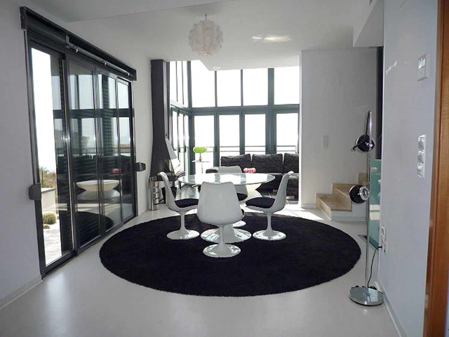 Спектакулярный полуотдельный модернистский дом на первой линии моря с южной ориентацией. Жилая площадь распределена на два этажа, которые соединены внутренней лестницей. На верхнем этаже располагается крытый солярий, а также подвал, который был построен позже и также имеет внутреннюю лестницу, обеспечивающую доступ. Этот дом был возведен в 2008 году и полностью реконструирован в 2009 году, при этом внешняя терраса на первом этаже была интегрирована в жилое пространство с помощью панорамных стекол, объединяющих два этажа.