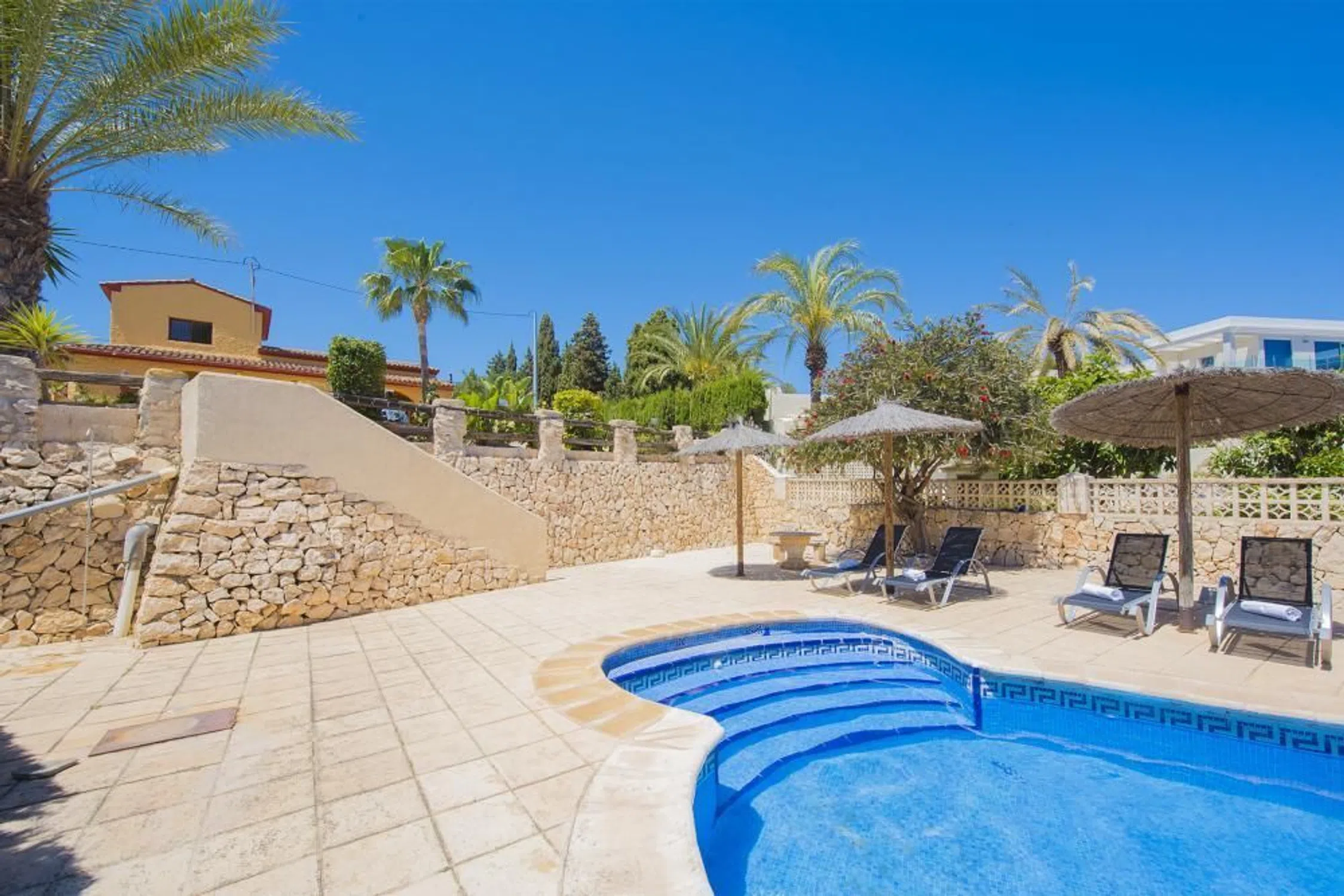 DV086V A continuación os presentare una amplia villa con piscina privada a tan solo 500 m de playa de arena. La villa se encuentra ubicada en la urbanización la Calalga, urbanización cercana a la playa de arena, paseo marítimo y todos los servicio. Esta espaciosa villa, destaca por su amplia parcela de 2000 m2, Parcialmente cerrada, en la que se encuentran diferentes terrazas en diferentes niveles, algunas de ellas ajardinadas. La villa está compuesta por 2 plantas independientes, con una superficie interior total aprox. de 300 m2. Planta baja: Amplio Salón-comedor, cocina independiente totalmente equipada, 3 dormitorios, 3 cuartos de baños, 1 cuarto con lavadora. Planta principal: salón-comedor, terraza cubierta con vistas espectaculares al mar, cocina independiente, 3 dormitorios, 1 cuarto de baño. 1ª planta: Amplio dormitorio y cuarto de baño en suite. En el exterior se puede disfrutar de su amplia Parcela en la que se encuentra una piscina con forma de riñón de dimensiones (8,5x4) con escaleras romanas y ducha exterior, barbacoa de obra y aparcamiento en la misma parcela para 3-4 vehículos. Una corta distancia les permitirá acceder a la playa de arena (“la calalga” 0,5 km) Restaurantes y paseo maritimo. Playa de levante (0,9 km) supermercados (mercadona 0,5 km). Calpe centro (3,6 km). Para mas información o para hacer una visita a la propiedad no dude en contactarnos. Calpe, uno de los pueblos de La Marina Alta, se encuentra en la costa norte de la provincia de Alicante, rodeado de los pueblos de Altea, Benidorm, Teulada-Moraira, Benissa. Es un lugar muy popular para el turismo, bajo la sombra del Peñón de Ifach, emblema de La Costa Blanca. Tiene una historia fantástica y sorprendente, y es un excelente lugar para vivir debido a su hermosa y soleada ciudad, una amplia variedad de restaurantes, tiendas y excelentes personas. [IW].