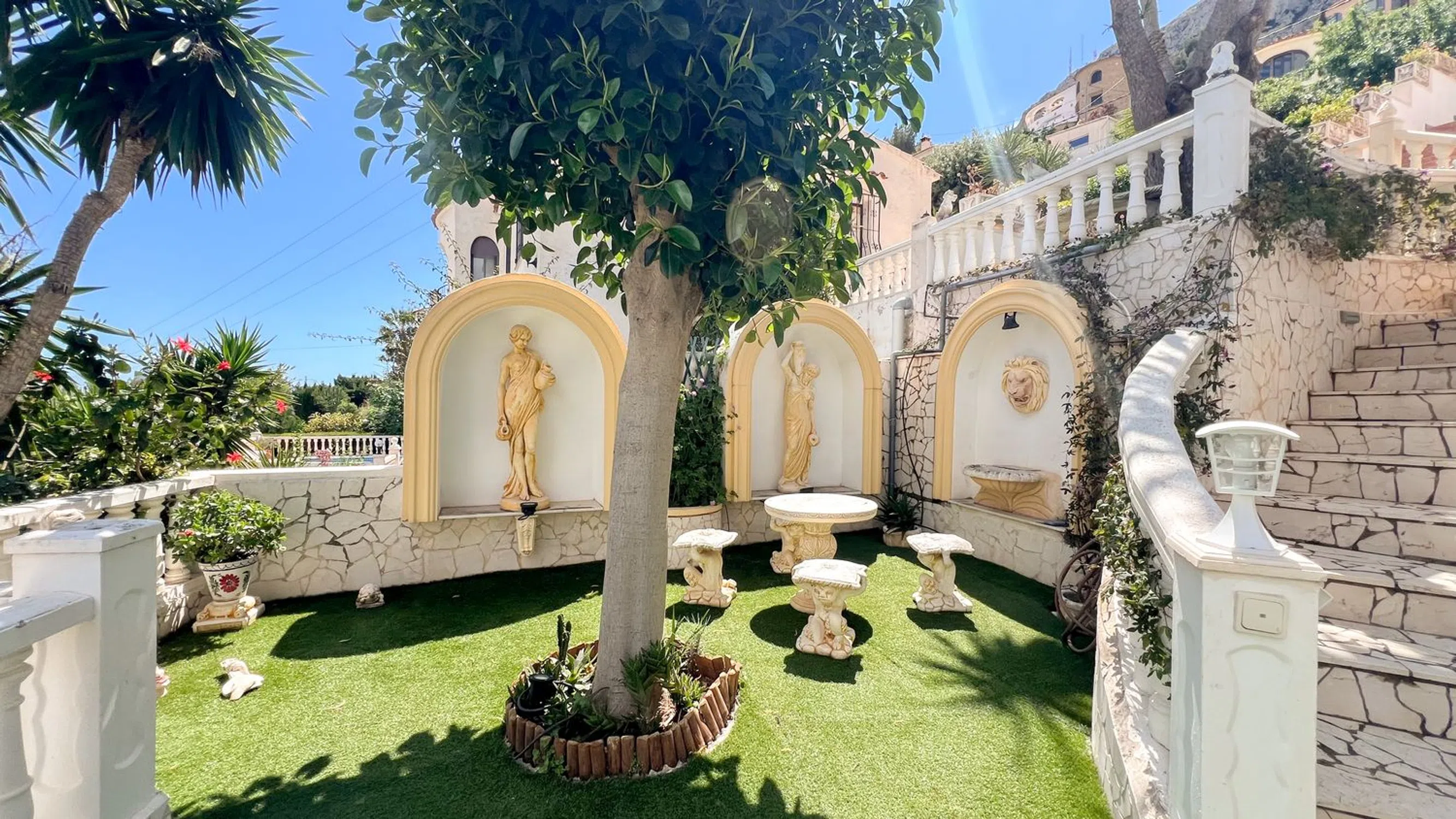 Villa moderna de dos niveles, renovada en 2016, con una superficie habitable de 138 m², situada en una parcela de 960 m² con vistas al mar, a la montaña y al pueblo. A solo 10 minutos del centro y 5 minutos de la playa. Características principales - Superficie habitable: 138 m², 4 dormitorios, 3 baños - Cocina americana totalmente equipada y salón con ventanales panorámicos - Piscina privada - Sauna privada - Bodega para almacenamiento de vino - Instalación eléctrica completamente renovada (interior y exterior) Espacios exteriores - Piscina privada (8x4 m) con terraza, ducha de agua caliente y aseo - Cocina exterior con bar junto a la piscina - Varias terrazas - Jardín con huerto - Barbacoa y zona de juegos para niños - Aparcamiento seguro para 5 vehículos con portón electrónico Confort y equipamiento - Wi-Fi de alta velocidad en toda la propiedad - Televisión por satélite con más de 1000 canales multilingües - Ventiladores de techo en cada habitación y brisa natural del mar Oportunidad de inversión Posibilidad de alquiler vacacional con ingresos atractivos gracias al tamaño, los servicios y la excelente ubicación. Para más información o para organizar una visita, contáctenos hoy mismo y descubra esta villa única.