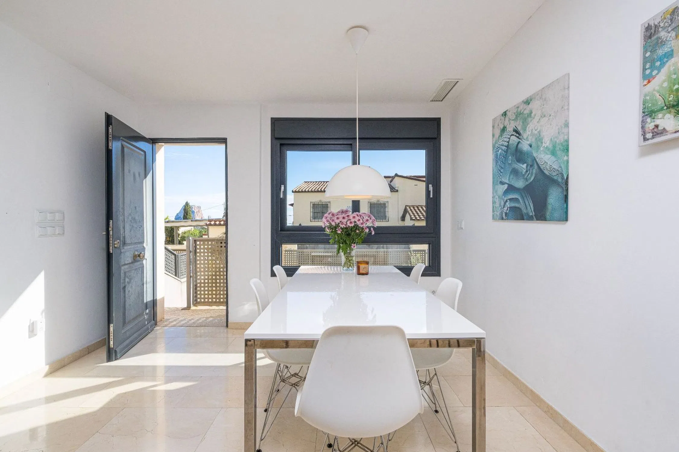 Hermoso bungalow de tres plantas en Calpe, con impresionantes vistas al icónico Peñón de Ifach, al mar Mediterráneo y a las montañas. La superficie total es de 120 m². Este bungalow se encuentra en una ubicación privilegiada cerca del mar, en una de las zonas más pintorescas de Calpe, ofreciendo un entorno inigualable para vivir o vacacionar. Su distribución de tres plantas está diseñada para ofrecer comodidad y funcionalidad. Cuenta con dos amplias terrazas, una con vistas panorámicas al mar y al Peñón de Ifach, y otra con vistas a las montañas, perfectas para disfrutar del clima y las vistas. Además, dispone de tres dormitorios, el principal con baño en suite y los otros dos con baños independientes, brindando privacidad y confort. La cocina moderna e independiente tiene acceso a un patio interior, ideal para disfrutar de momentos al aire libre y hacer barbacoas. El gran salón, luminoso y amplio, ofrece acceso directo al garaje, mientras que el ascensor interior aporta mayor comodidad y accesibilidad. El garaje cerrado tiene espacio para un coche y entrada directa a la vivienda, lo que proporciona facilidad y seguridad. En cuanto a las zonas exteriores, la propiedad cuenta con dos patios acogedores, uno de los cuales está diseñado especialmente para descansar o disfrutar de barbacoas. El complejo residencial ofrece una piscina comunitaria y una zona de aparcamiento para los residentes. Este bungalow es el lugar ideal para quienes buscan una residencia permanente o una escapada vacacional, combinando confort, naturaleza y calidez en un entorno inmejorable. [IW].