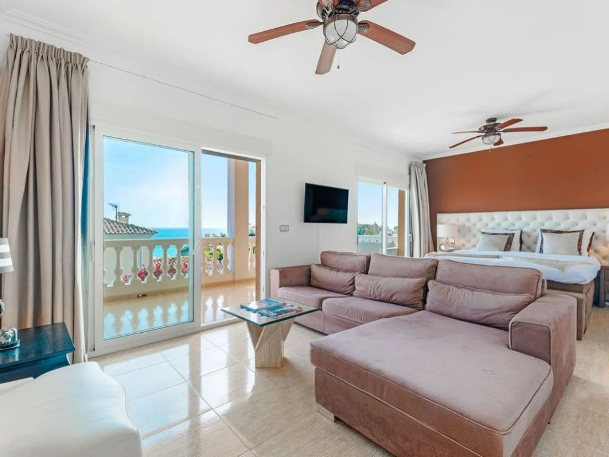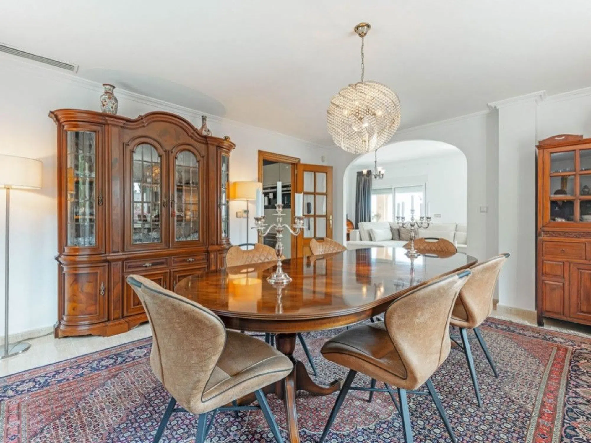 Ubicada en la exclusiva zona de Costa Blanca Norte, en la prestigiosa urbanización residencial de Coveta Fuma, Villa Taman Firdaus es una propiedad extraordinaria. Con más de 400 metros cuadrados, esta imponente villa se alza majestuosamente sobre una amplia parcela elevada, de más de seis veces y media su tamaño, ofreciendo una sensación incomparable de espacio y sofisticación. Situado a proximidad de la cala 'Cala de Les Piteres' y a poca distancia en coche tanto del encantador pueblo pesquero de Villajoyosa al norte como del pintoresco pueblo costero de El Campello al sur, esta residencia ofrece el equilibrio perfecto entre serenidad y accesibilidad. Gracias a su ubicación privilegiada, la propiedad ofrece impresionantes vistas al mar y a la montaña y se encuentra a poca distancia a pie del mar y de la estación de tranvía. Con acceso por una carretera residencial, muy cerca de la N-332, la villa se encuentra a sólo 5 minutos en coche de la autopista Alicante-Valencia, lo que garantiza excelentes conexiones de transporte. Una puerta de entrada automatizada se abre hacia una imponente entrada para vehículos con la elegante fachada de la propiedad como telón de fondo. En el interior, Villa Taman Firdaus combina a la perfección amplios espacios de vida con impecables acabados. Reformada en 2023 con los más altos estándares, la cocina y los baños cuentan con materiales de primera calidad, ofreciendo tanto lujo contemporáneo como estilo atemporal. Las espectaculares zonas exteriores de la villa están perfectamente diseñadas para relajarse y recibir a invitados, sobre todo en torno a la impresionante terraza de la piscina con sus vistas panorámicas al mar. Tanto el jardín paisajístico como la elegante entrada transmiten una sensación de serenidad, mientras que el impecable estado de la villa y su LICENCIA TURÍSTICA ofrecen una buena oportunidad de inversión para el comprador más exigente. Planta principal: Al entrar, un gran vestíbulo da paso a un espacioso salón, complementado por un elegante comedor y una cocina totalmente equipada con lavadero separado. El vestíbulo principal, con su escalera de madera tallada, también conduce a un baño de cortesía. En esta misma planta, hay un apartamento con entrada independiente, ideal para invitados o para usar como apartamento de alquiler. Este apartamento está compuesto de un elegante salón-comedor, cocina, dormitorio principal con baño en suite, sauna y una terraza privada con vistas a la montaña. Planta superior: La suite principal es un oasis de lujo, con una amplia zona de estar, vestidor y baño en suite con dos lavabos. Además, goza de una terraza con cautivadoras vistas al mar. En esta misma planta, se encuentran tres dormitorios dobles adicionales, uno de ellos con baño en suite, junto con un baño independiente que da servicio a los otros dos dormitorios. Todas las habitaciones de esta planta disfrutan de impresionantes vistas del entorno natural. Última planta: Aquí se encuentra el estudio/observatorio de forma octogonal que ofrece un entorno ideal para el teletrabajo así como las mejores vistas de la propiedad con una terraza privada que invita a disfrutar de momentos de reflexión en un entorno de tranquilidad. Nivel del garaje: El amplio garaje ofrece estacionamiento cubierto, junto con espacio adicional para múltiples vehículos, garantizando tanto comodidad como seguridad. También hay una estación de carga para vehículos eléctricos en la zona de aparcamiento. Exteriores: Las zonas exteriores son un verdadero atractivo de la villa, con varias terrazas amplias, idóneas para cenar al aire libre o para relajarse junto a la piscina de 45 m², que goza de vistas directas al mar Mediterráneo. Un anexo de piscina totalmente equipado, con cocina, ducha y aseo, permite disfrutar de la vida al aire libre con todas las comodidades. Villa Taman Firdaus es un refugio mediterráneo clásico que irradia calidez y sofisticac.