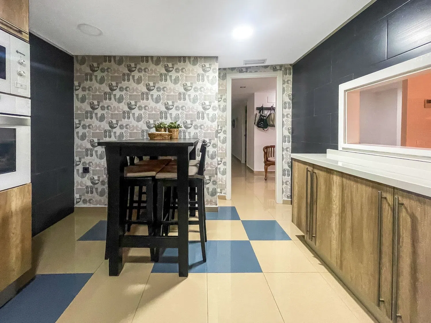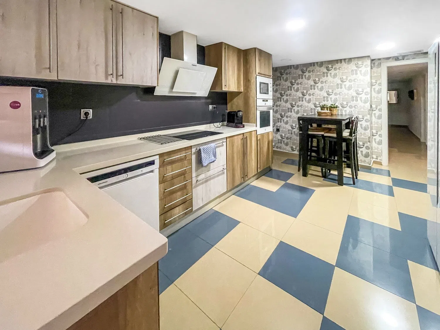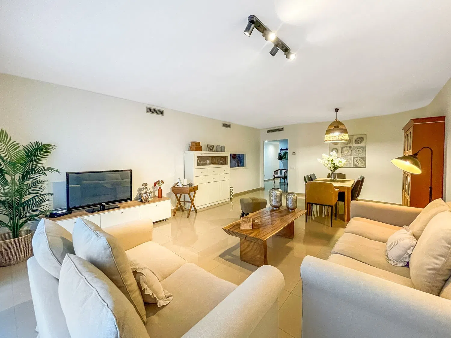 Квартира выделяется своей площадью, отличной солнечной ориентацией и изобилием естественного света. При входе вас встречает прихожая, ведущая в большой светлый зал с выходом на частную террасу — идеальное место для отдыха и наслаждения средиземноморским климатом. Кухня отдельная, оборудована высококачественной техникой и уютным обеденным уголком, где можно наслаждаться утренним кофе, также с выходом на террасу.