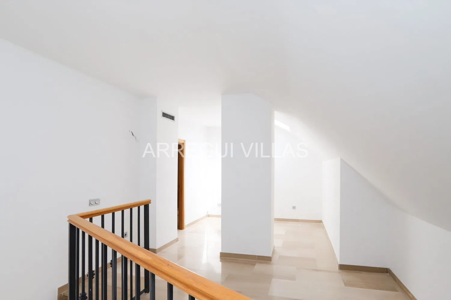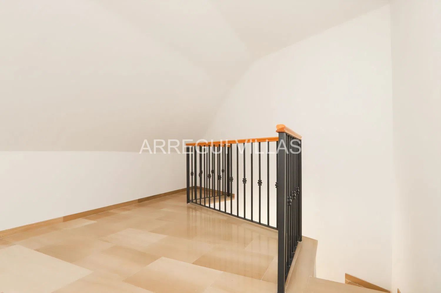 На верхнем уровне, к которому ведут мраморные лестницы, расположена мансарда с спальней и ванной комнатой с ванной.
