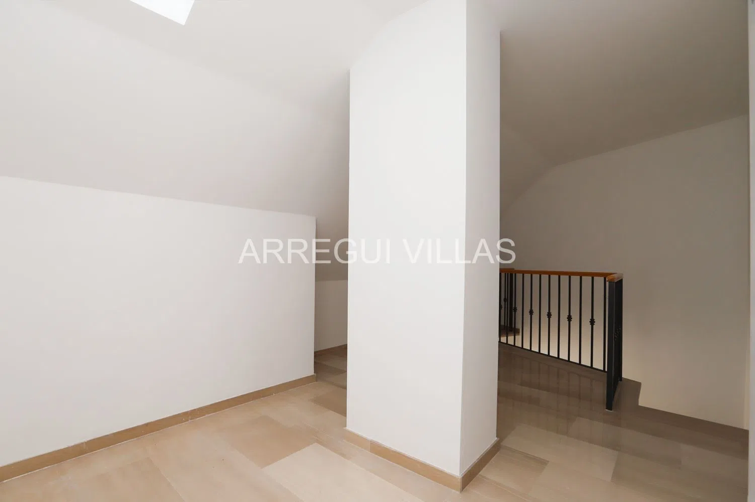 Внутреннее оборудование включает натуральные мраморные полы, алюминиевые окна с двойным остеклением, предустановку для радиаторов, систему кондиционирования, встроенные шкафы, бронированную дверь и газовый котел для горячей воды. Комплекс предлагает обширные зеленые зоны, общую бассейну, детскую площадку и корты для падел.