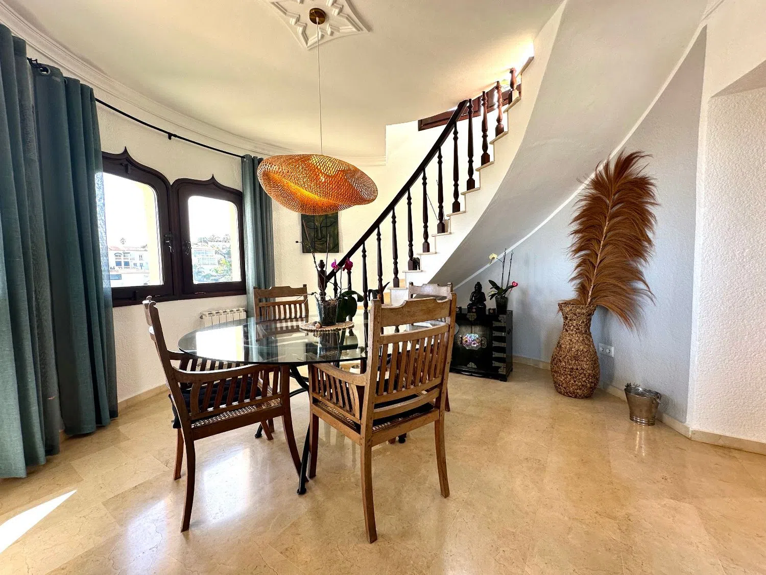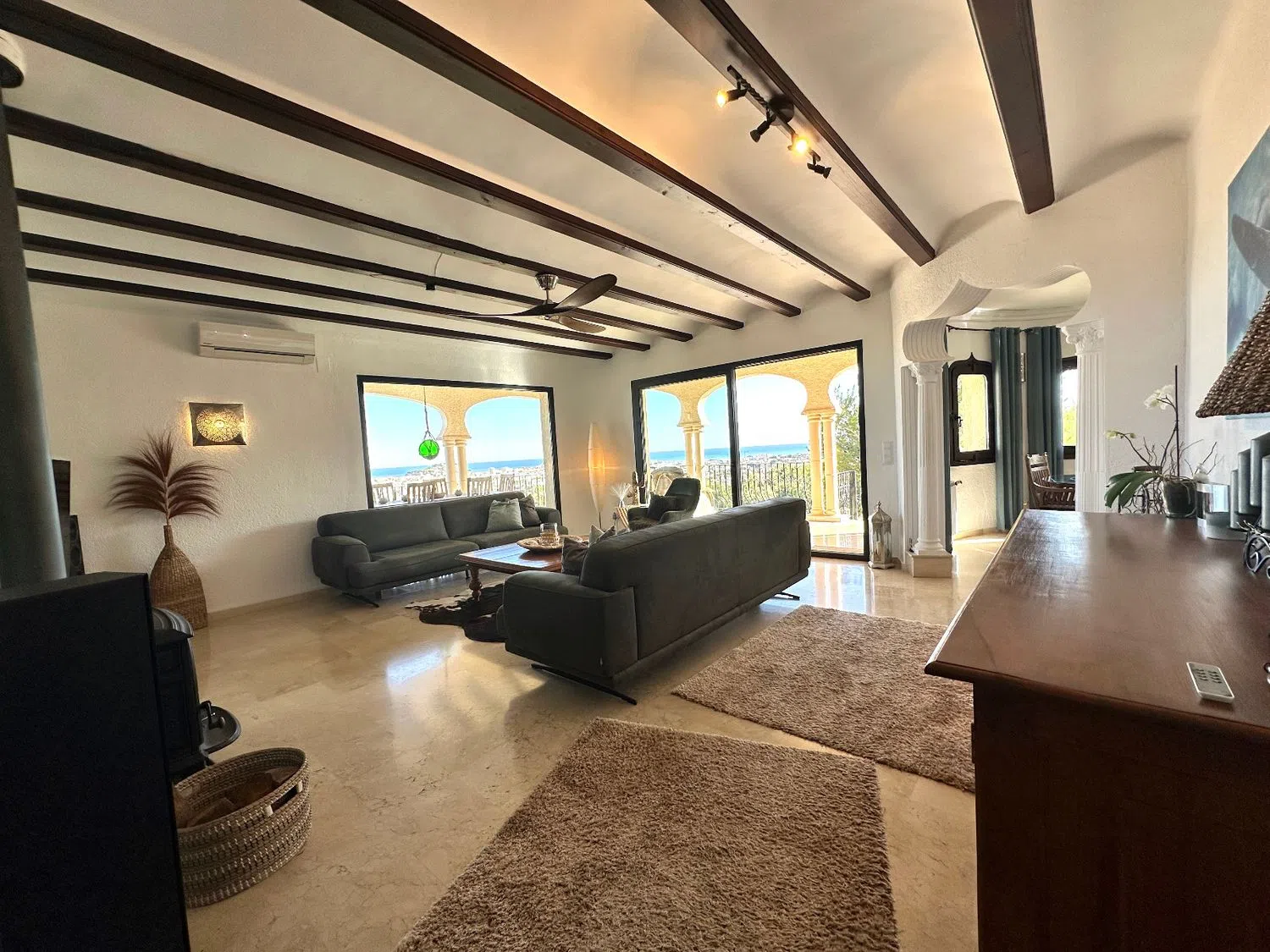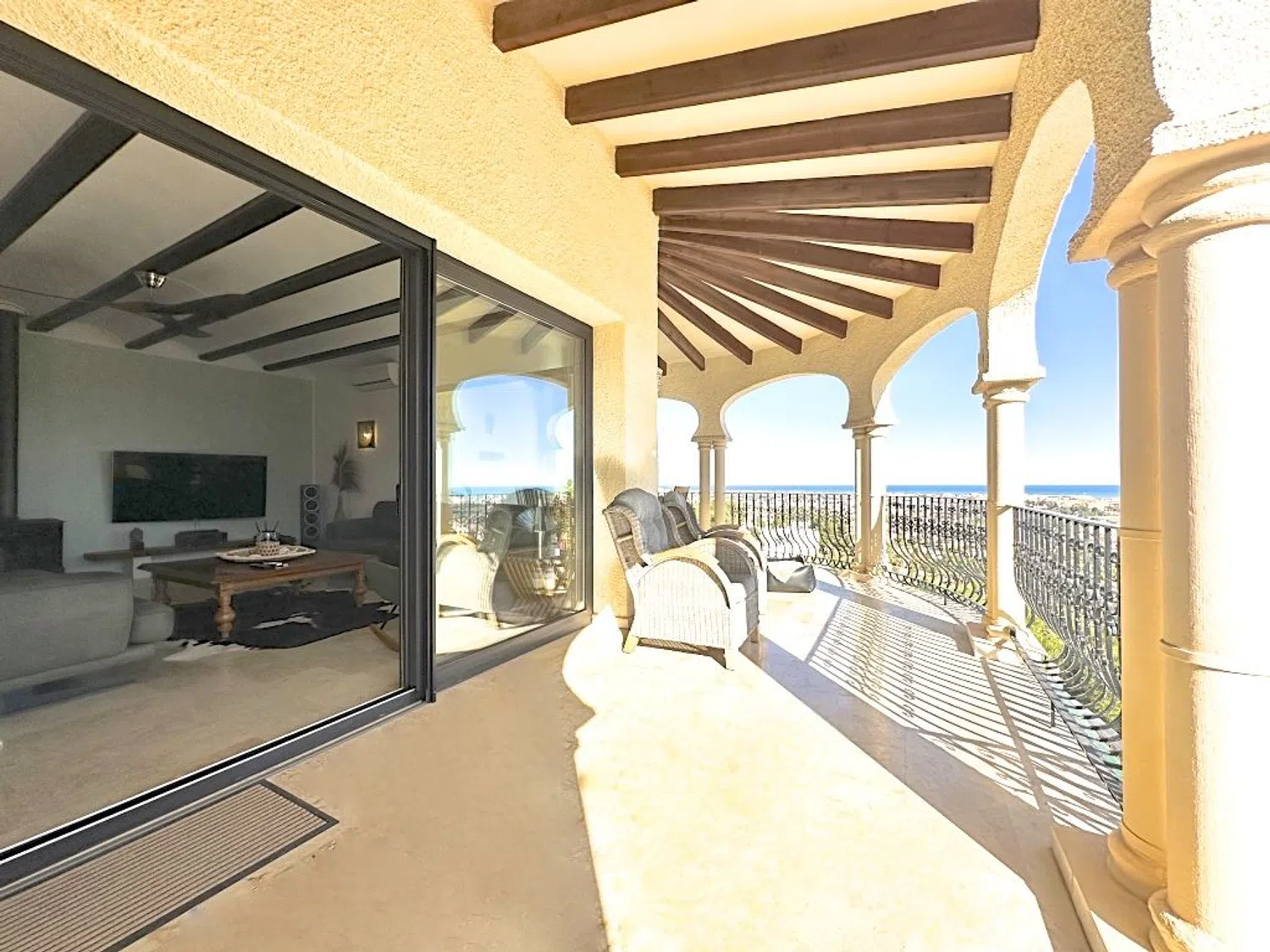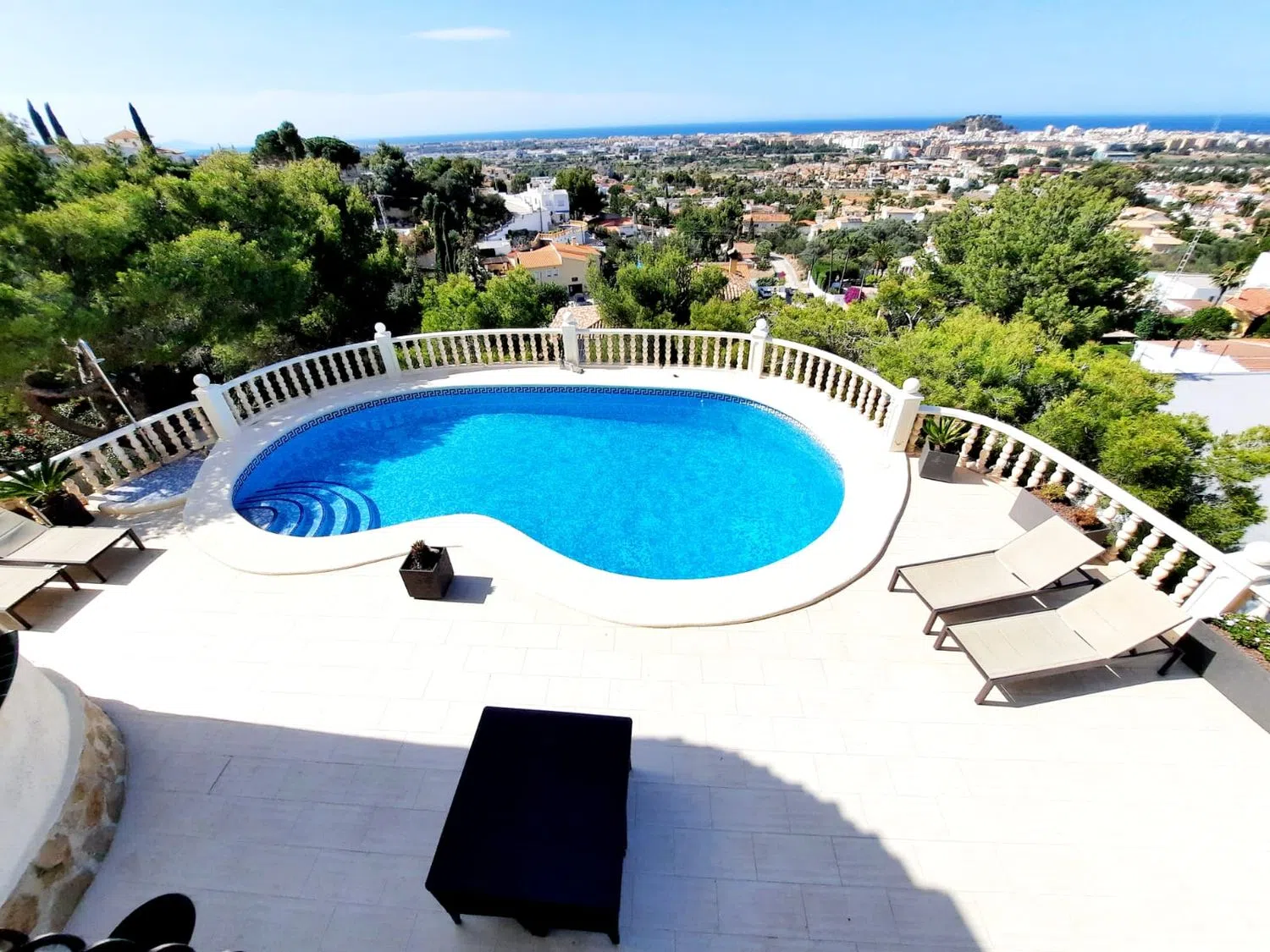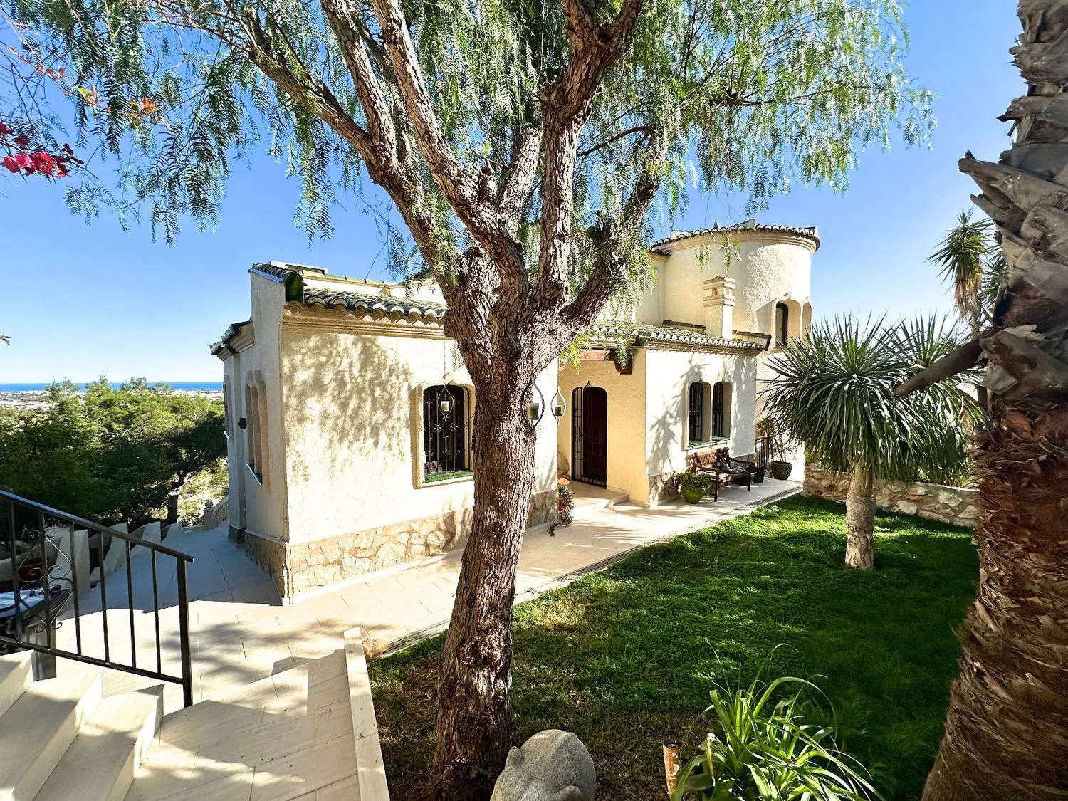 Вилла была построена в типичном испанском стиле и идеально вписывается в окружающий пейзаж. Благодаря своему особому местоположению, солнечному в течение всего года и расположению в одном из самых престижных районов, открывается потрясающий вид на море, горы и живописное село с его арабским замком. Днем Средиземное море сверкает глубокими синими оттенками, а ночью поселок укутан морем огней. Вилла впечатляет не только своей панорамной и беспрепятственной видимостью, но и абсолютной приватностью.