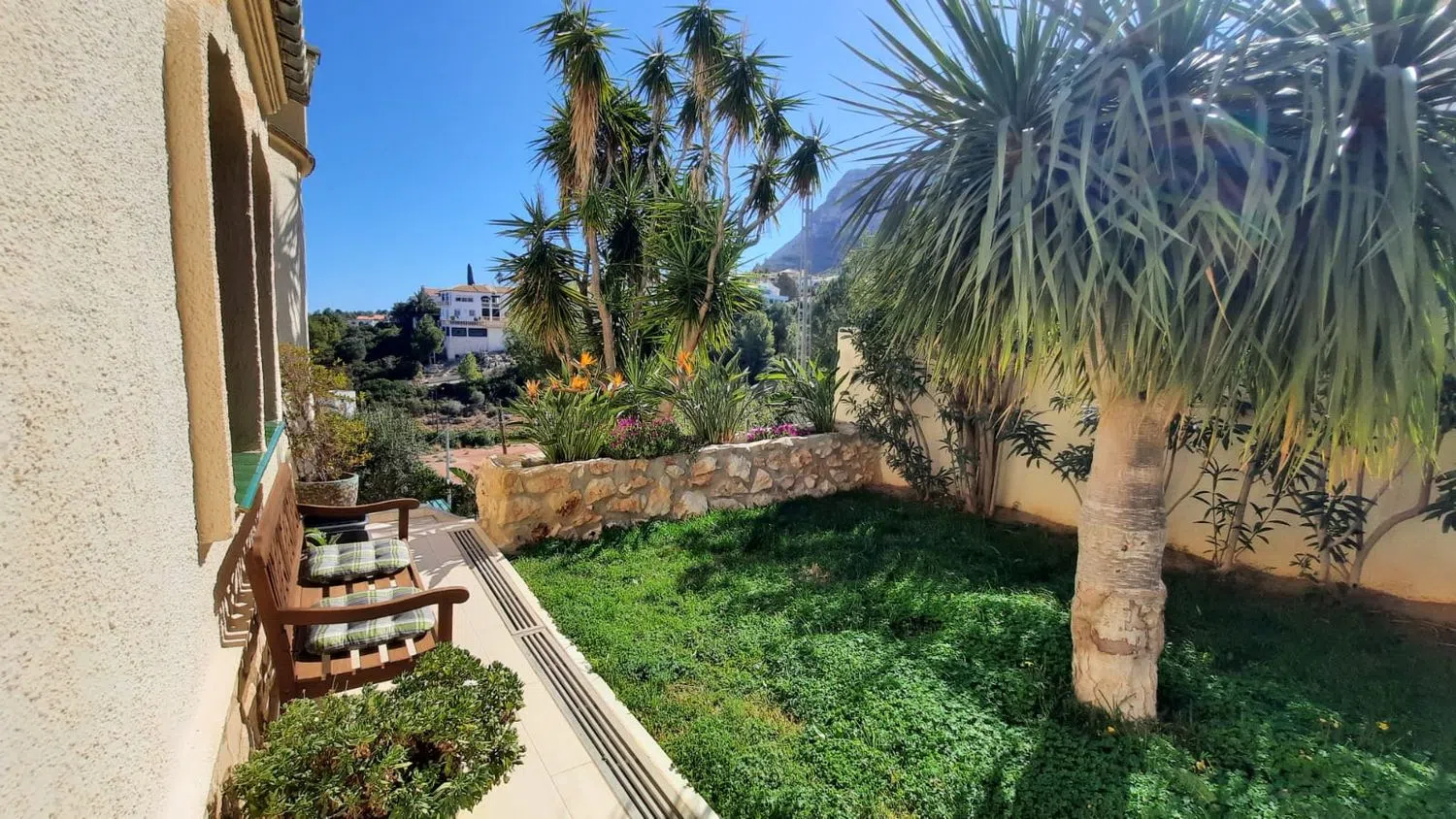Расположенная на трех этажах с общей площадью примерно 355 м², вилла включает в себя семь спален и шесть ванных комнат, все из которых были обновлены. Просторный участок площадью около 1.140 м² оформлен в средиземноморском стиле и включает в себя 200-летний оливковый树, цитрусовые деревья, пальмы и кусты рододендрона. Просторный гараж площадью 40 м² с электрическими рулонными воротами защитит ваш автомобиль от солнца и дождя.