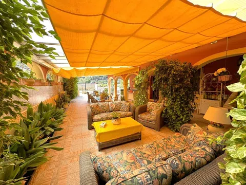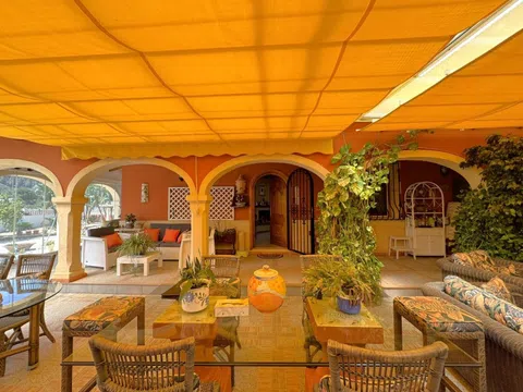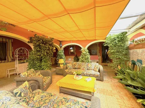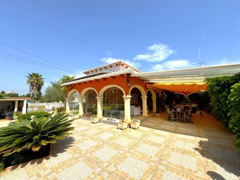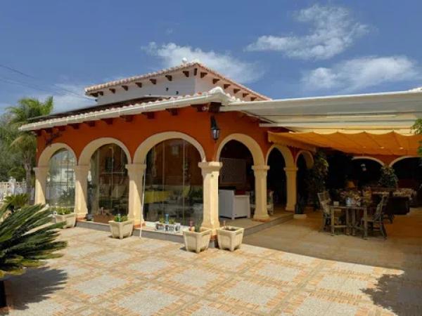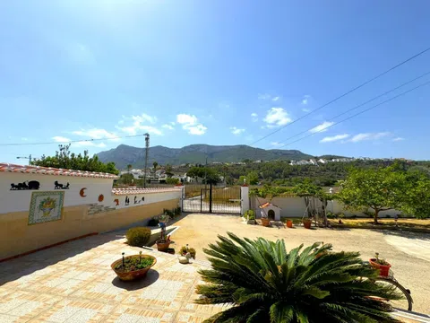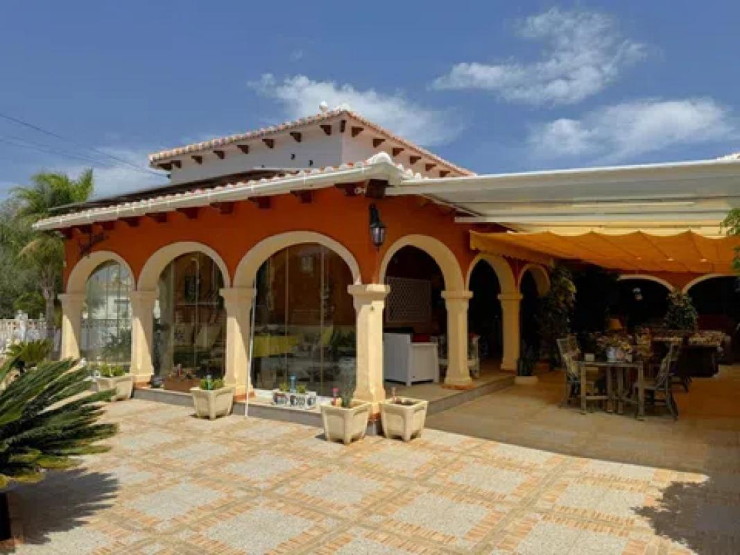 Afin se complace en poner a la venta este magnífico chalet independiente soleado y tranquilo, a menos de un km del centro y dos de las playas. Muy bien situado y con parcela de 1282m2. La vivienda principal (187m2 útiles) tiene gran salón comedor, cocina independiente muy amplia, 2 dormitorios dobles, 1 baño independiente y otro en suite. El apartamento independiente (3er y 4to dormitorio con ducha) hacen 48m2 útiles. Es una casa construida en el 2001 muy bien mantenida y actualizada con duchas reformadas, aire acondicionado, hogar de leña, radiadores de gasóleo en toda la casa, paneles fotovoltaicos que convierten esta vivienda en una opción sostenible y respetuosa con el medio ambiente, pozo propio (agua por pozo, no tiene conexión a la red principal), gran garaje en sótano para varios vehículos si fuese necesario, con gran despensa/ trastero y bodega. El garaje tiene a su vez la función de lavadero. La terraza acristalada de la casa tiene una superficie de 75m2 toda ella cubierta y empisada. Anejo a la casa tenemos un parking de obra cubierto convertible fácilmente a garaje cerrado en superficie, una acogedora casita independiente ideal para reuniones y comidas al aire libre, una bonita fuente con pequeño estanque y una piscina construida especialmente para los niños por su poca profundidad. La parcela también ofrece una gran zona de huerto y gallinas. En definitiva, un IMPRESIONANTE chalet individual en una exclusiva zona residencial rodeada de vegetación y naturaleza, situada a solo 5 minutos en coche del centro de Dénia. SE VENDE CON TODO EL MOBILIARIO! Recomendamos la visita.