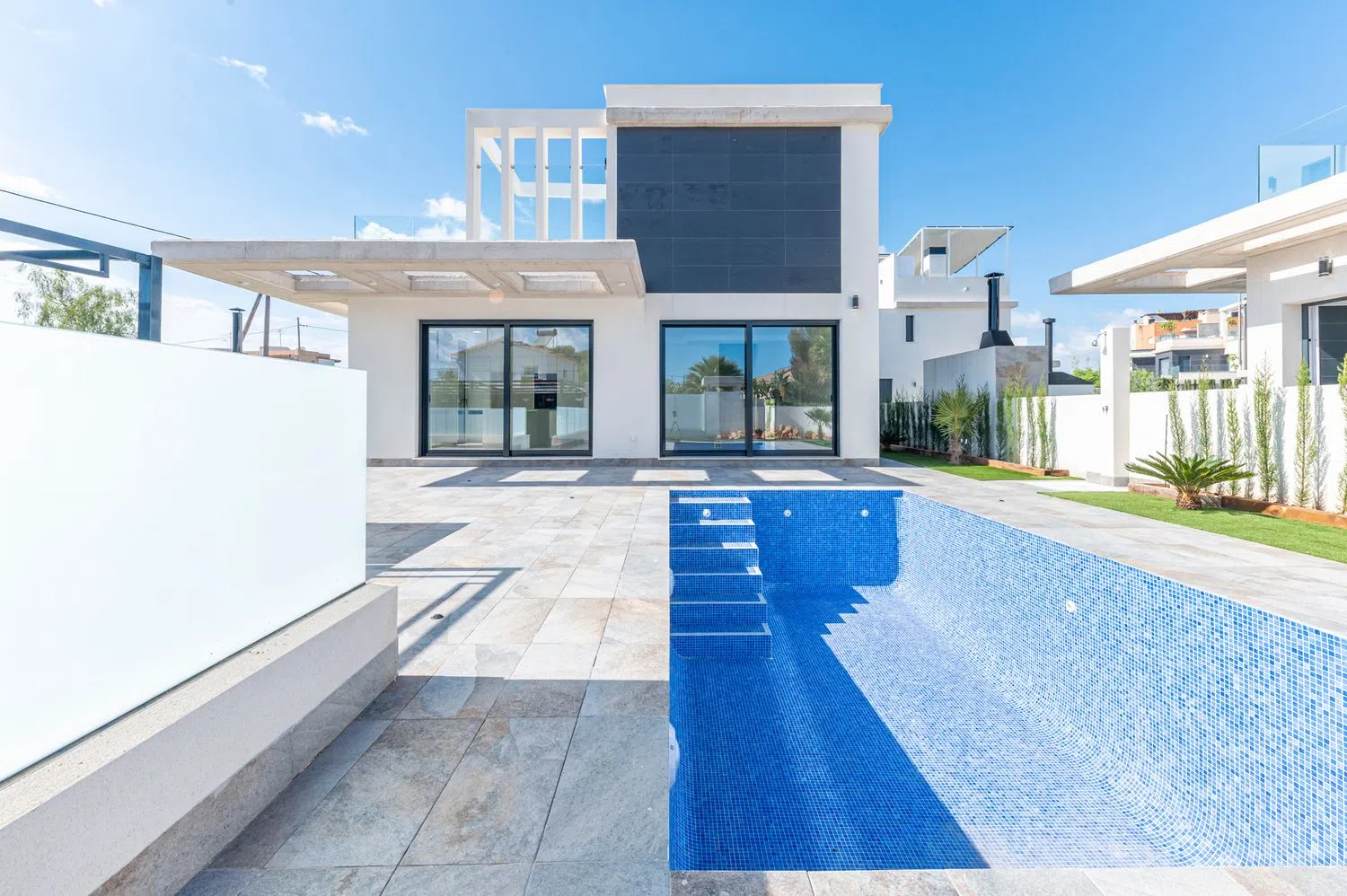 Представляем великолепную виллу площадью 260 м² на участке 485 м², идеально подходящую для наслаждения средиземноморским климатом и всеми удобствами. Вилла оснащена бассейном и солнечной террасой площадью 57 м², а также обладает современным дизайном и отделкой высокого качества.