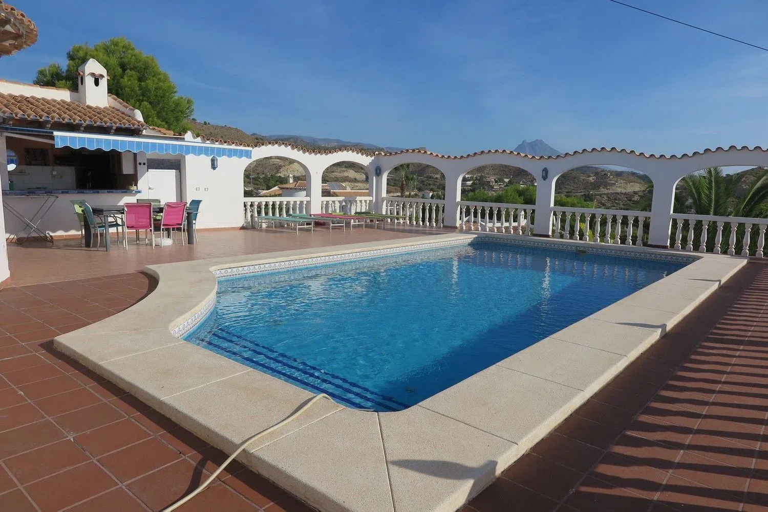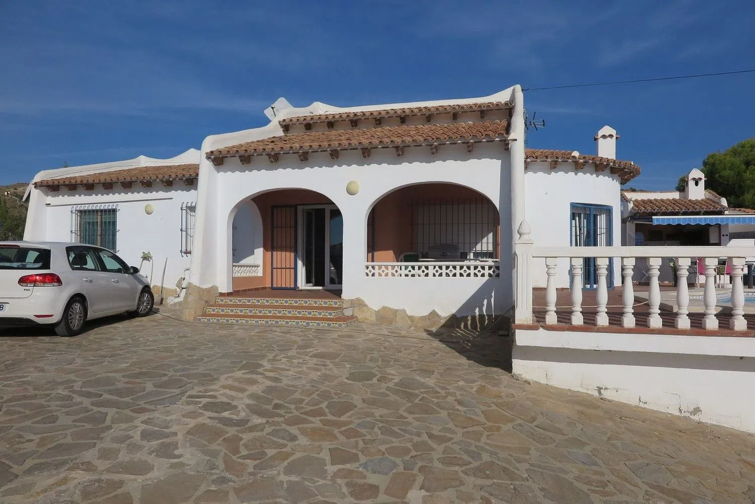 Уникальная вилла с потрясающим видом на море. Внутри находятся три просторные спальни с встроенными шкафами, два современных ванных комнаты и полностью оборудованная кухня. Большая гостиная открывается на великолепную патио с бассейном размером 10x5 метров, откуда открываются захватывающие виды. На нижнем уровне располагается гараж и обширная открытая зона, которую можно без труда превратить в отдельную квартиру.