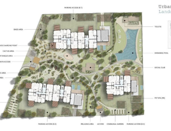 Здесь можно собраться с близкими в социальных клубах, отдохнуть на солнечных площадках и насладиться прохладными уголками, где густая растительность способствует свежему воздуху. Также предусмотрено множество широких бассейнов, сенсорные сады, площади для занятий йогой, огороды для самообеспечения, а также мастерские по ремонту велосипедов и зоны для стирки домашних животных.