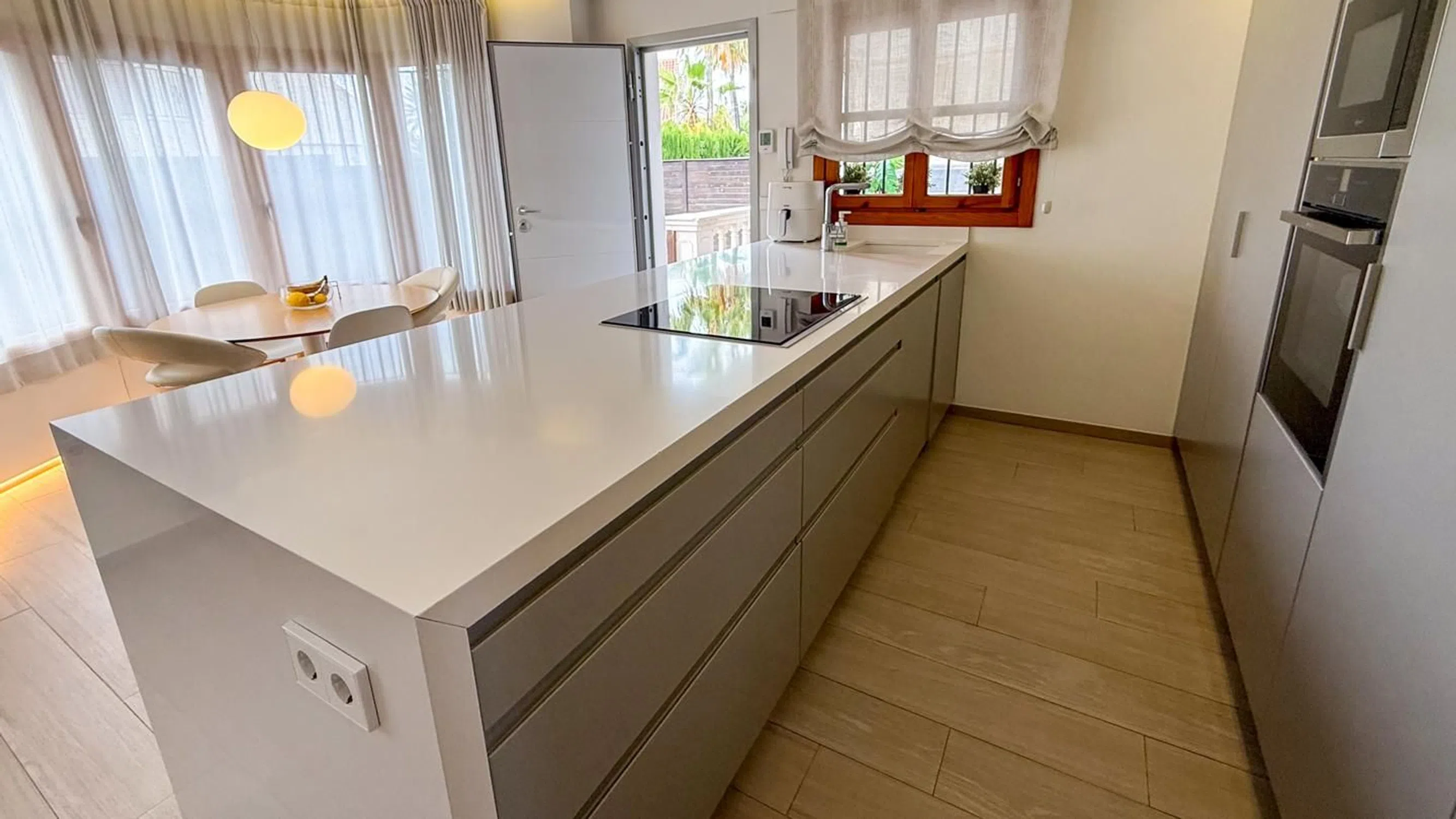 Moderna villa semi-adosada en Valverde, Elche — lista para entrar a vivir Te presentamos esta espectacular villa semi-adosada en Valverde, una de las zonas residenciales más cotizadas de Elche. Situada a tan solo 15 minutos de las playas de Santa Pola y con todos los servicios esenciales cerca, esta propiedad combina a la perfección tranquilidad, comodidad y calidad de vida. Totalmente reformada hace solo tres años, esta vivienda ofrece un diseño contemporáneo y funcional, adaptado a las necesidades actuales. Se distribuye en tres plantas, cada una pensada para maximizar el confort, la luz natural y el aprovechamiento del espacio. Planta baja: amplitud y estilo Al entrar, te recibe un espacioso salón con una atmósfera cálida y elegante, ideal tanto para relajarte como para disfrutar en familia. La cocina, integrada y de diseño moderno, está equipada con electrodomésticos de alta gama y materiales de primera calidad. Un baño completo en esta planta añade un plus de funcionalidad. Planta primera: descanso con privacidad La zona de noche se encuentra en la primera planta. El dormitorio principal es una verdadera suite privada, con baño propio y un amplio vestidor. La segunda habitación también es muy luminosa y dispone de un baño independiente, perfecta para familiares o visitas. Sótano: versatilidad extra La planta sótano ofrece múltiples posibilidades. Aquí encontrarás una acogedora bodega y dos estancias adicionales completamente equipadas, ideales como dormitorios, oficina, zona de juegos o espacio de ocio según tus necesidades. Comodidades para todo el año La vivienda dispone de aire acondicionado en todas las plantas y un sistema de calefacción eficiente, lo que garantiza el máximo confort tanto en verano como en invierno. Ubicación privilegiada Valverde es una zona residencial muy demandada por su excelente calidad de vida, rodeada de naturaleza y con todos los servicios cerca: colegios, supermercados, restaurantes, zonas verdes y mucho más. Además, la conexión con la costa es rápida y cómoda, haciendo de esta villa una opción perfecta tanto como residencia habitual como casa de vacaciones. Una propiedad lista para entrar a vivir, que combina diseño moderno, amplios espacios y una ubicación inmejorable. Si buscas una vivienda funcional, elegante y bien ubicada en Elche, esta villa en Valverde es tu oportunidad.