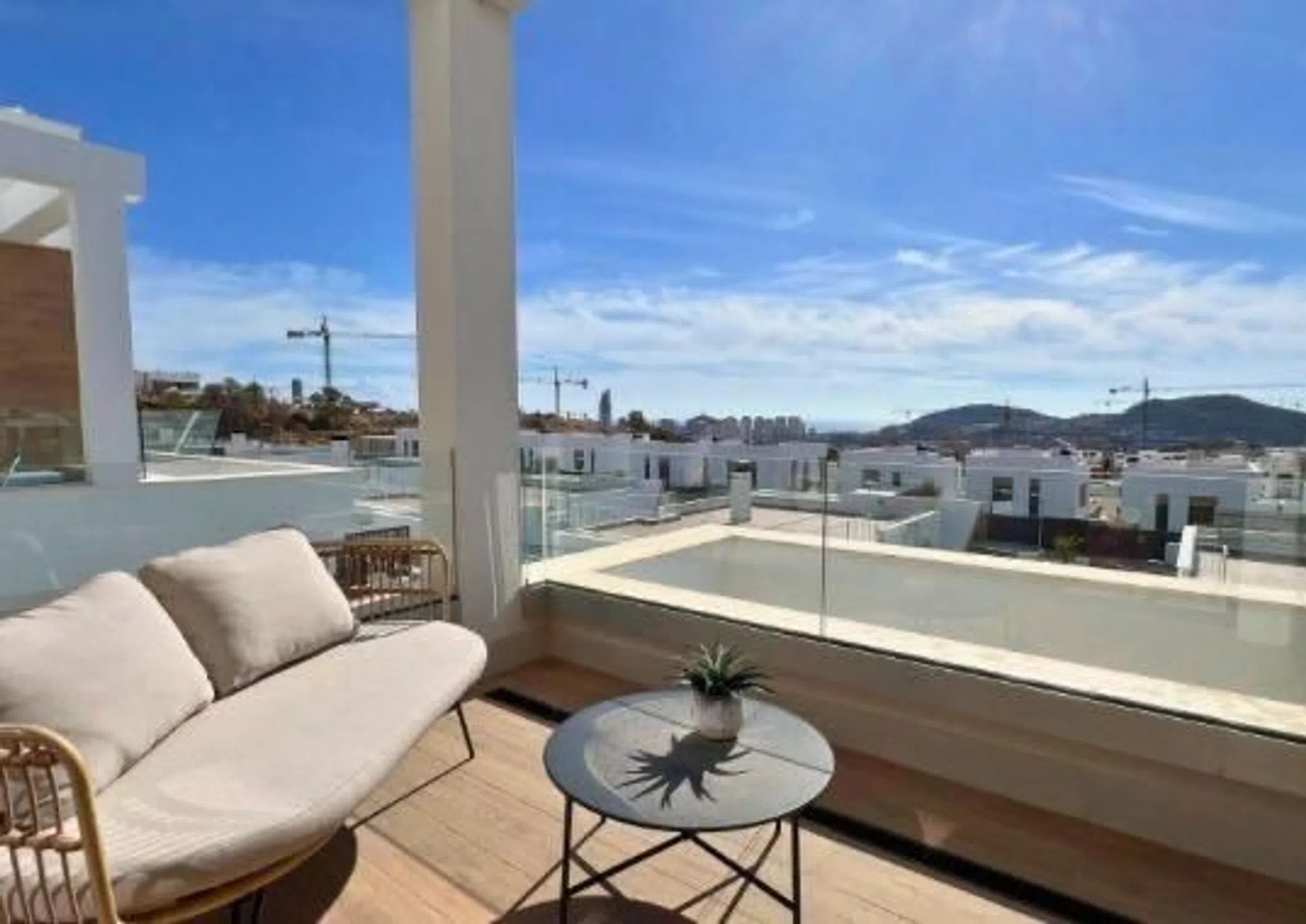 Una Villa Moderna en Finestrat con vistas a la ciudad de Benidorm, mar y montaña. Diseño, funcionalidad y entorno privilegiado en la Costa Blanca Descubre qué hace única a esta vivienda: * Ubicación inmejorable Situada en la codiciada urbanización Balcón de Finestrat, esta villa se encuentra cerca de campos de golf, playas, colegios y del centro comercial La Marina. Un entorno tranquilo, con excelente conexión y todos los servicios a pocos minutos. * Diseño compacto y funcional Con 150 m² construidos sobre una parcela de 261 m², esta propiedad destaca por su óptimo aprovechamiento del espacio, ofreciendo ambientes luminosos, confortables y muy bien distribuidos. * Zona exterior pensada para el disfrute Cuenta con piscina privada y un jardín cuidado al detalle, creando un entorno perfecto para disfrutar del sol y del estilo de vida mediterráneo. Características principales •150 m² construidos •Parcela de 261 m² •3 dormitorios y 3 baños •Orientación sur •Construida en 2023 •Piscina privada y jardín •Calefacción central y A/C •Armarios empotrados.
