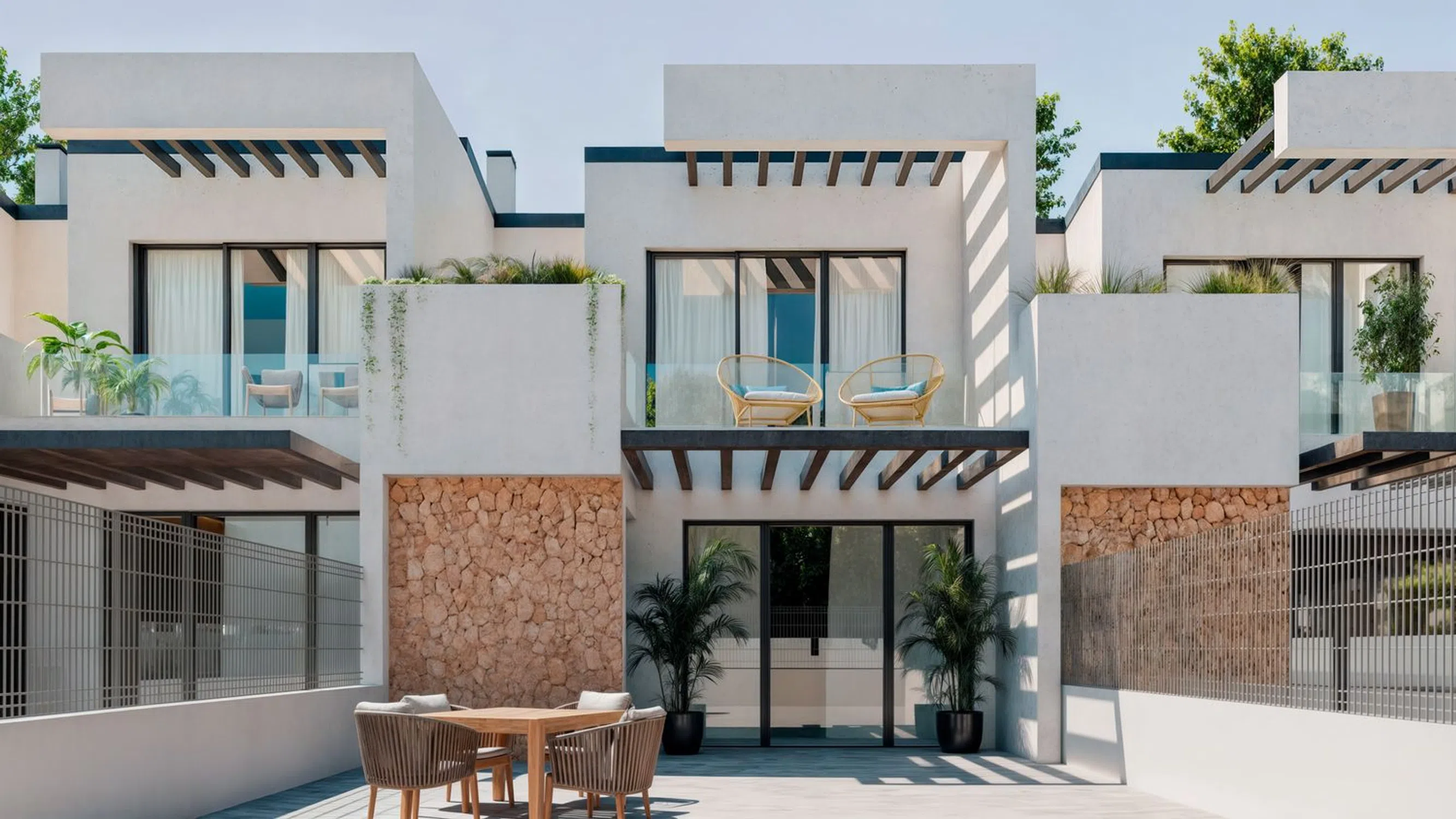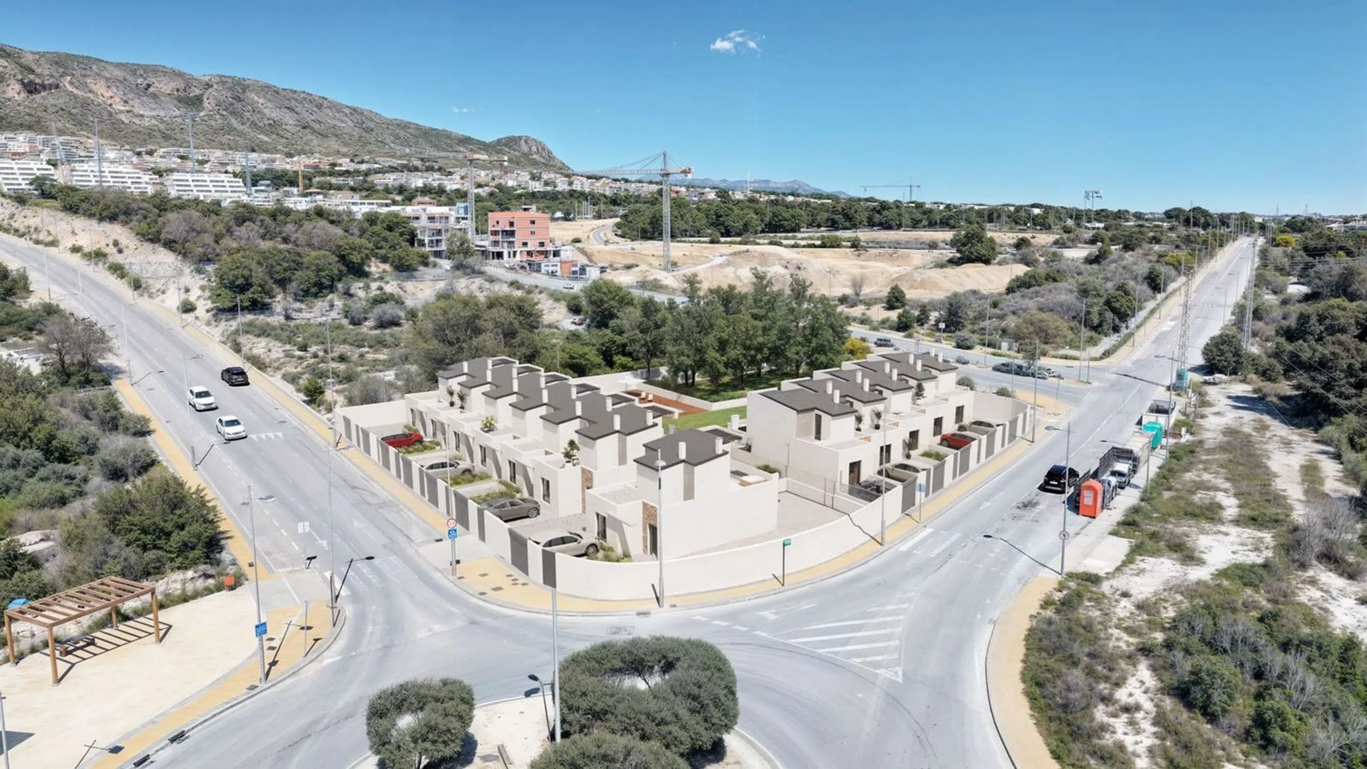 ¡Descubre tu nuevo hogar en la Costa Blanca! Inmokosta te presenta una exclusiva promoción de 13 viviendas unifamiliares en una de las zonas más cotizadas de Finestrat, en pleno corazón de la Costa Blanca. Se trata de modernas villas, tanto adosadas como independientes, construidas sobre parcelas que van desde 136 m² hasta 408 m². Viviendas pensadas para ofrecerte confort, estilo y calidad de vida. Las casas cuentan con superficies construidas entre 82 m² y 114 m², distribuidas en dos plantas. Además, disponemos de una vivienda independiente en una sola planta, con 3 amplios dormitorios, ideal para quienes buscan comodidad sin escaleras. Distribución pensada para tu bienestar: Planta principal: amplio salón independiente, cocina totalmente equipada con lavadero, aseo de cortesía y un dormitorio. Primera planta: dormitorio principal con baño en suite, vestidor y una agradable terraza privada. Planta superior: terraza solárium Calidades excepcionales: Aire acondicionado por conductos en toda la vivienda. Suelos, baños y cocina revestidos con cerámicos de primera calidad. Carpintería exterior de PVC con rotura de puente térmico, triple acristalamiento y ventanas oscilobatientes. Carpintería interior lacada en blanco y rodapiés a juego. Cocinas completamente amuebladas y listas para usar. Espacios exteriores para disfrutar: Cada vivienda dispone de jardín privado, terraza con acceso directo desde la planta baja y zona de aparcamiento dentro de la parcela con puerta motorizada y apertura a distancia. Además, la urbanización contará con una zona comunitaria con piscina, perfecta para relajarse y disfrutar del buen clima durante todo el año. Entrega estimada: Primer trimestre de 2027 ¡Solicita información hoy mismo sobre precios y disponibilidad! No pierdas la oportunidad de vivir en un entorno privilegiado con todas las comodidades.