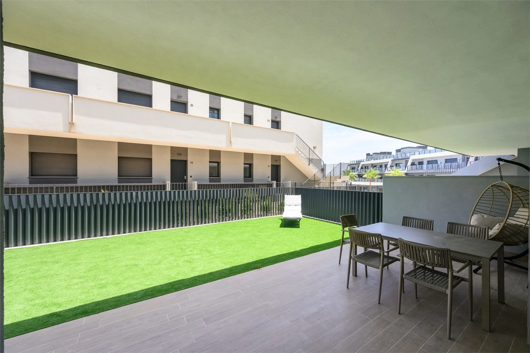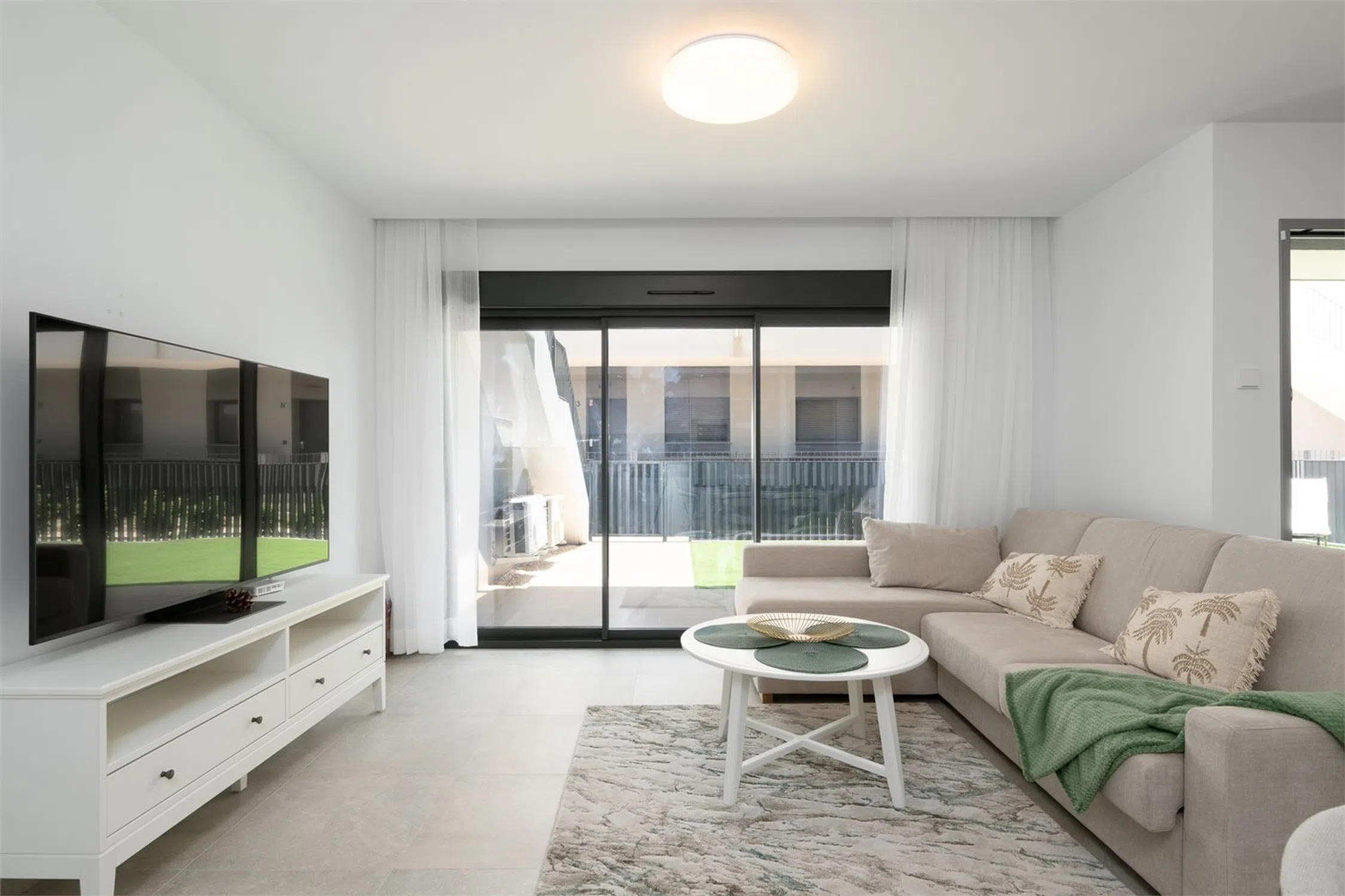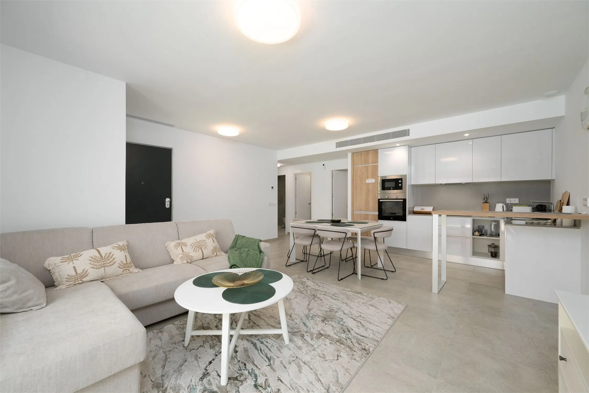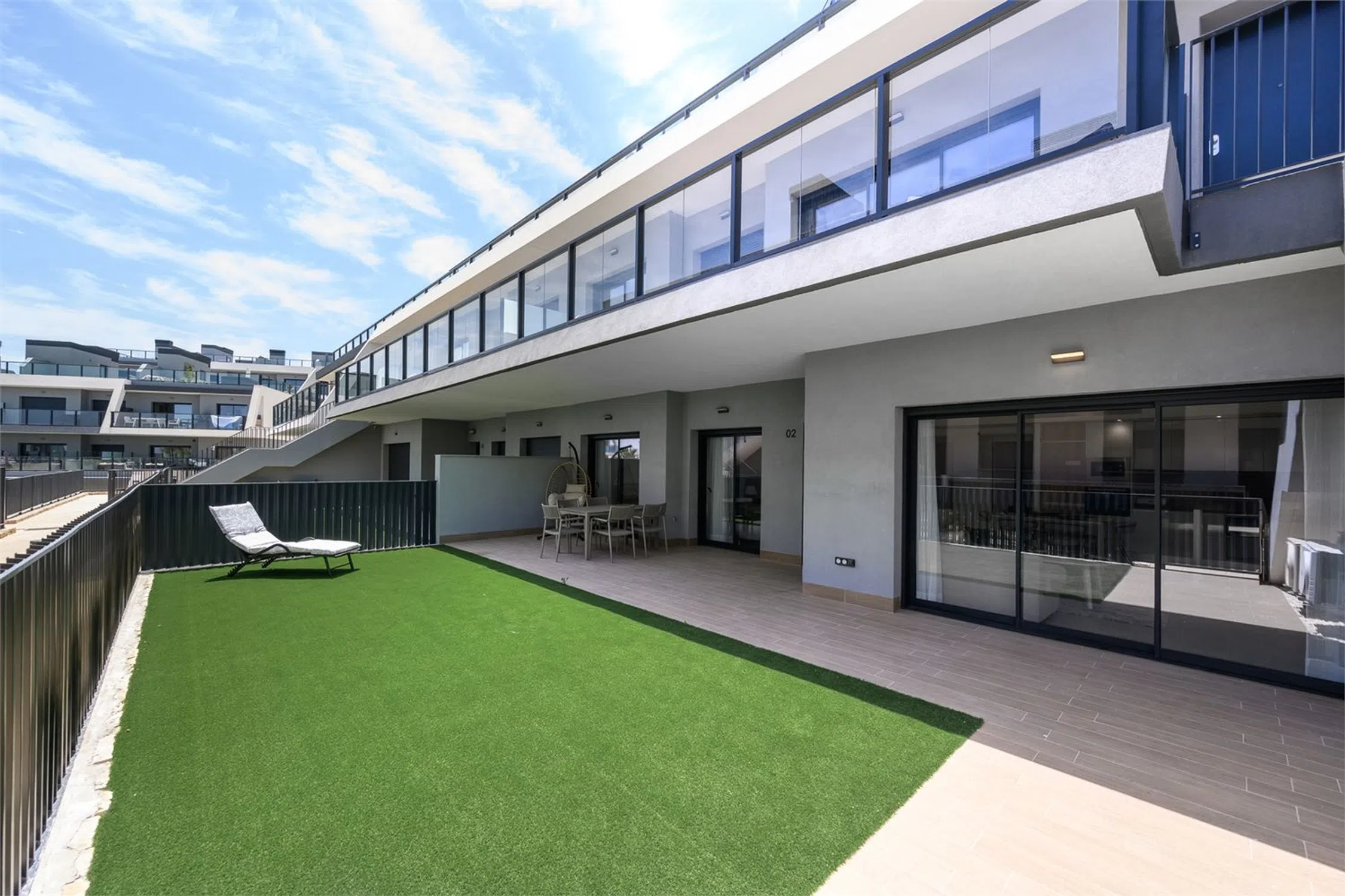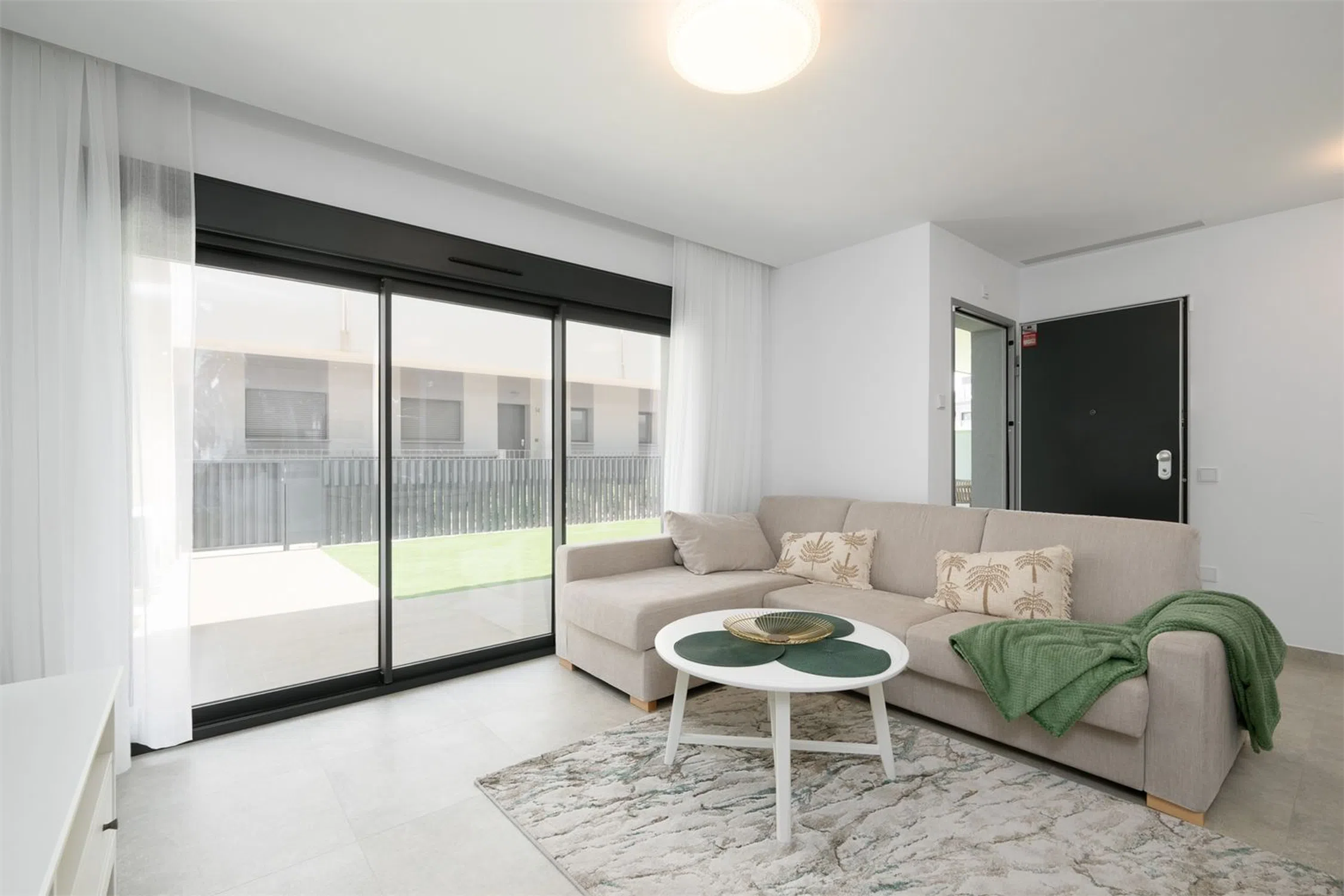 Vivienda con estilo y gran terraza! Te presentamos esta luminosa y moderna vivienda de casi obra nueva, diseñada con un estilo contemporáneo y espacios abiertos que invitan al confort y la funcionalidad. Cuenta con dos amplios dormitorios, ambos con acceso directo a una impresionante terraza de 70 m², perfecta para disfrutar del aire libre. El dormitorio principal destaca por disponer de un baño en suite y un vestidor privado, ofreciendo un espacio íntimo y bien aprovechado. El segundo baño completo aporta comodidad adicional para invitados o el segundo dormitorio. El corazón de la vivienda es su salón-comedor con cocina abierta, un ambiente diáfano que favorece la entrada de luz natural y la conexión entre espacios. La cocina, moderna y totalmente equipada, se integra perfectamente con la zona de estar, ideal tanto para el día a día como para reuniones con familia o amigos. Además, la propiedad incluye un amplio trastero y una zona de lavandería independiente, que aportan funcionalidad y orden. Ubicada a tan solo 10 metros de la piscina comunitaria, esta vivienda combina diseño, confort y calidad de vida en una ubicación inmejorable. Cocina: Cocina abierta al salón, con abundante espacio de almacenamiento y encimera de Silestone. La cocina incluye electrodomésticos como placa eléctrica, campana extractora y horno. Salón: Amplio salón con salida directa al jardín/terraza y zonas de fácil distribución para el mobiliario. Dormitorio principal: El dormitorio principal tiene salida directa a la terraza/jardín, además de baño en suite y vestidor (walk-in closet). Dormitorio 2: El segundo dormitorio cuenta con armario empotrado y salida a la terraza. Baños: Los baños están completamente alicatados y equipados con mampara de ducha, mueble de lavabo, espejo y WC. Otros: -Aire acondicionado por conductos - Sistema de aerotermia - Ventilación automática - Persianas eléctricas con bloqueo de seguridad.