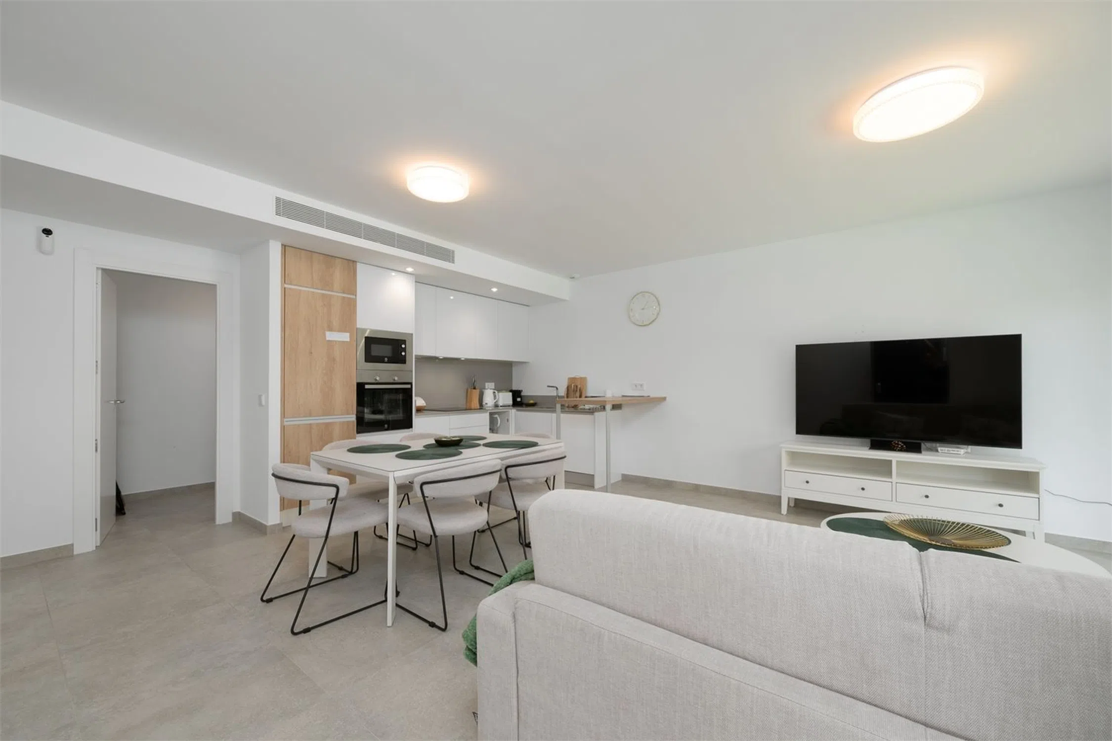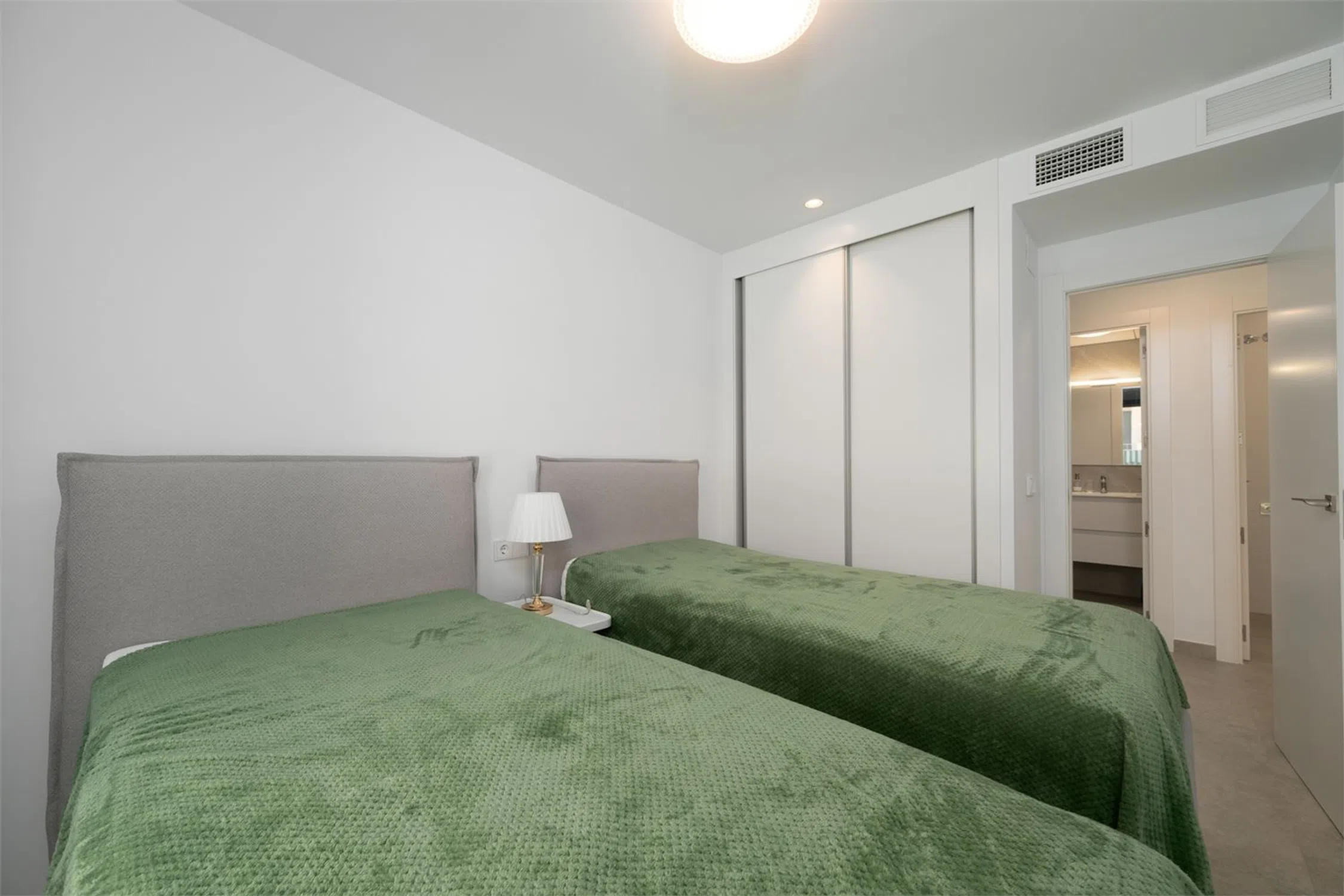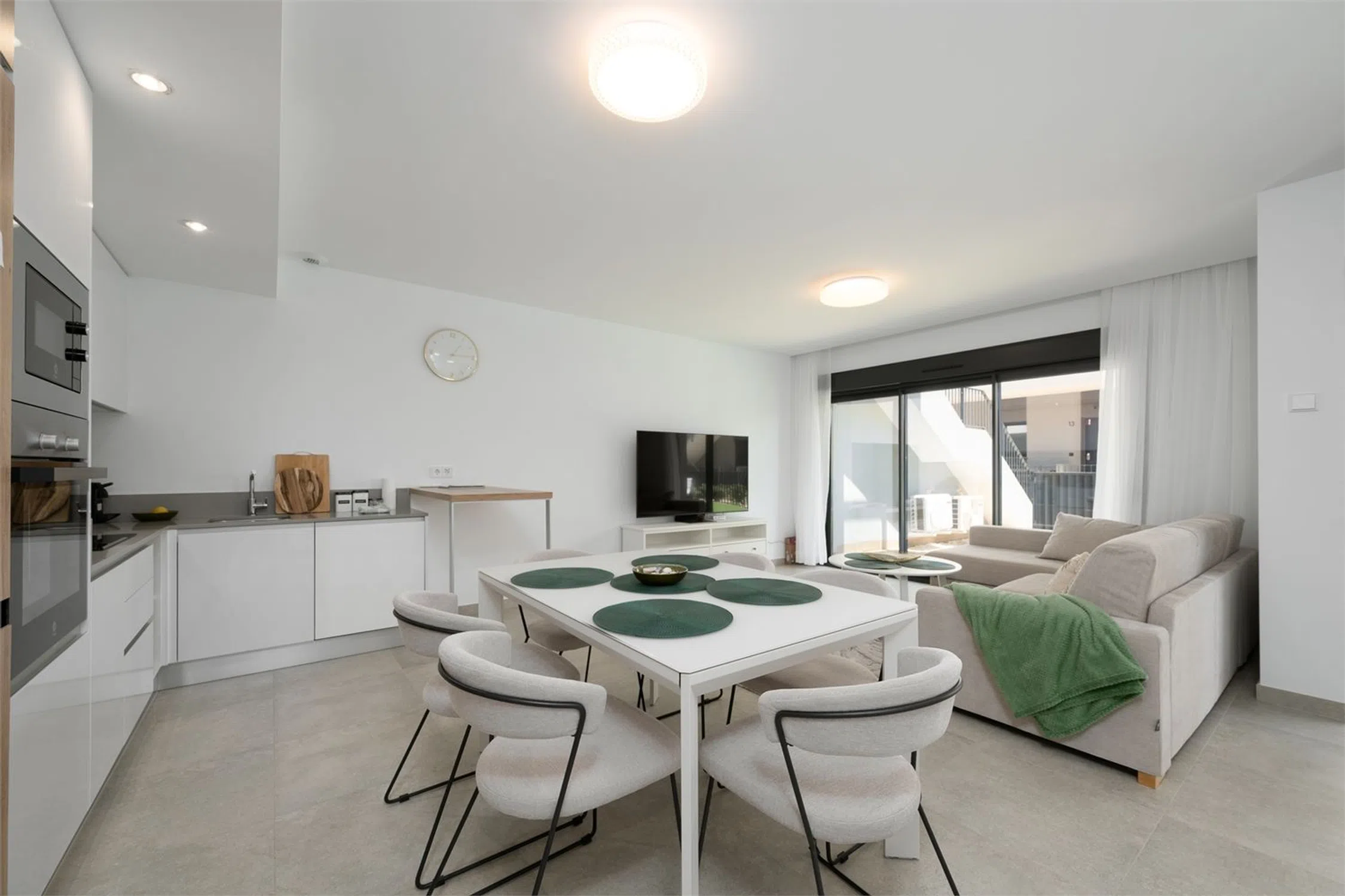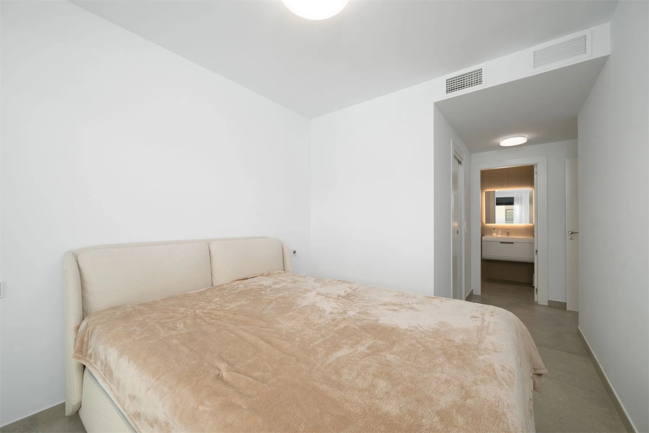 Vivienda con estilo y gran terraza! Te presentamos esta luminosa y moderna vivienda de casi obra nueva, diseñada con un estilo contemporáneo y espacios abiertos que invitan al confort y la funcionalidad. Cuenta con dos amplios dormitorios, ambos con acceso directo a una impresionante terraza de 70 m², perfecta para disfrutar del aire libre. El dormitorio principal destaca por disponer de un baño en suite y un vestidor privado, ofreciendo un espacio íntimo y bien aprovechado. El segundo baño completo aporta comodidad adicional para invitados o el segundo dormitorio. El corazón de la vivienda es su salón-comedor con cocina abierta, un ambiente diáfano que favorece la entrada de luz natural y la conexión entre espacios. La cocina, moderna y totalmente equipada, se integra perfectamente con la zona de estar, ideal tanto para el día a día como para reuniones con familia o amigos. Además, la propiedad incluye un amplio trastero y una zona de lavandería independiente, que aportan funcionalidad y orden. Ubicada a tan solo 10 metros de la piscina comunitaria, esta vivienda combina diseño, confort y calidad de vida en una ubicación inmejorable. Cocina: Cocina abierta al salón, con abundante espacio de almacenamiento y encimera de Silestone. La cocina incluye electrodomésticos como placa eléctrica, campana extractora y horno. Salón: Amplio salón con salida directa al jardín/terraza y zonas de fácil distribución para el mobiliario. Dormitorio principal: El dormitorio principal tiene salida directa a la terraza/jardín, además de baño en suite y vestidor (walk-in closet). Dormitorio 2: El segundo dormitorio cuenta con armario empotrado y salida a la terraza. Baños: Los baños están completamente alicatados y equipados con mampara de ducha, mueble de lavabo, espejo y WC. Otros: -Aire acondicionado por conductos - Sistema de aerotermia - Ventilación automática - Persianas eléctricas con bloqueo de seguridad.