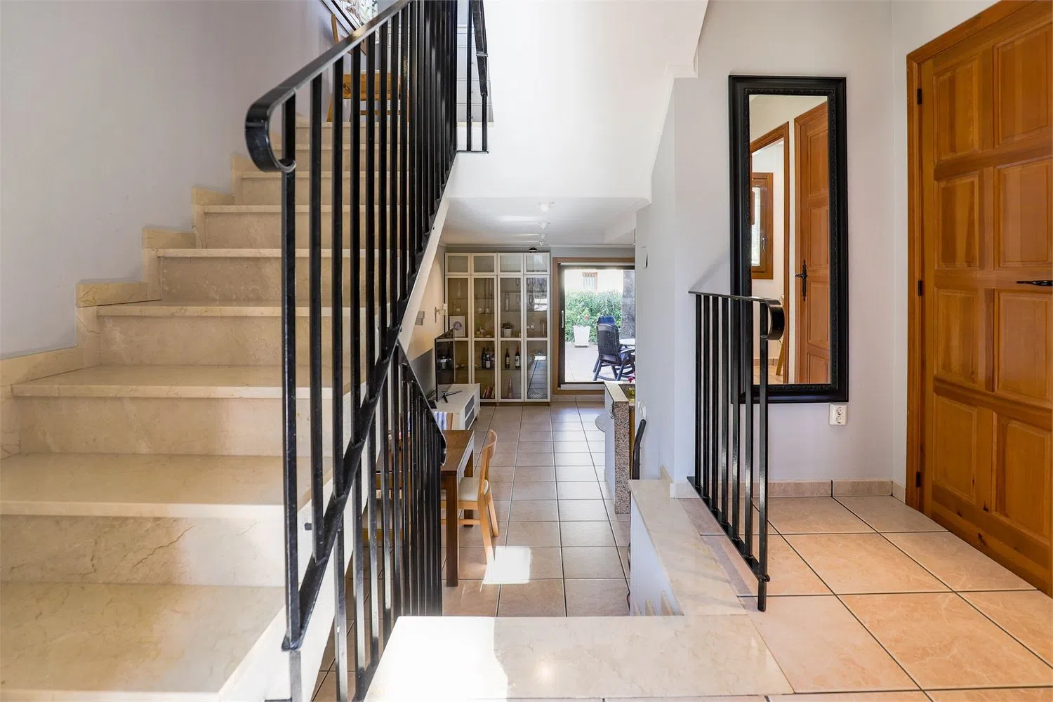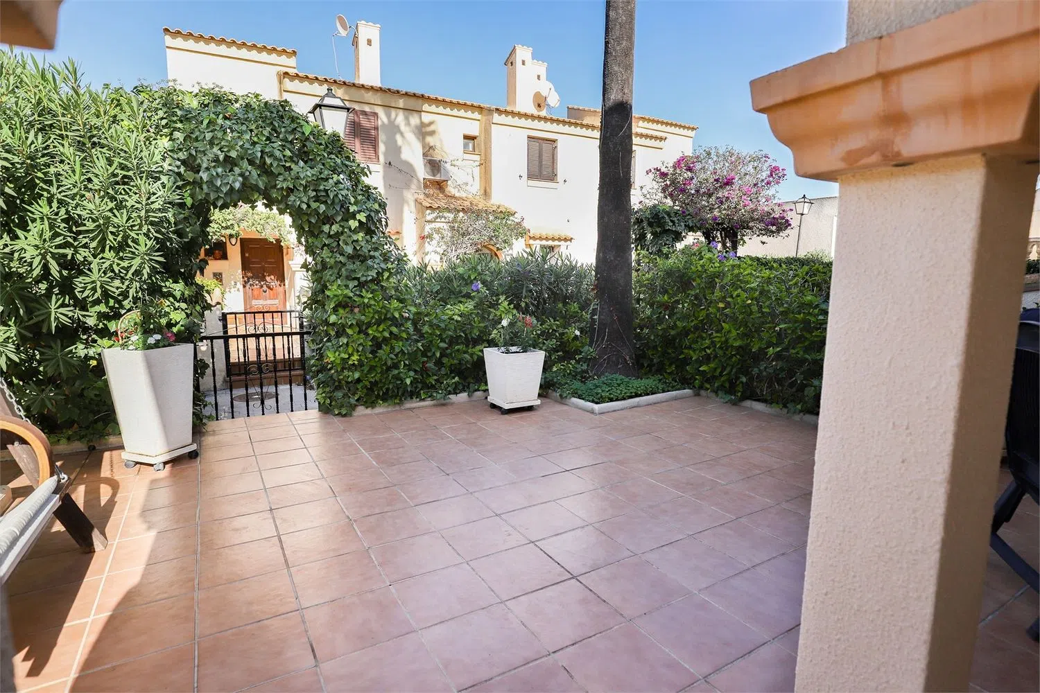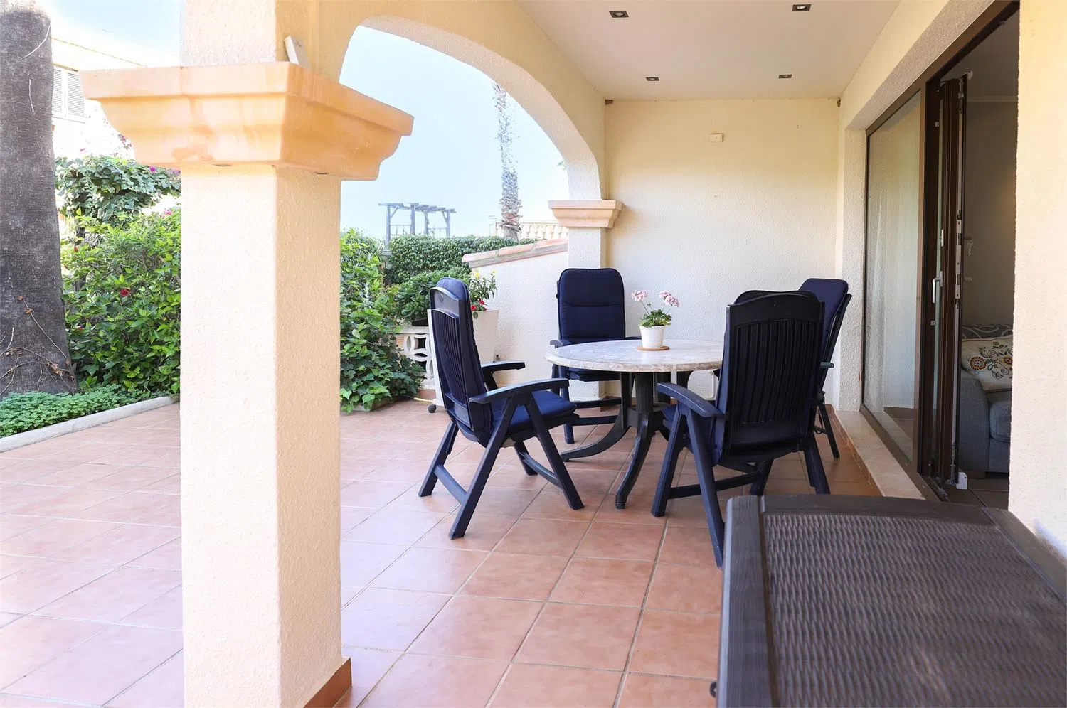 Терраса освещенная и просторная, с зоной для обедов на свежем воздухе, барбекю и шезлонгами. Полностью вымощенная и окруженная зеленью, она предлагает уединение от соседей и является идеальным местом для наслаждения тёплыми средиземноморскими вечерами.