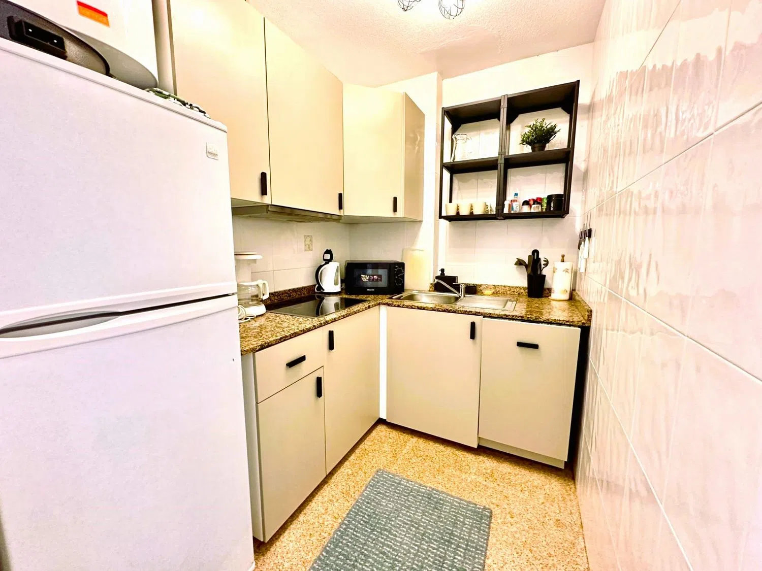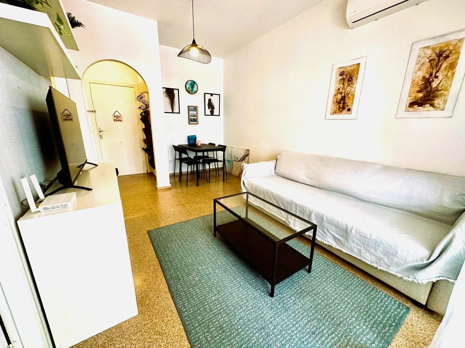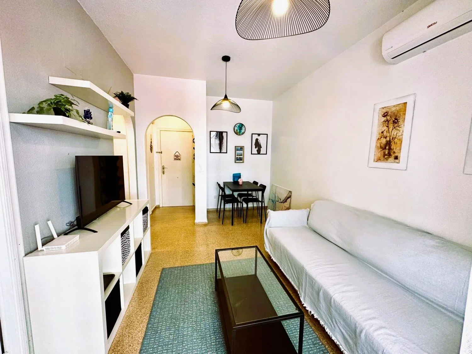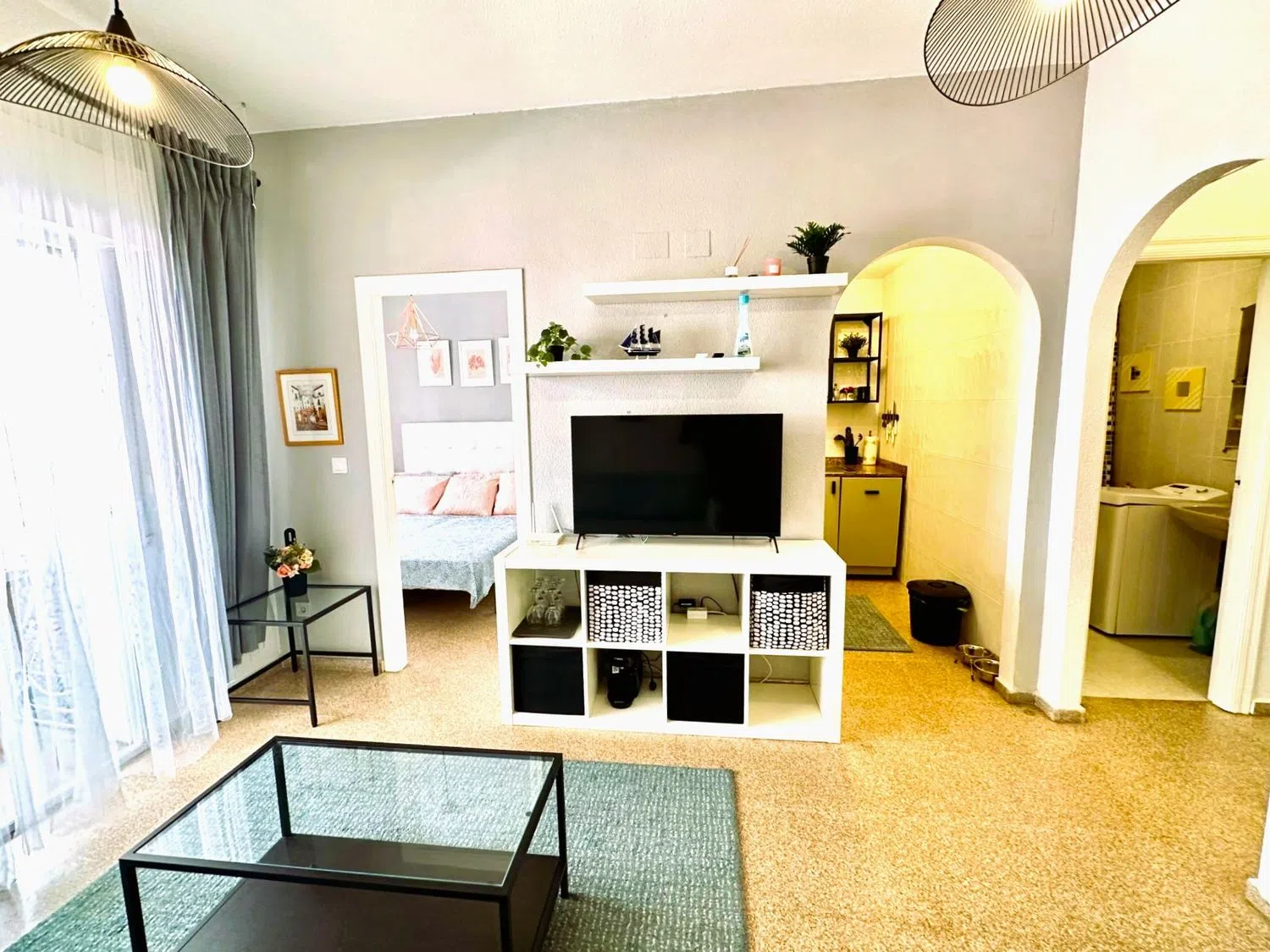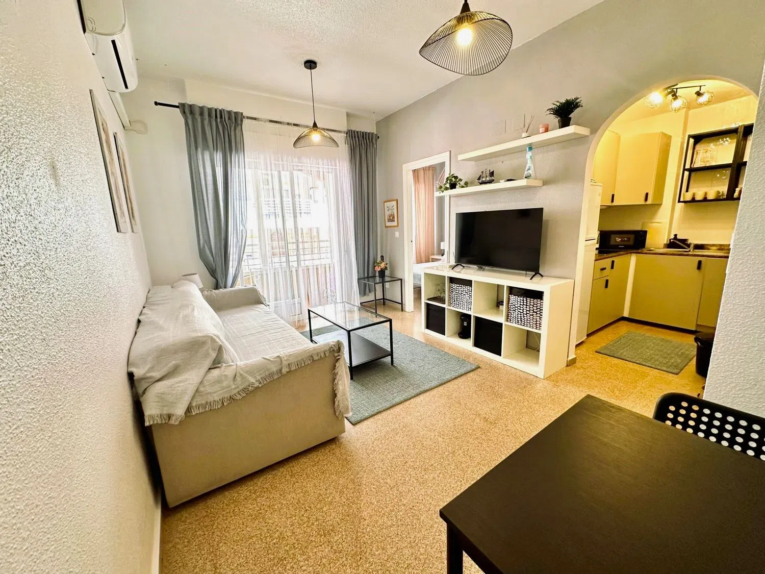 Просторная гостиная, стильно обставленная, открывается на светлую террасу, ориентированную на восток, идеально подходящую для ваших моментов отдыха. Отдельная кухня полностью оборудована и готова к приготовлению ваших лучших блюд. Спальня просторная и оснащена встроенными шкафами, что обеспечивает достаточное пространство для хранения.