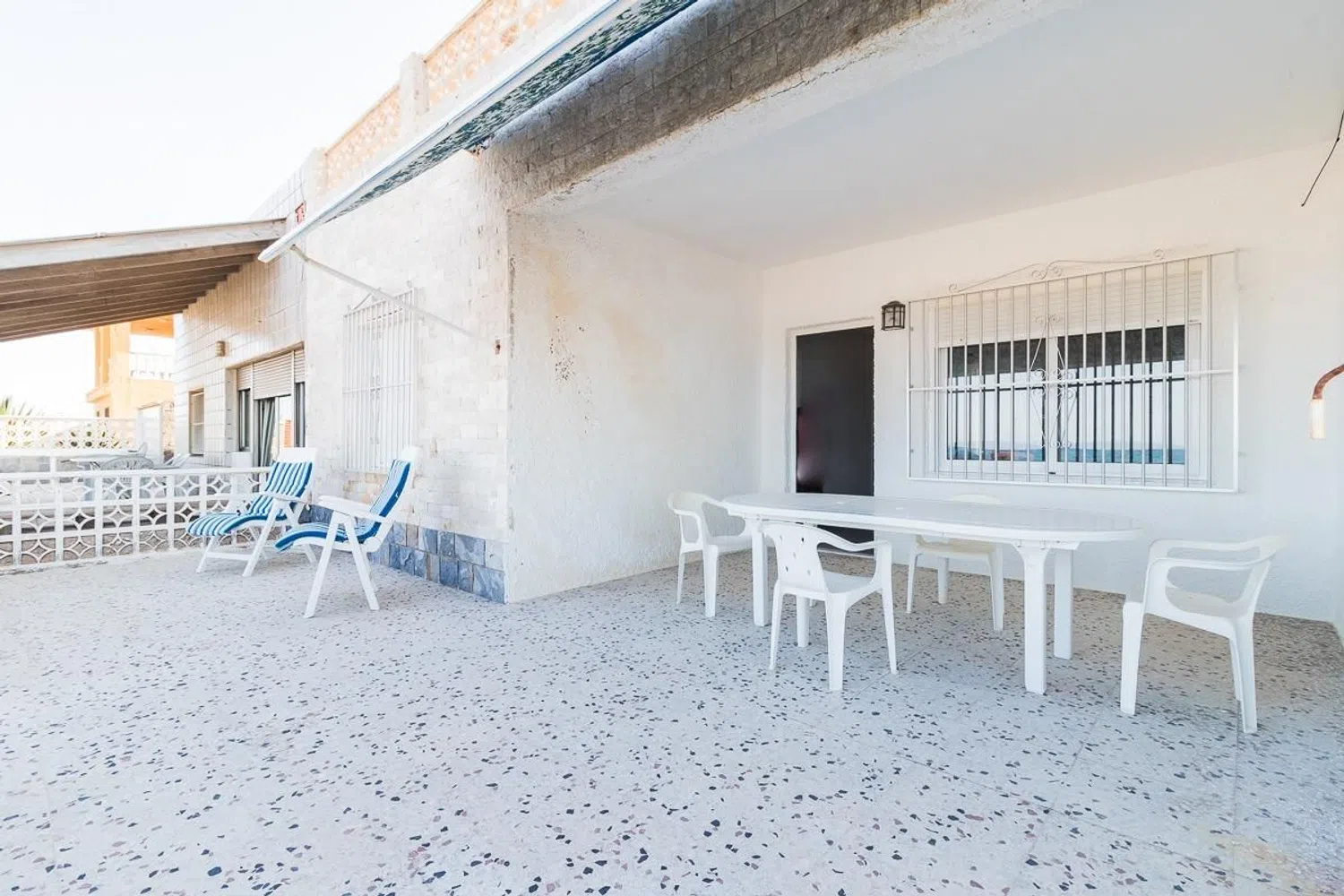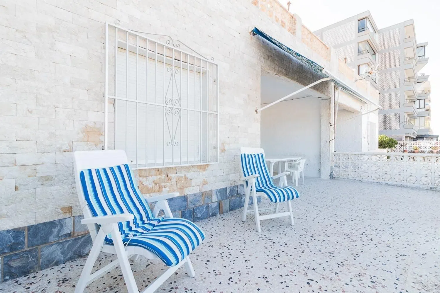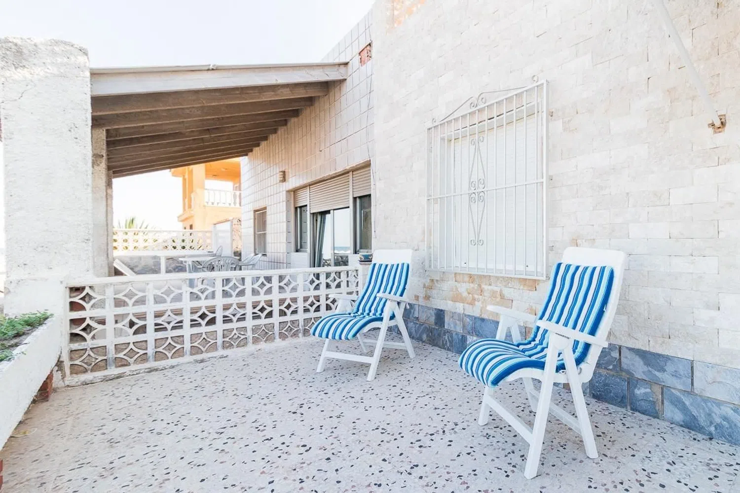 Квартира включает в себя четыре спальни, ванную комнату, автономную кухню с внутренней галереей и просторную гостиную, из которой есть выход на широкую террасу с видом на пляж. Также имеется ухоженный задний двор, вмещающий до двух автомобилей. Все это удобно расположено на одной этаже общей площадью 110 м².