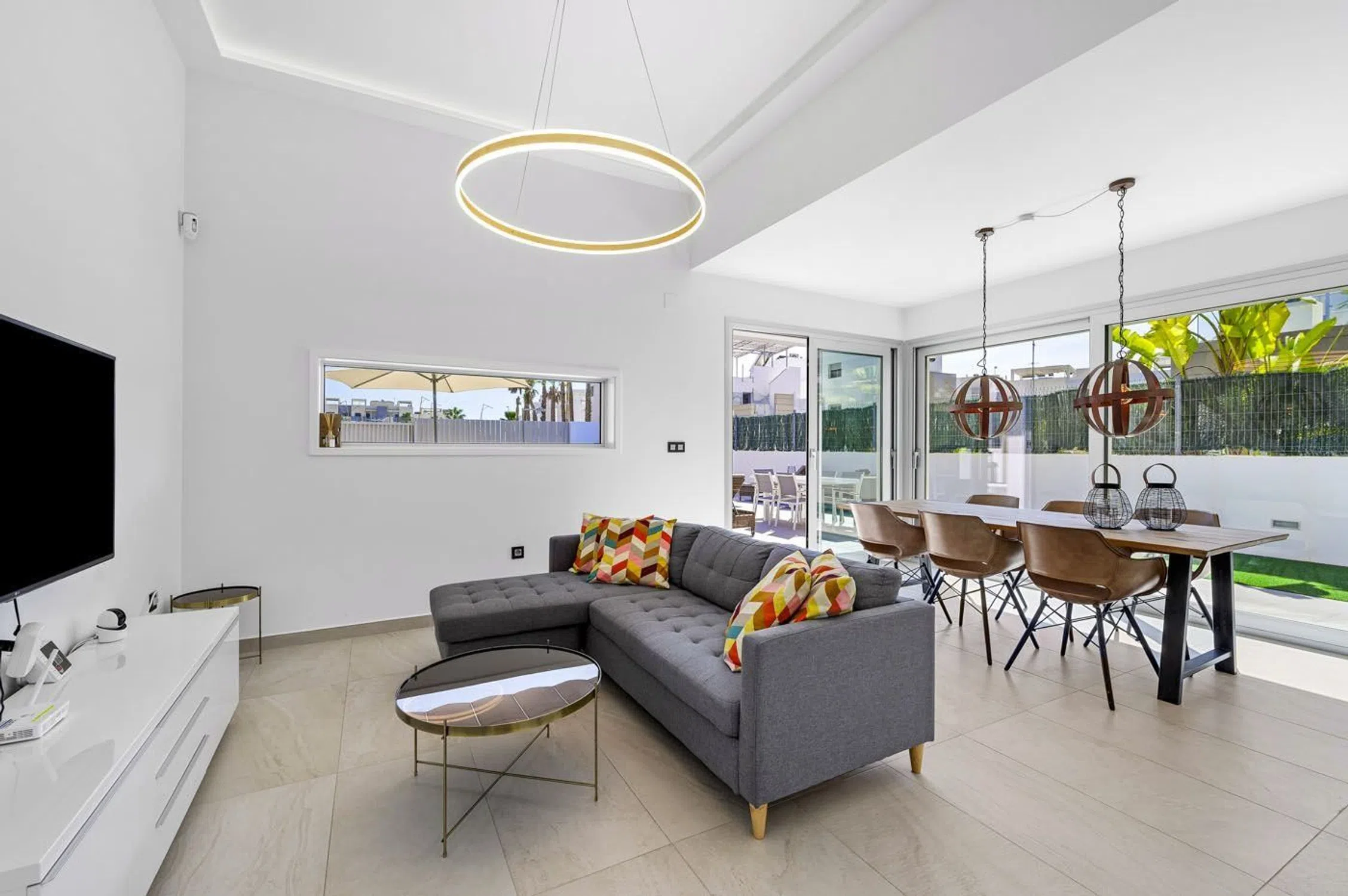 Estamos encantados de presentar esta moderna villa en El Raso, construida en 2019, que ofrece una casa elegante y fantásticas áreas al aire libre que le harán añorar los días soleados y las noches estrelladas. La villa cuenta con un amplio jardín privado con su propia piscina climatizada, perfecta tanto para relajarse como para divertirse bajo el sol. Con mucho espacio para tomar el sol y una cómoda pérgola para cuando necesite un poco de sombra. Su automóvil se puede estacionar de manera segura en la propiedad y el área cerrada garantiza una privacidad total. Diseño interior luminoso y moderno En el interior, encontrará una sala de estar abierta y luminosa con un diseño moderno y grandes ventanales que invitan a la luz natural y crean una conexión perfecta con el jardín. La cocina está bien equipada e incluye una práctica isla de cocina, que funciona como el lugar de reunión perfecto cuando la familia y los amigos están de visita. La cocina y el comedor se combinan en un espacio grande y acogedor. En la planta baja, también hay un amplio dormitorio con baño privado. Aquí tendrá dos lavabos y una amplia cabina de ducha. Además, hay un aseo de invitados, lo que hace que la vida cotidiana sea un poco más fácil. Amplio primer piso con terrazas y azotea La elegante escalera te lleva al primer piso, donde encontrarás dos amplios dormitorios adicionales, ambos con armarios empotrados y mucha luz natural. Hay otro baño con dos lavabos y cabina de ducha, perfecto para las necesidades de la familia. Desde el primer piso, tienes acceso a dos fantásticas terrazas, y una escalera conduce más arriba a la impresionante terraza de la azotea de la villa. Aquí, puedes disfrutar de vistas panorámicas ininterrumpidas, crear pequeños oasis al aire libre o incluso montar una cocina al aire libre: las posibilidades son infinitas. Este es un lugar ideal para vacaciones familiares, donde puedes estar juntos pero también encontrar la paz para disfrutar de los espacios privados. Comodidad y conveniencia modernas La villa está equipada con calefacción por suelo radiante en los baños, así como aire acondicionado a través de un sistema central, que puede enfriar y calentar la casa, lo que garantiza la comodidad durante todo el año. Las ventanas de los dormitorios tienen persianas eléctricas, lo que facilita oscurecer las habitaciones según sea necesario. La casa se vende casi completamente amueblada, ¡lista para convertirse en su nuevo hogar! Fantástica ubicación en El Raso El Raso es una zona tranquila con muchos desarrollos modernos nuevos, así como casas antiguas de estilo tradicional español. Está a solo 37 km del aeropuerto de Alicante, lo que facilita el viaje hacia y desde la zona. El mercado de limoneros de los domingos está cerca y puede disfrutar de un corto paseo hasta allí sin tener que preocuparse por el estacionamiento. Además, está a solo 1 km de restaurantes, un bazar y una farmacia, y a solo 5 minutos en coche del supermercado Consum. Si desea disfrutar de la hermosa playa de Guardamar del Segura, puede llegar allí en menos de 10 minutos en coche. ¡Esta playa es simplemente perfecta! Reserve una visita a esta maravillosa casa y conozca la casa de vacaciones de sus sueños. Parcela 300 m2 Construcción planta baja 64 m2 Construcción 1ª planta 40 m2 Terraza 1ª planta 29 m2 Azotea 43 m2 Total construido 176 m2.