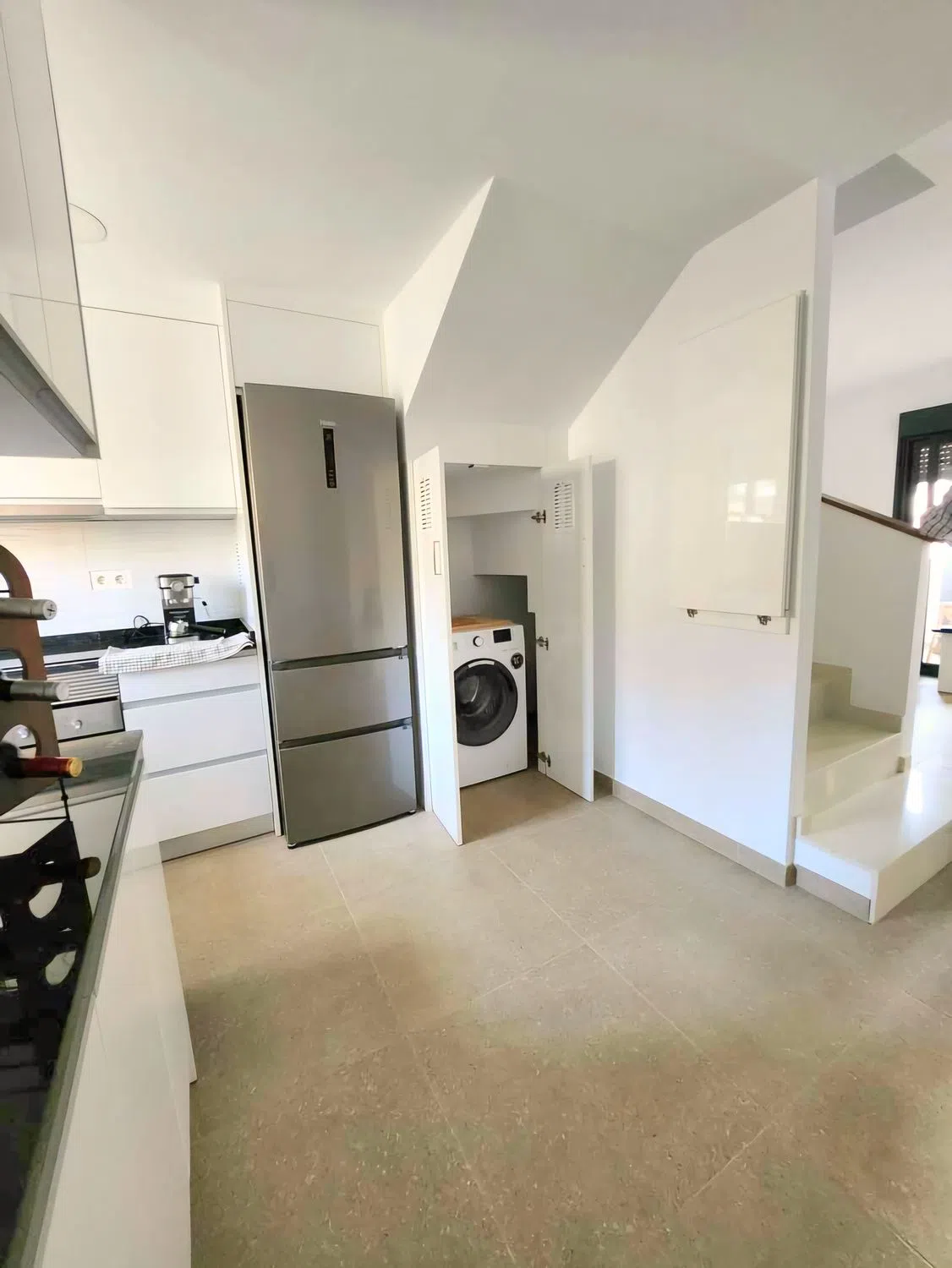 Nj inmobiliaria guardamar se complace en presentarles este magnífico duplex seminuevo, de auténtico lujo, situado a 900 metros de la playa de guardamar, y muy cerca de todos los servicios esenciales, como tiendas, bancos, supermercados, farmacia, centro de salud, etc. Este duplex completamente exterior, soleado todo el año y muy luminoso, está orientado al este y al oeste ( levante y poniente ), disponiendo de este modo de la mejor orientación posible, disfrutando de sol todo el año a todas las horas del día. La vivienda es de 2021, y está nueva a estrenar, fué construida y decorada de capricho, con los mejores materiales acabados, y completamente domotizada y automatizada, incluyendo placas solares, obteniendo una gran eficacia energética, al mismo tiempo que disfrutamos de su confort y su lujo. Vivienda estructurada en 2 plantas: en planta principal dispone de 1 baño, 1 amplia y preciosa terraza exterior orientada al este ( levante ), con mucho sol, y hermosas vistas despejadas, acristalada por hojas, ofreciendo la posibilidad de tenerla cerrada, o abrirla competamente, 1 amplio salón-comedor, open concept con preciosa cocina integrada, muy bien amueblada, y con electrodomésticos de marcas top, de última generación, con su ventana exterior, y su propio espacio para lavadora guarecido. Video portero, aire acondicionado con bomba de calor con su propio mando regulador de temperatura en cada planta. Cámaras de seguridad y siste de alarma de seguridad, con acceso remoto de última tecnología. En la primera planta dispone de 2 amplios dormitorios exteriores con grandes armarios empotrados + 1 dormitorio que ahora mismo está hecho como gran vestidor, como se aprecia en las fotos. También dispone de baño completo, aire acondicionado cono bomba de calor, en todas las estancias con su propio mando en planta primera. Cámaras de seguridad y sistema de alarma de seguridad, con acceso remoto de ultima tecnología. Finalmente, la planta superior está coronada por un gran solarium exterior, orientado al este y al oeste con cerramientos domotizados y techo retráctil para disfrutar de todo el sol que se desee, y cerrar de forma automática con mando remoto cuando se quiera. En el solarium hay una preciosa cocina completamente amueblada, con lavadero propio, barbacoa nueva a estrenar. Dispone de preciosas vistas al mar y a la montaña. Toda la carpintería esta lacada en blanco, y los materiales y acabados son de lujo, con climalit, y la mejor calidad en toda la casa. Vivienda inteligente, completamente domotizada. Ideal para familias que quieren pasar vacaciones junto a la playa, y que gustan de la calidad y el confort de una vivienda de lujo, y también para vivir todo el año, y disfrutar de nuestro maravillos clima mediterráneo y nuestra gastronomía.