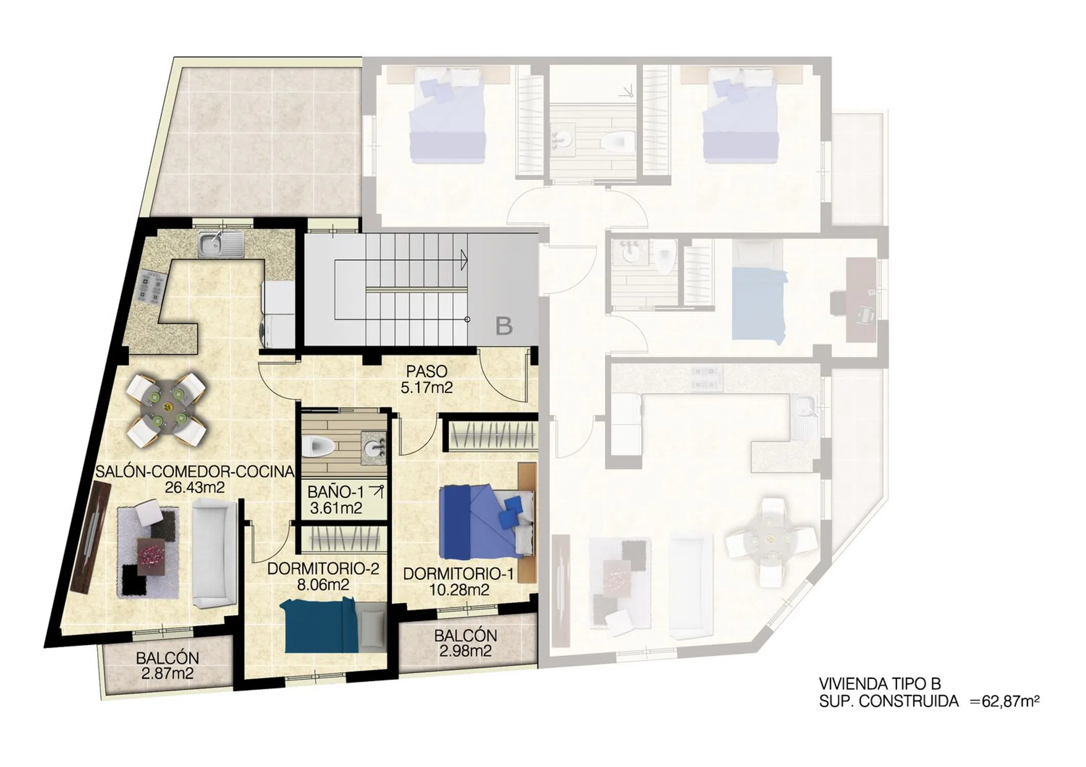 **Anuncio inmobiliario: Moderno apartamento de 2 dormitorios en venta en Jacarilla, España** Descubra este impresionante apartamento de estilo contemporáneo situado a pocos minutos de las hermosas playas de Orihuela y la Costa Blanca. Con una amplia superficie de aproximadamente 63 m², esta vivienda de 2 dormitorios y 1 baño es perfecta tanto para residencia permanente como para inversión. El apartamento cuenta con acabados de alta calidad en todas sus estancias, incluyendo armarios empotrados en el dormitorio principal y una cocina equipada con armarios de formica de alto brillo y una elegante encimera de cuarzo. Adéntrese en un mundo de confort con un excelente aislamiento térmico y acústico, que garantiza un entorno de vida tranquilo. El elegante cuarto de baño está diseñado con modernas instalaciones sanitarias, incluyendo un plato de ducha de resina de perfil bajo y grifería de diseño. Disfrute de la comodidad de la calefacción por suelo radiante en el cuarto de baño y de un sistema de agua caliente alimentado por paneles solares, complementado con un calentador eléctrico de reserva. Otras características adicionales incluyen una puerta de entrada de seguridad con mirilla panorámica, un sistema de videoportero y preinstalación para aire acondicionado por conductos. El apartamento también incluye un balcón y una terraza, perfectos para tomar el sol. Con fácil acceso a tiendas locales, zonas verdes y servicios esenciales, este apartamento está idealmente situado para disfrutar de un estilo de vida dinámico. ¡No se pierda esta excepcional oportunidad de adquirir un moderno apartamento en una ubicación privilegiada! Póngase en contacto con nosotros hoy mismo para concertar una visita.