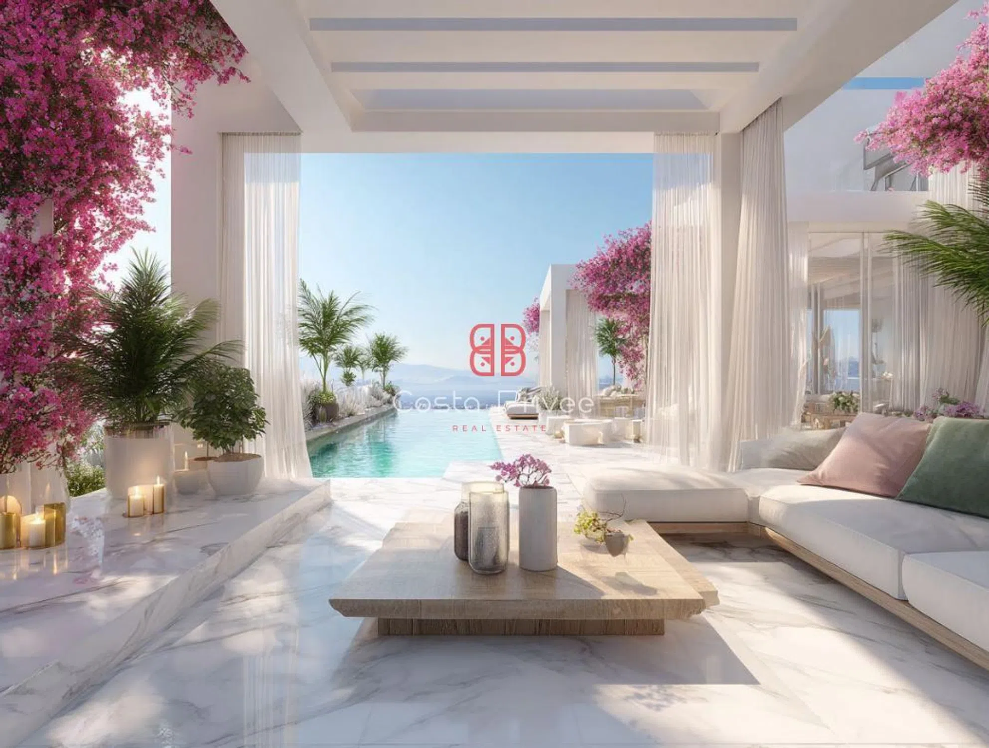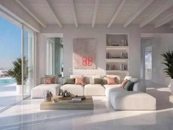 Вилла ACUARELA – стиль Миконоса, роскошь у моря с архитектурными линиями, которые отлично сочетают современный дизайн с средиземноморской душой и привилегированным расположением на побережье. Это шедевр жилого строительства, который переопределяет современную роскошь на Коста-Бланке. Белый фасад с пастельными деталями, окруженный пышной растительностью, пальмами и цветущими бугенвиллиями, вызывает элегантную непринужденность стиля Миконоса с исключительным и нежным характером.