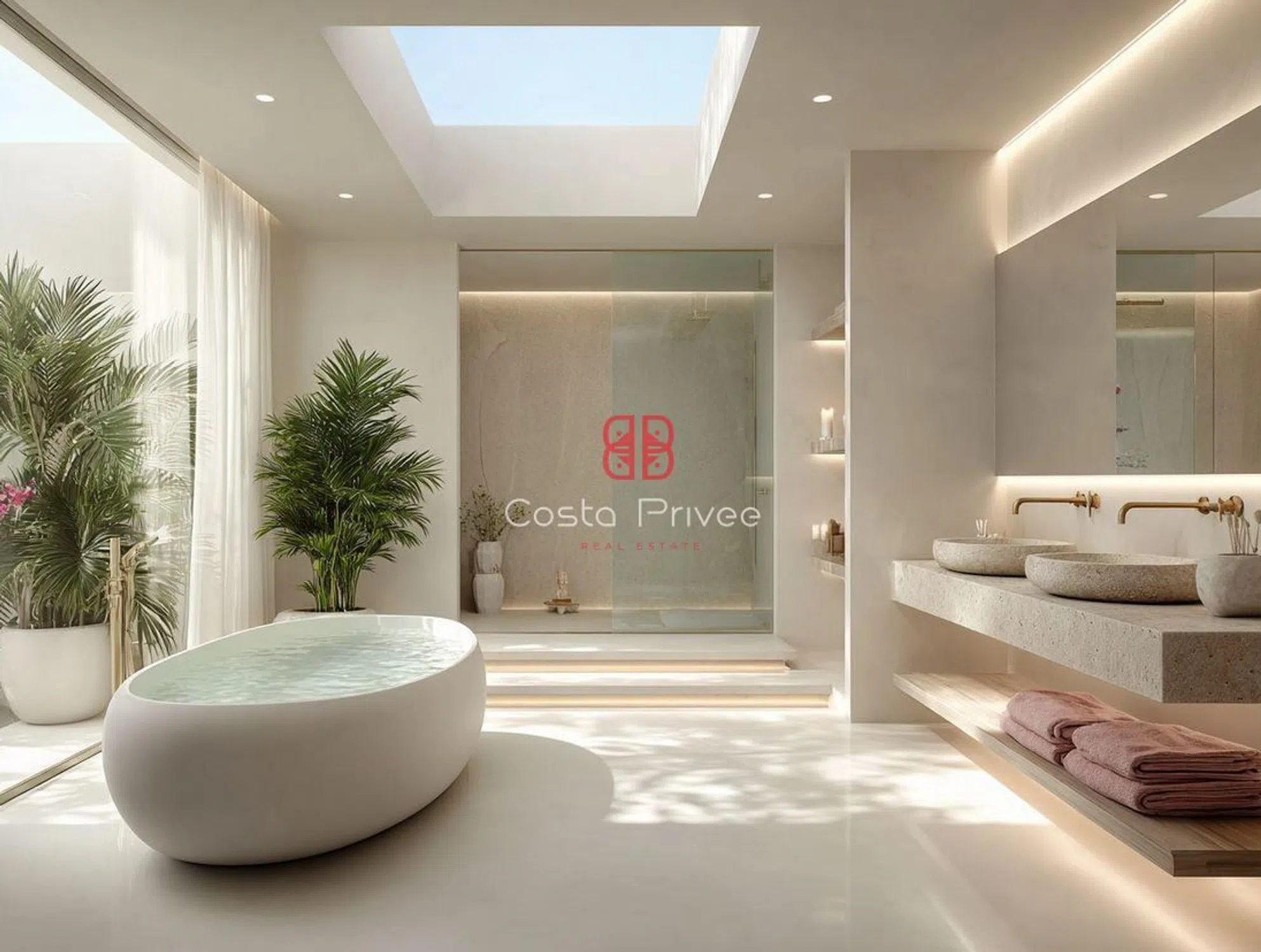 Главная спальня – это частное убежище с видом на море, с мягкими текстурами в пыльных тонах, функциональным и обволакивающим дизайном и прямым выходом на внешнюю террасу. Ванная комната типа спа включает отдельную ванну с верхним освещением, двойную раковину из камня, дождевой душ и внутреннюю растительность, предлагая ежедневное ощущение благополучия. Кроме того, вилла располагает библиотекой/чтением, сочетающей функциональность и тепло, с ретроосвещенными книжными полками, дизайнерскими сидениями и атмосферой для моментов спокойствия, вдохновения или интеллектуальной работы.