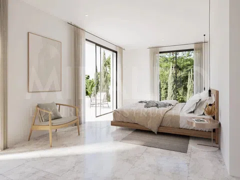 Архитектура здания, вдохновленная ибиценским стилем с современными элементами, выделяется большими окнами, открытыми пространствами и очаровательным крытым крыльцом с деревянными перголами, созданным для того, чтобы полностью наслаждаться уникальным образом жизни, который предлагает данный регион.
